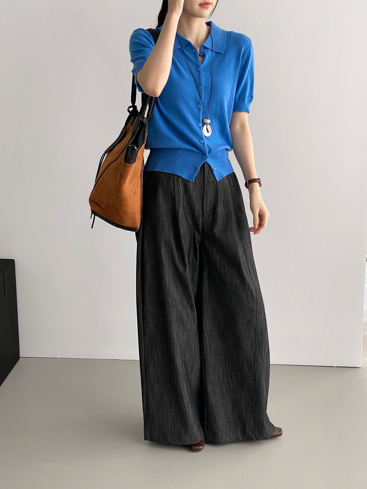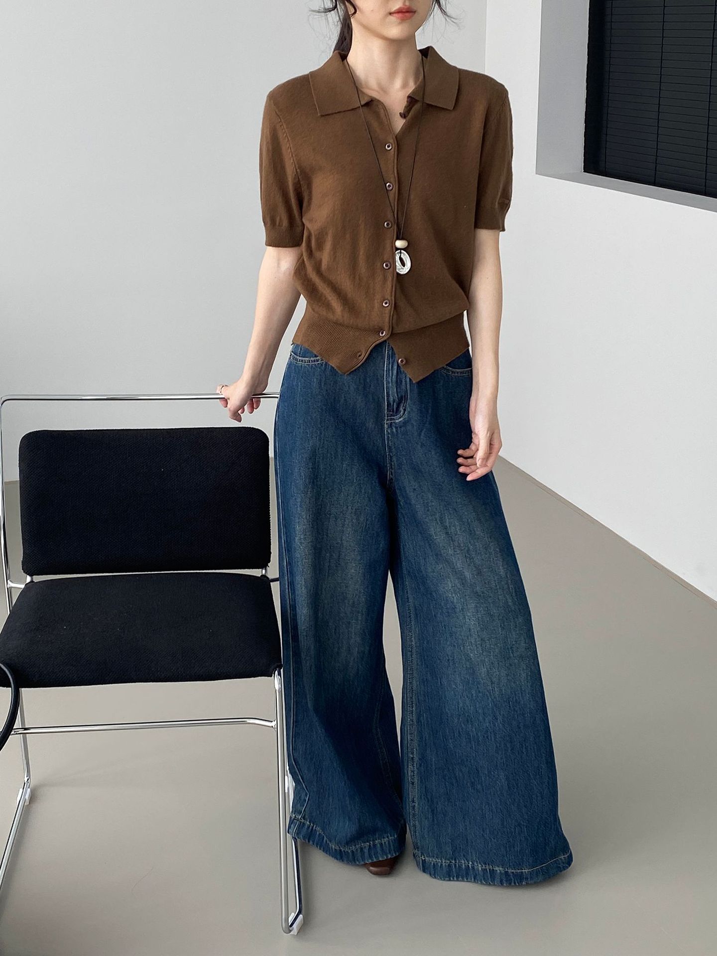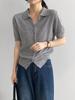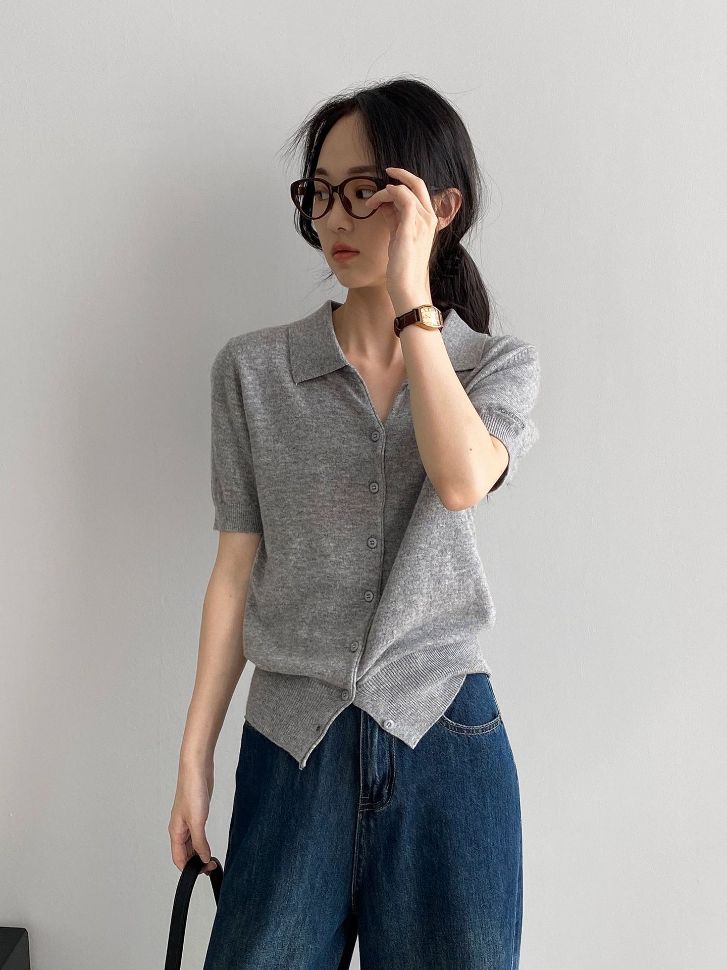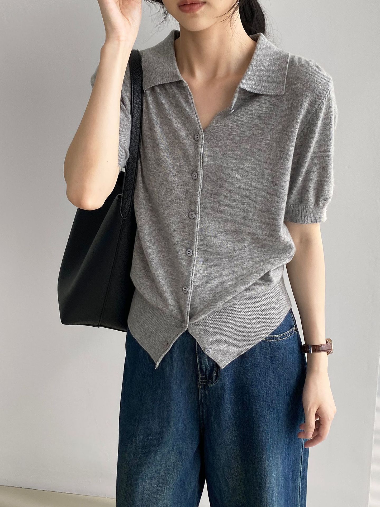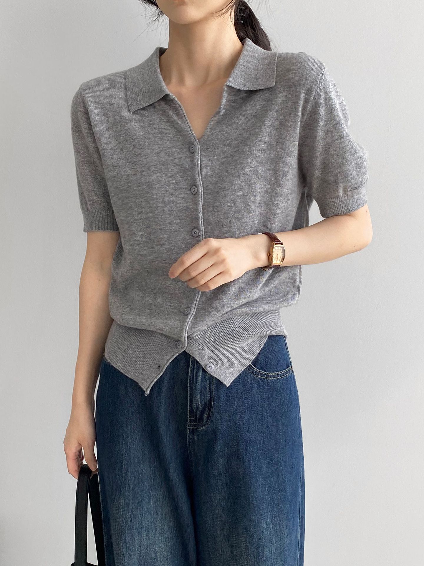 Así que temperamento minimalista coreano miu estilo bordado punto mujer suave adelgazante solapa top versátil Y1227