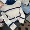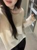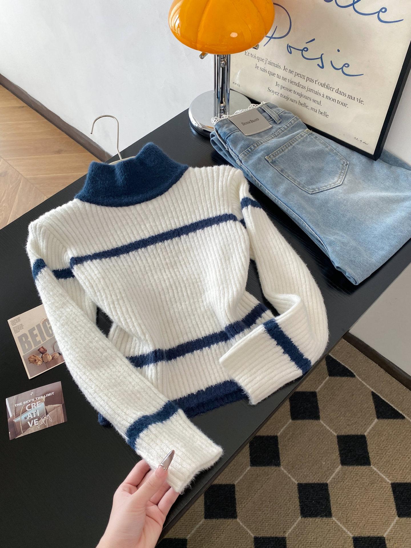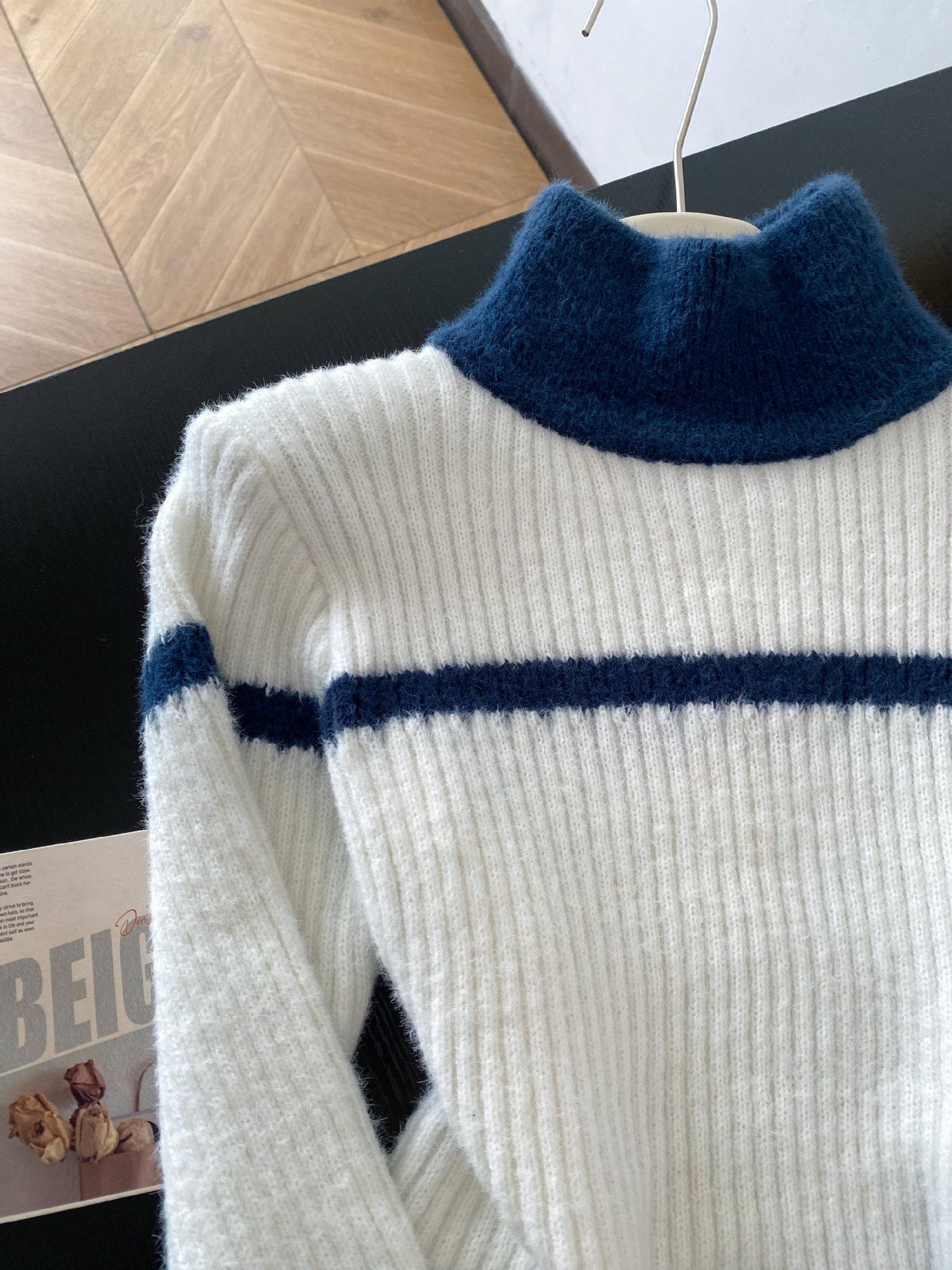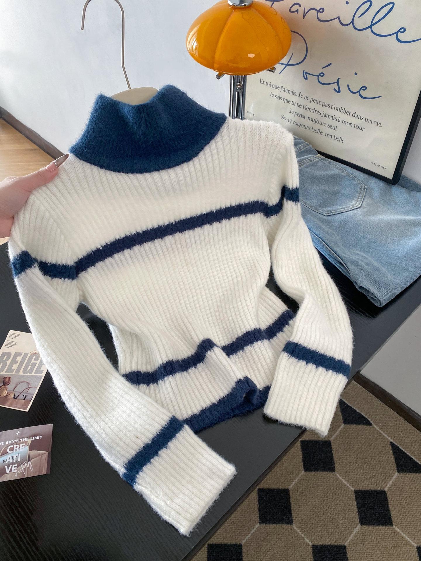 Otoño e invierno estilo perezoso único cuello alto bloque de color suéter suave y glutinoso punto diseño para mujer nicho manga larga top absolutamente hermoso