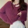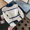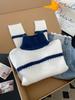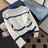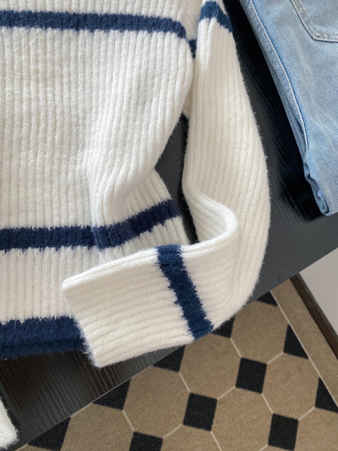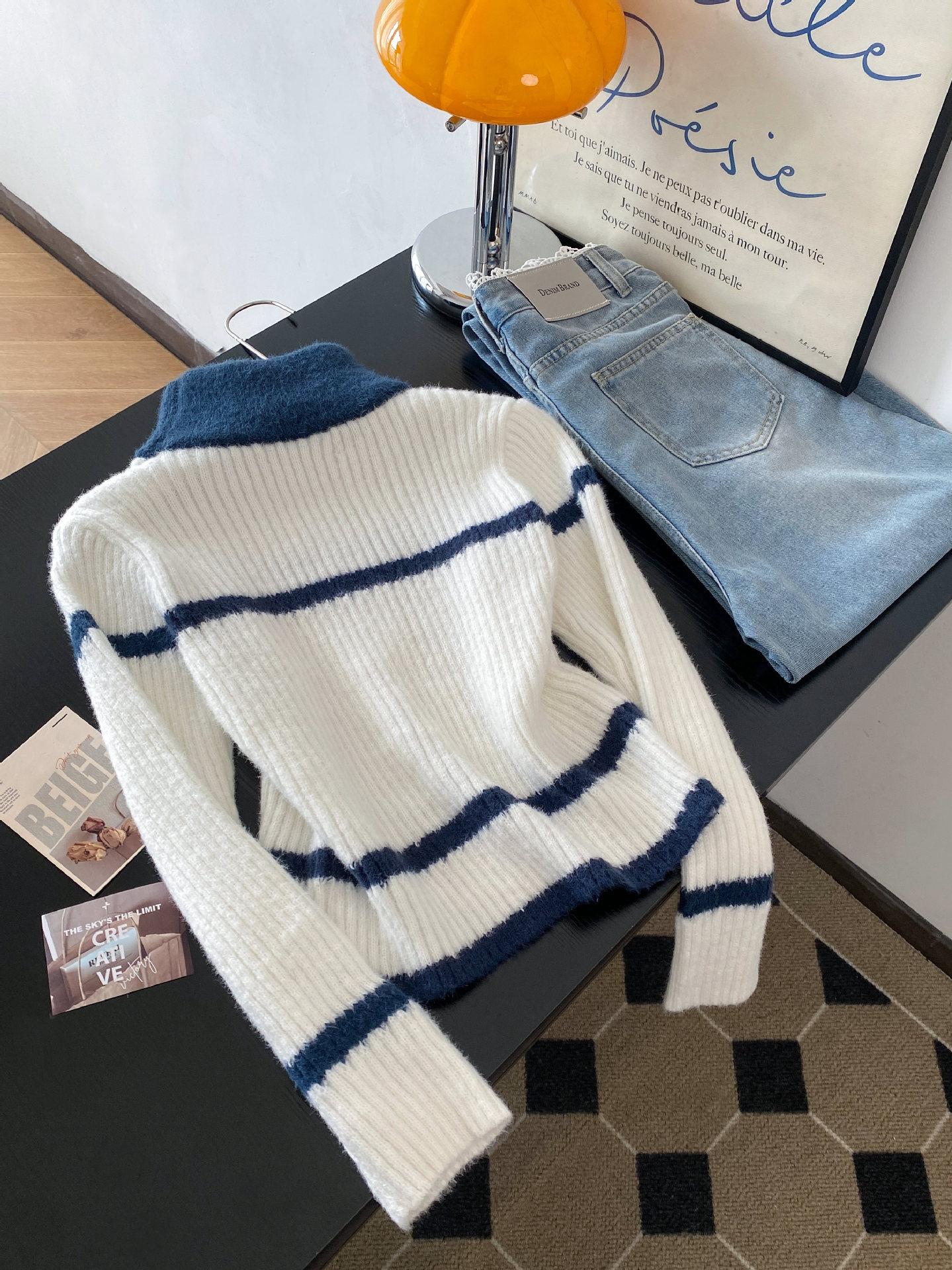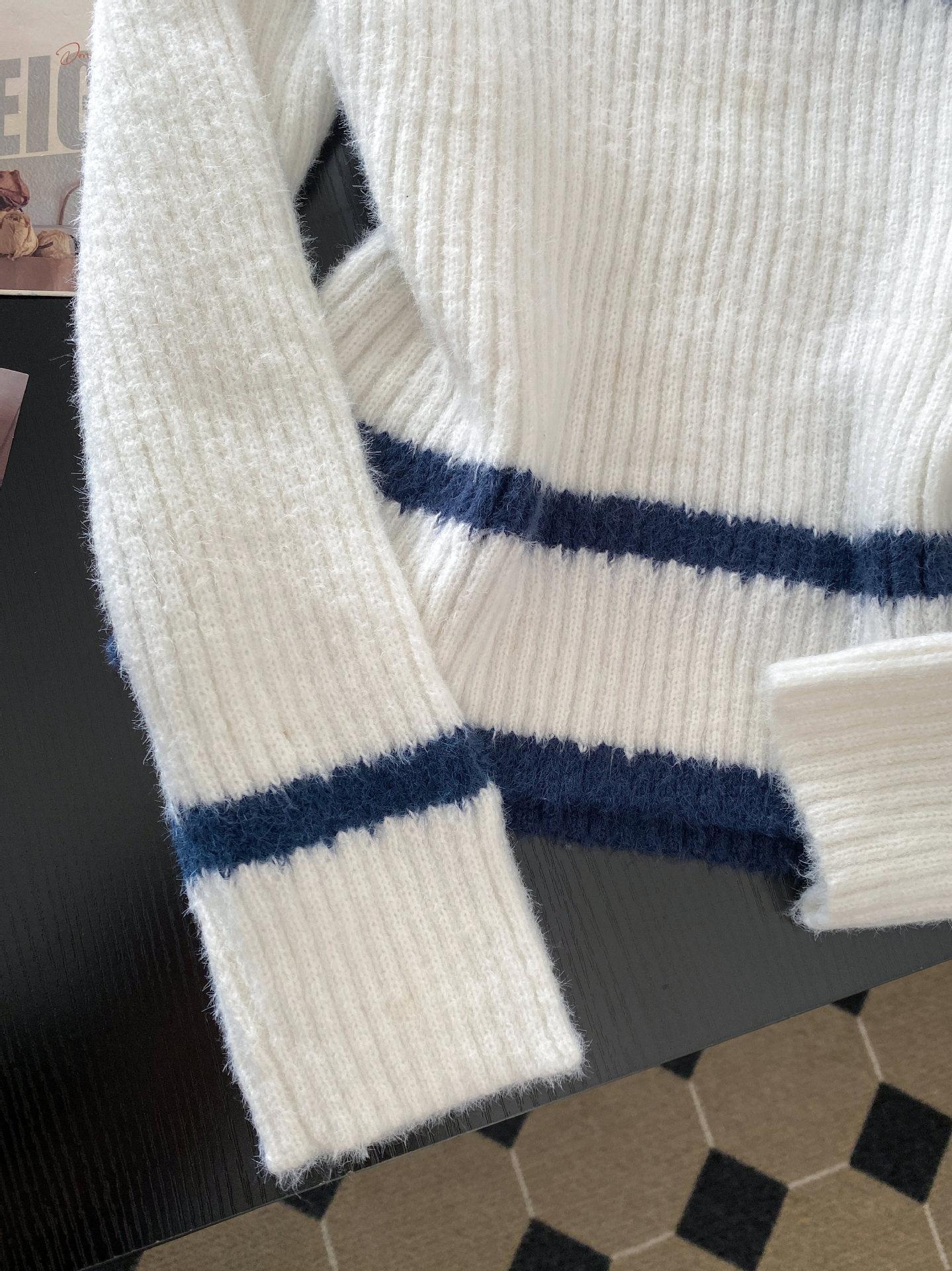 Otoño e invierno estilo perezoso único cuello alto bloque de color suéter suave y glutinoso punto diseño para mujer nicho manga larga top absolutamente hermoso