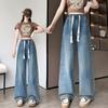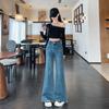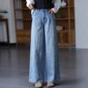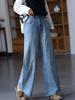 Adelgazante techo 2025 primavera nuevo jeans graffiti rotos chao suave pierna recta hasta el piso adelgazante denim