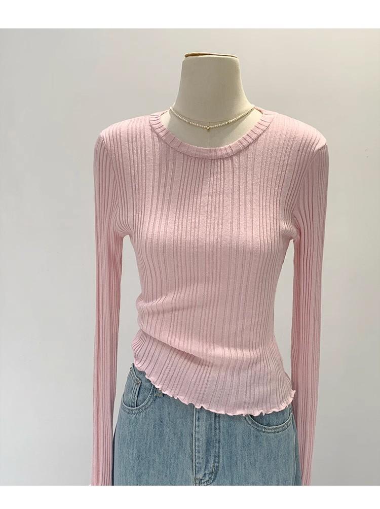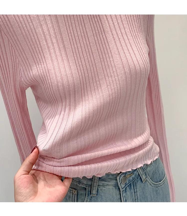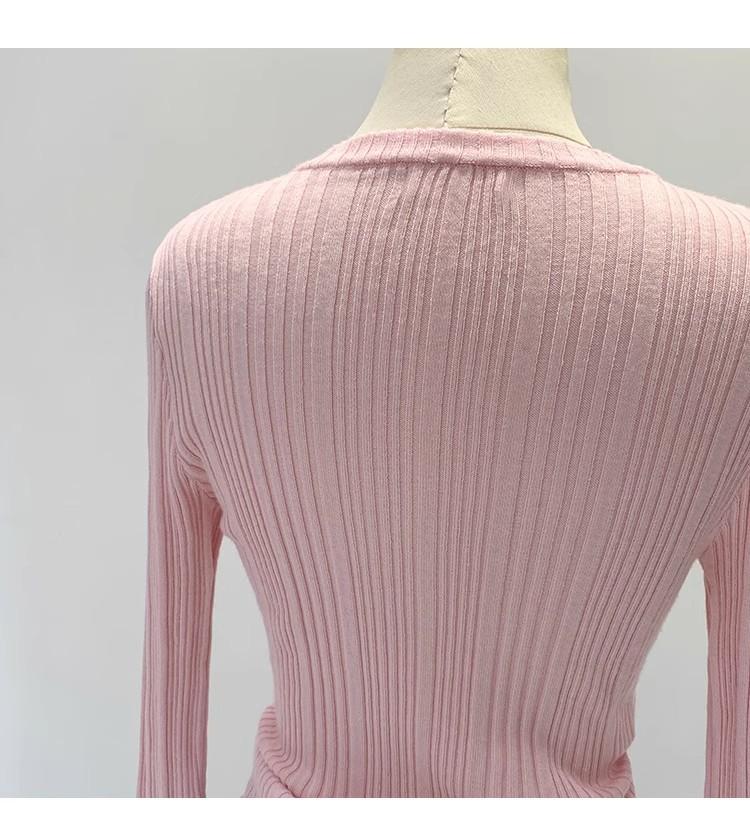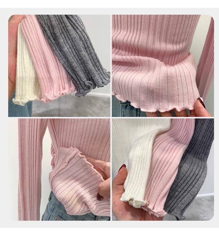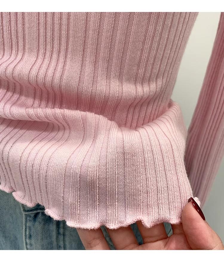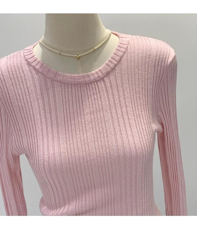 Suéter Base Interior Rosa de Manga Larga Estilo Coreano para Mujer Otoño e Invierno 2025 Nuevo Top Corto Dopamínico Estilo Francés
