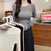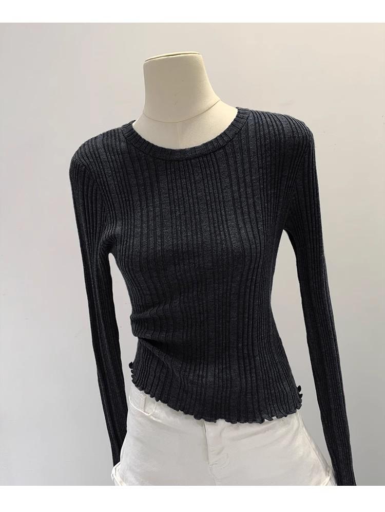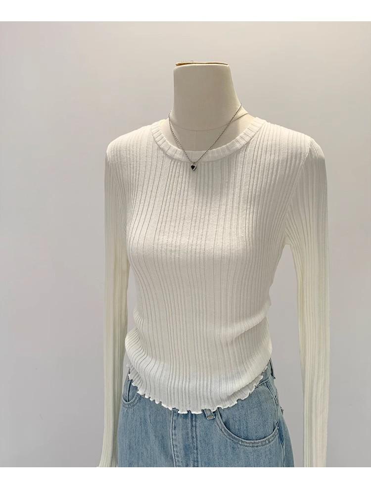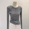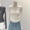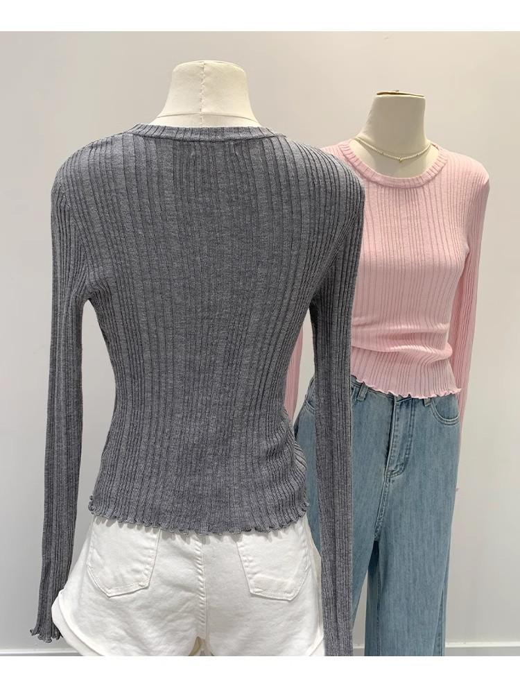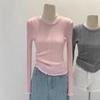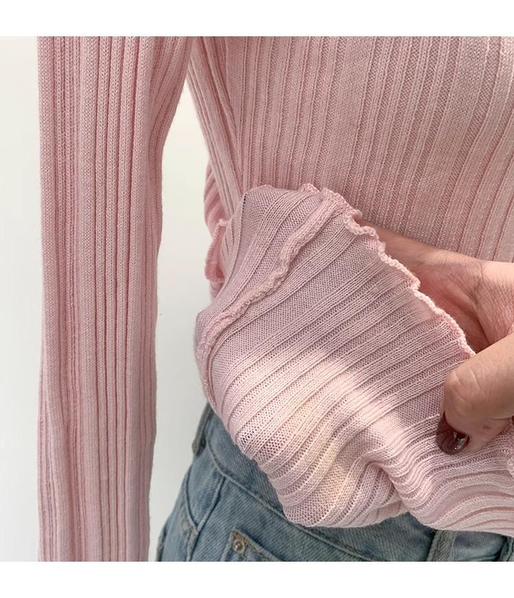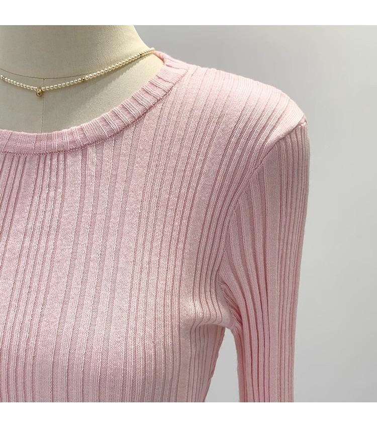 Suéter Base Interior Rosa de Manga Larga Estilo Coreano para Mujer Otoño e Invierno 2025 Nuevo Top Corto Dopamínico Estilo Francés