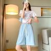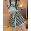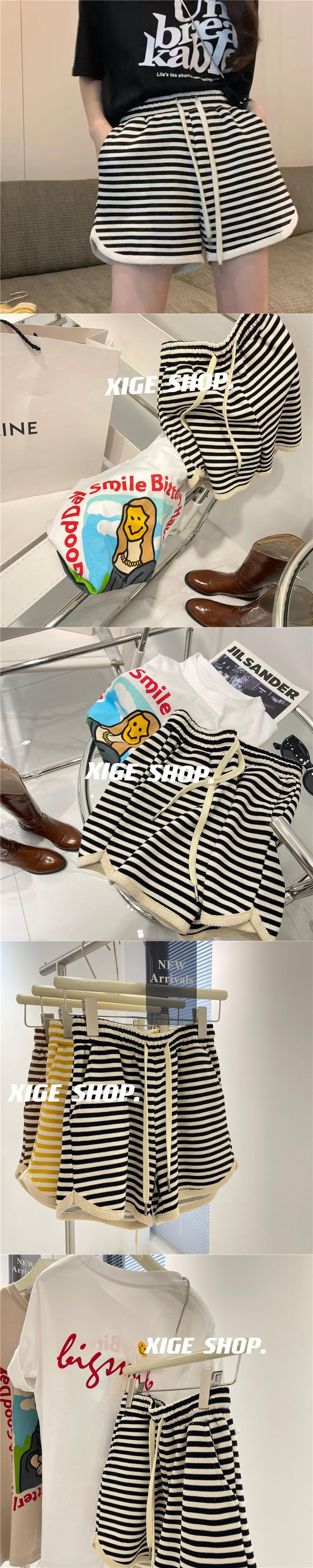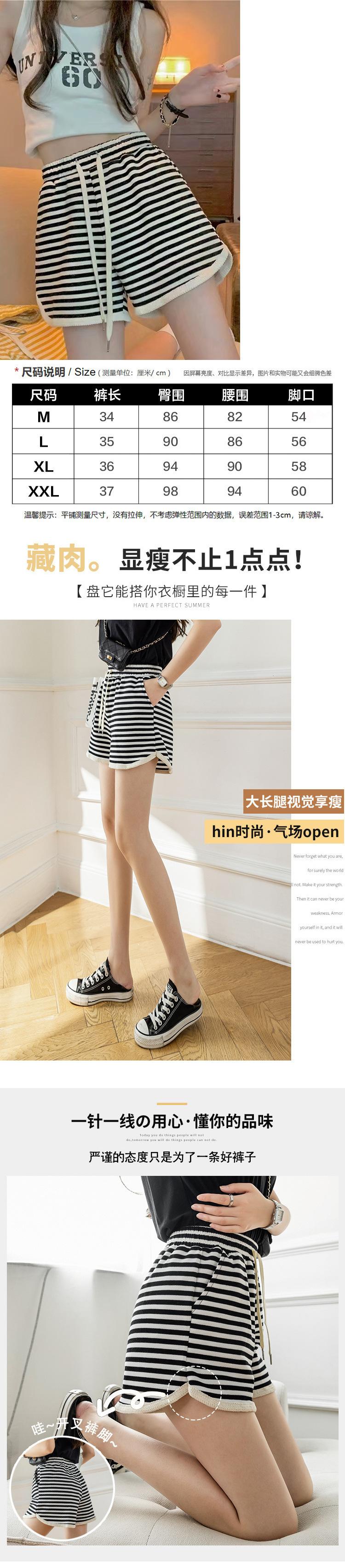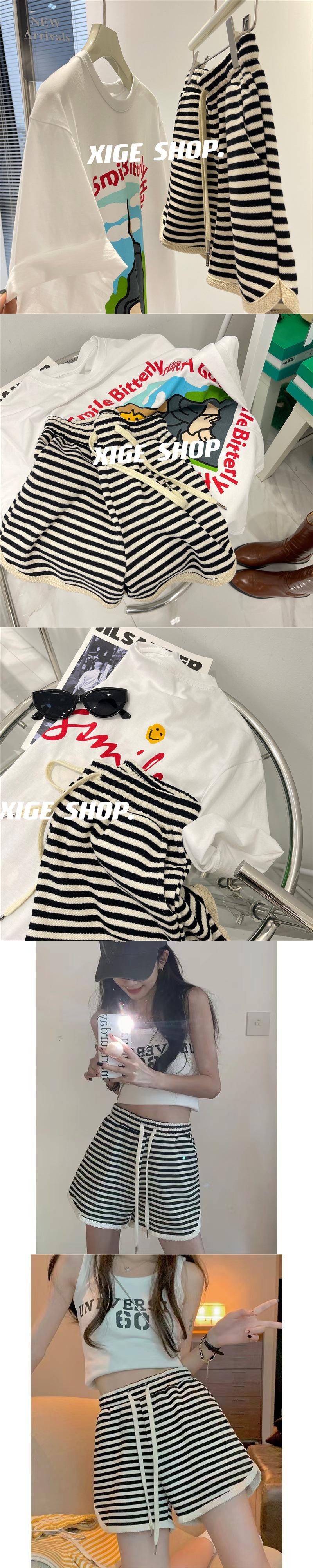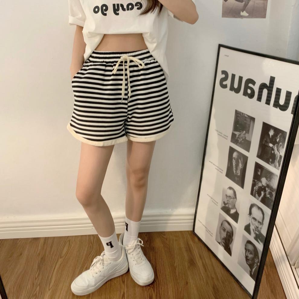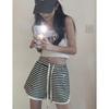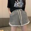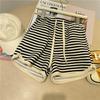 Shorts de Cintura Alta Versátiles para Mujer Verano Rayados Finos Pantalones Casuales Cintura Elástica Pierna Ancha Sueltos Pantalones de Moda