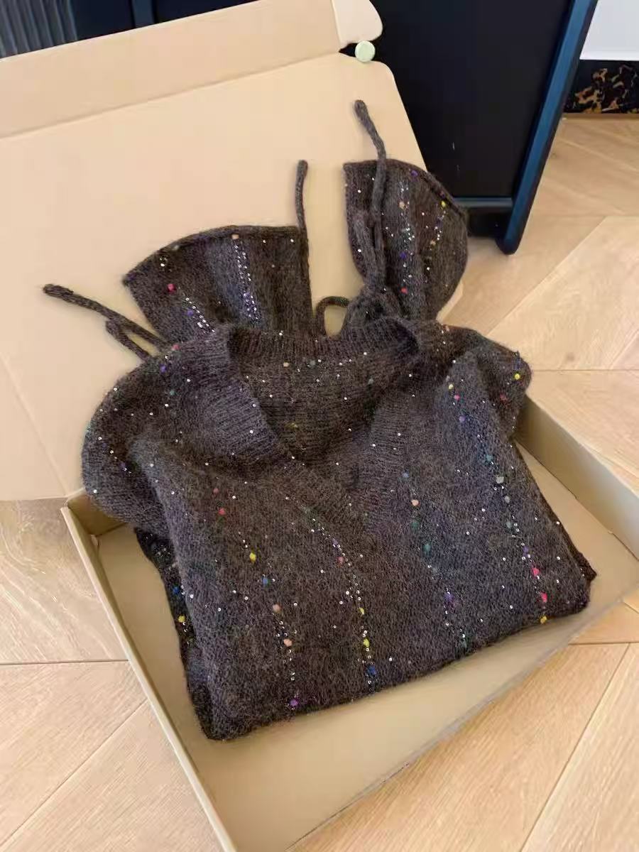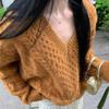Suéter de Punto Grueso con Manga Farol Retro Cuello en V Manga Larga Holgado Exterior para Mujer Sensación Lazy de Alta Gama