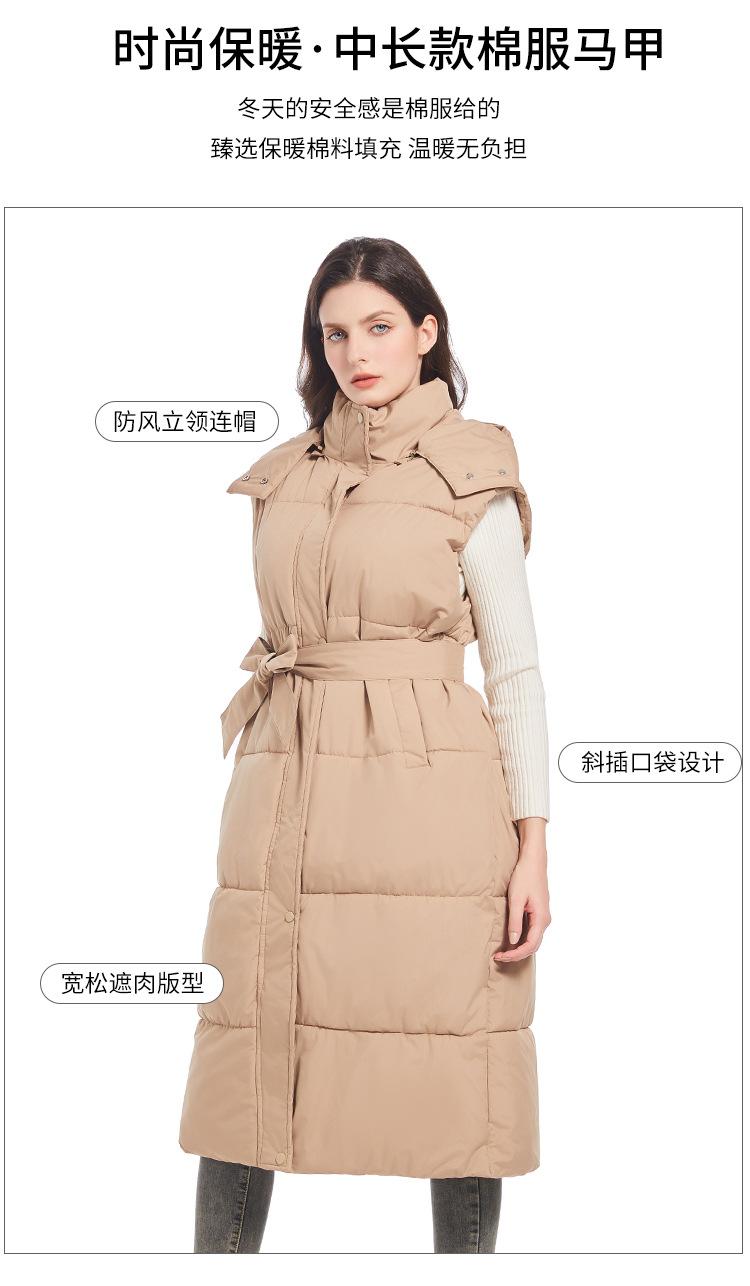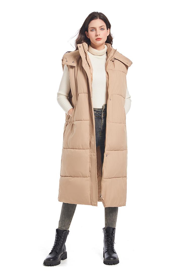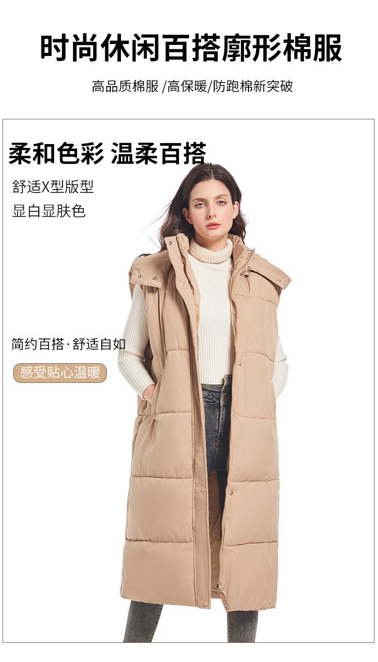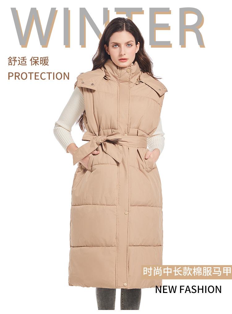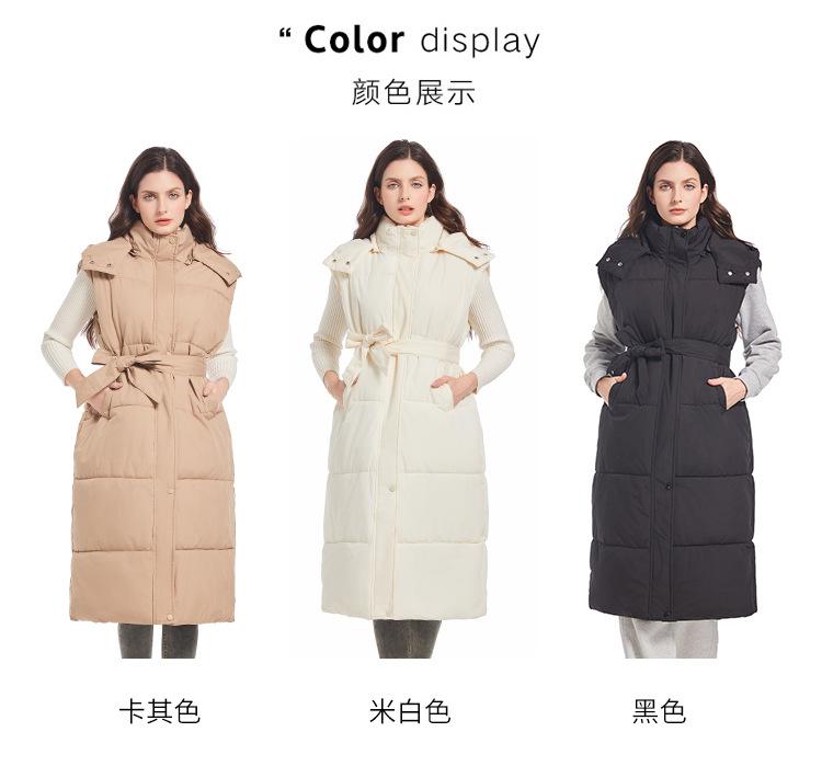 Nuevo chaleco largo europeo y americano transfronterizo para mujer, abrigo de algodón hasta la rodilla, chaleco de otoño e invierno para mujer, chaqueta de algodón casual sin mangas