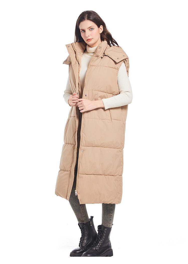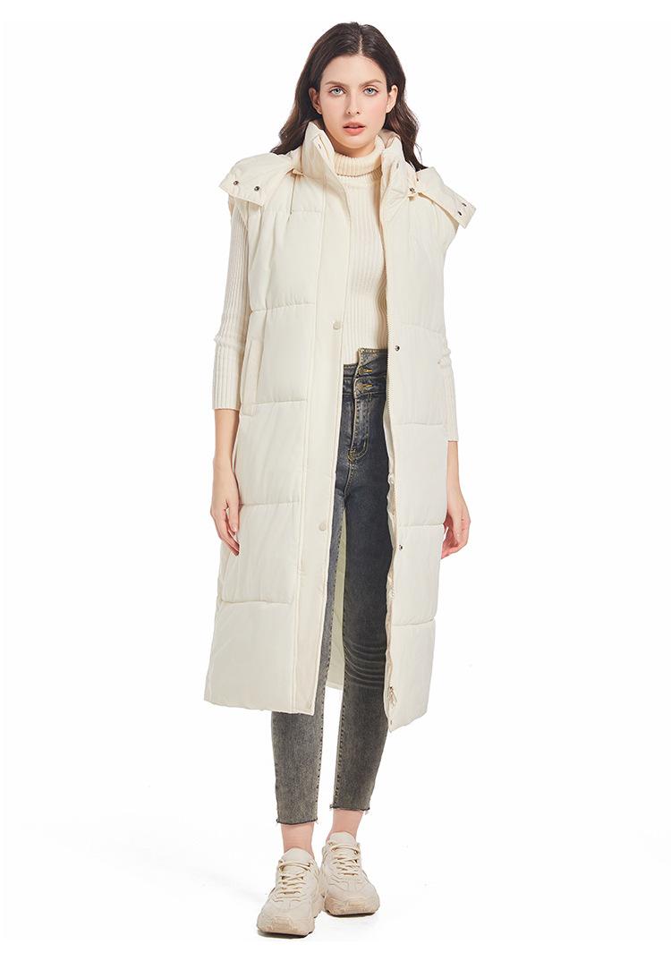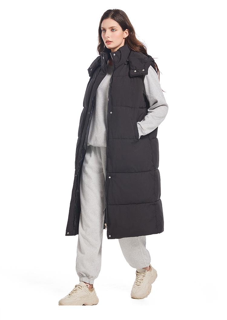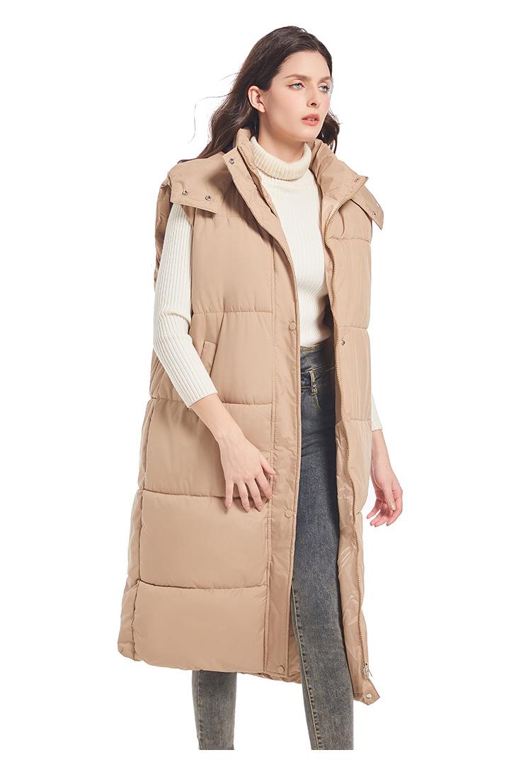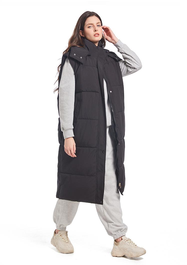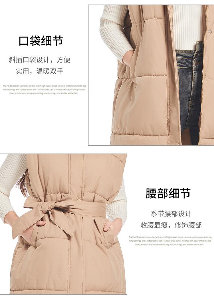 Nuevo chaleco largo europeo y americano transfronterizo para mujer, abrigo de algodón hasta la rodilla, chaleco de otoño e invierno para mujer, chaqueta de algodón casual sin mangas