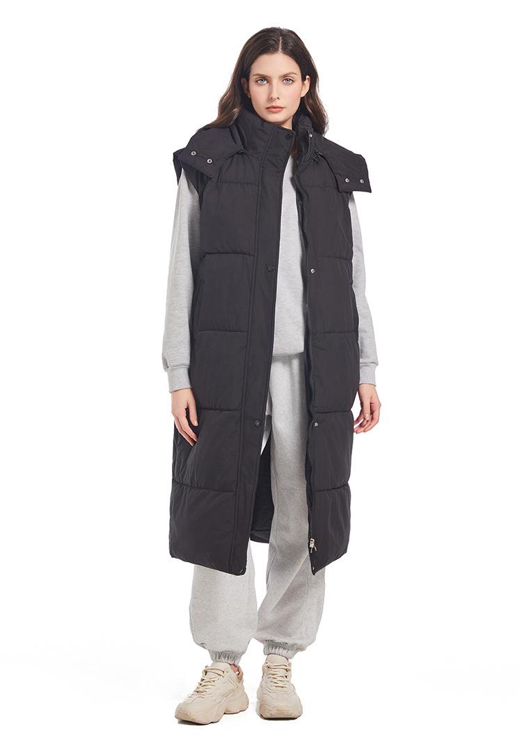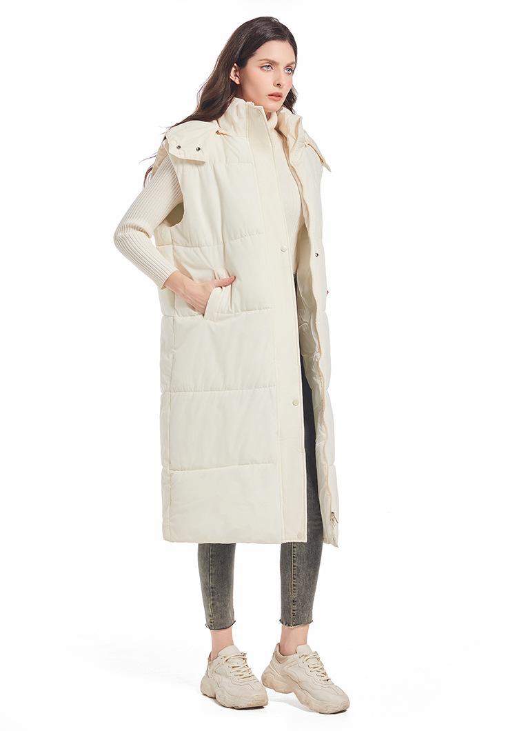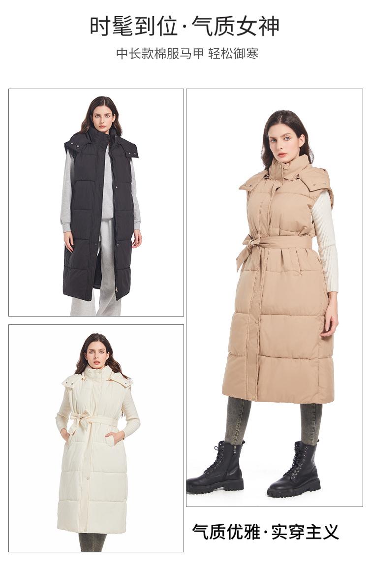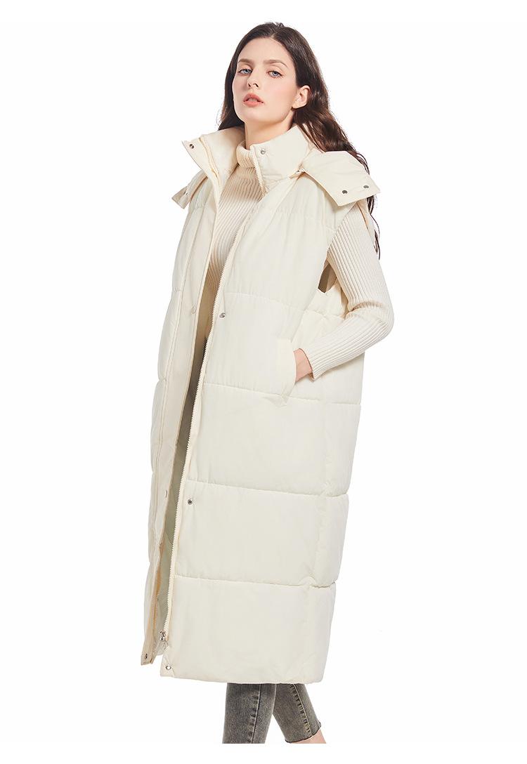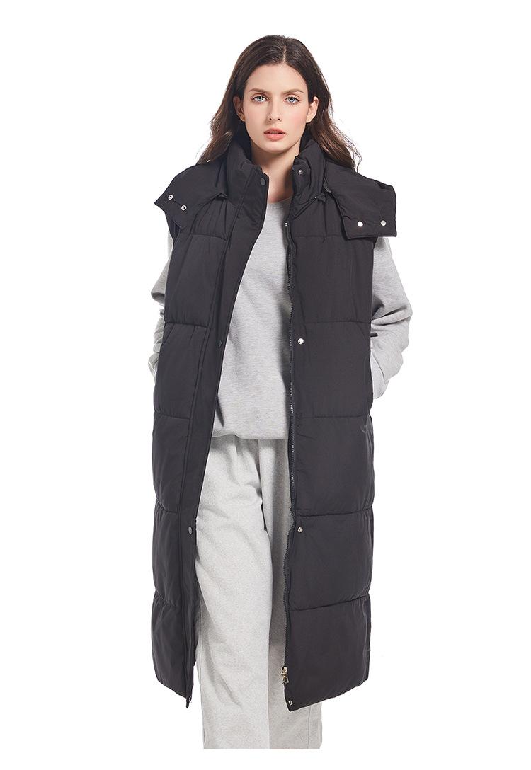Nuevo chaleco largo europeo y americano transfronterizo para mujer, abrigo de algodón hasta la rodilla, chaleco de otoño e invierno para mujer, chaqueta de algodón casual sin mangas