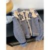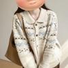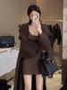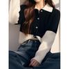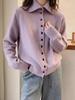 Suéter Largo Retro Francés con Cuello Solapa para Mujer 2025 Otoño/Invierno Nuevo Cárdigan Tejido Estilo Holgado y Relajado Tejido Exterior