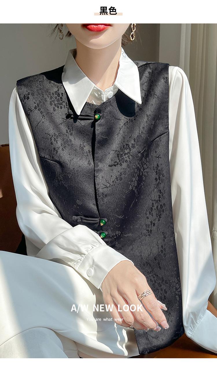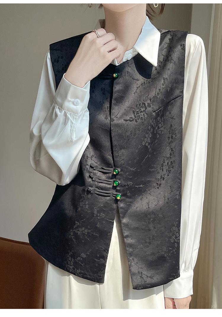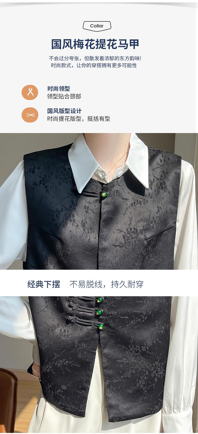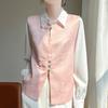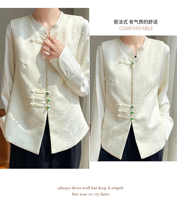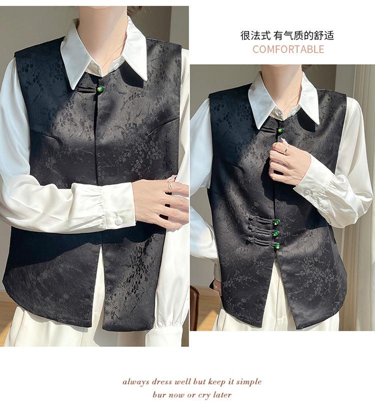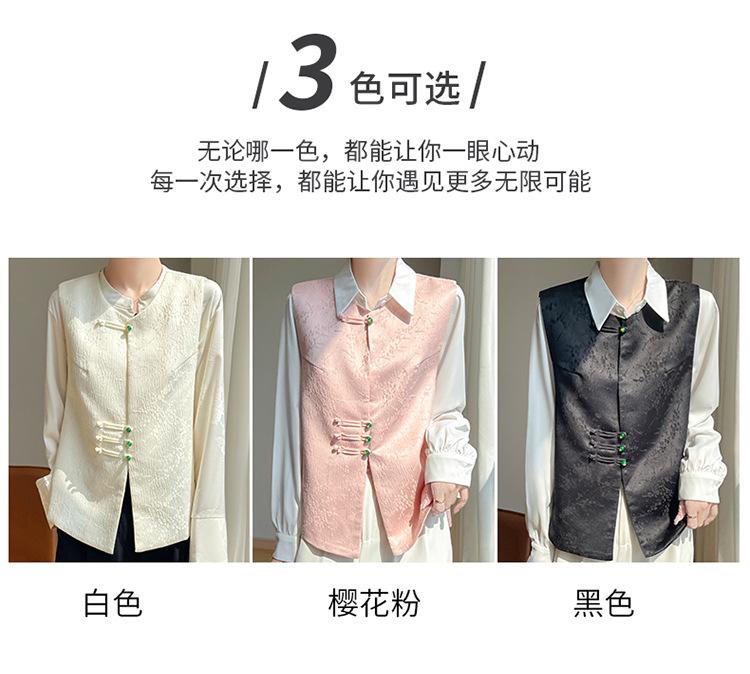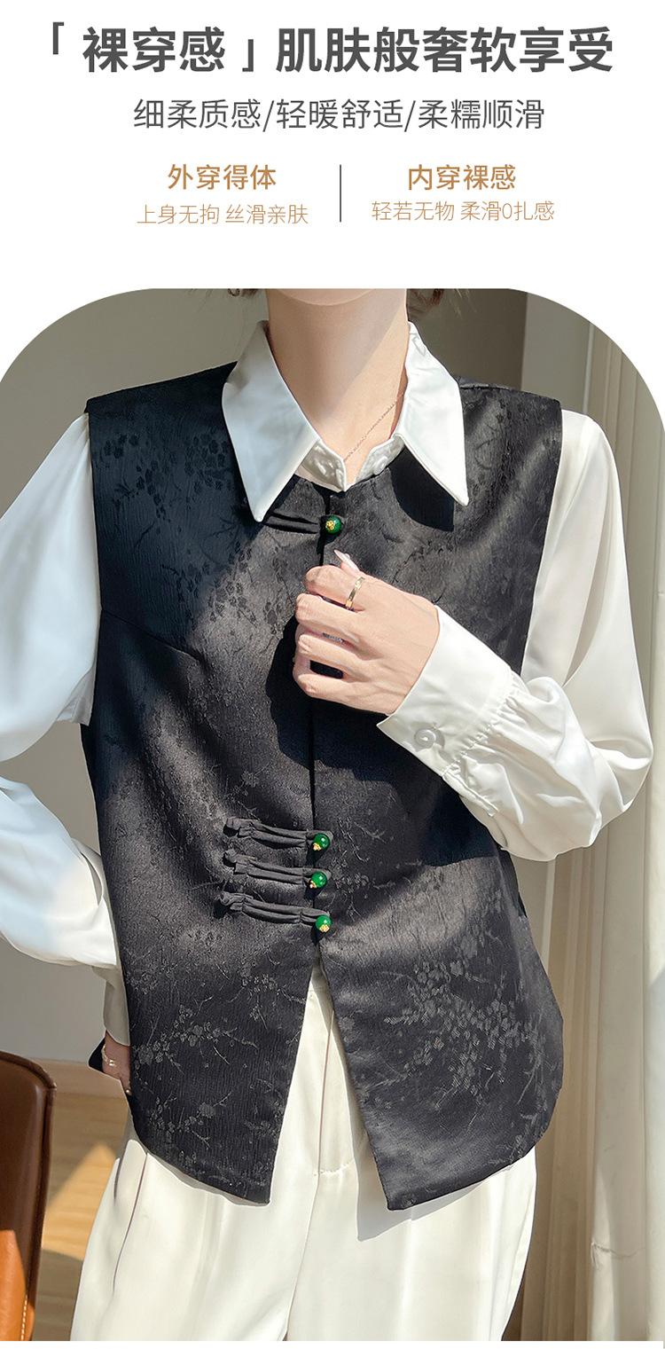 Otoño e Invierno 2024 Nuevo Estilo Chino Satén Sedoso Cuello Redondo Chaleco Cárdigan Hebilla Jacquard Sin Mangas Chaleco Mujeres