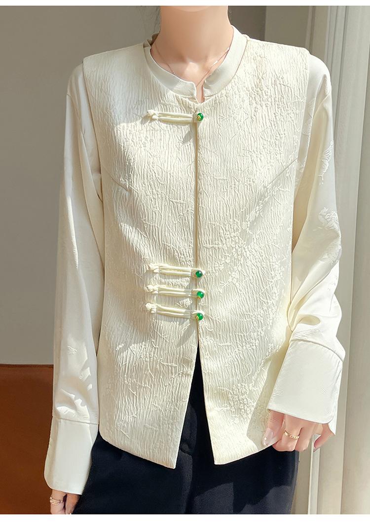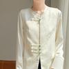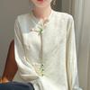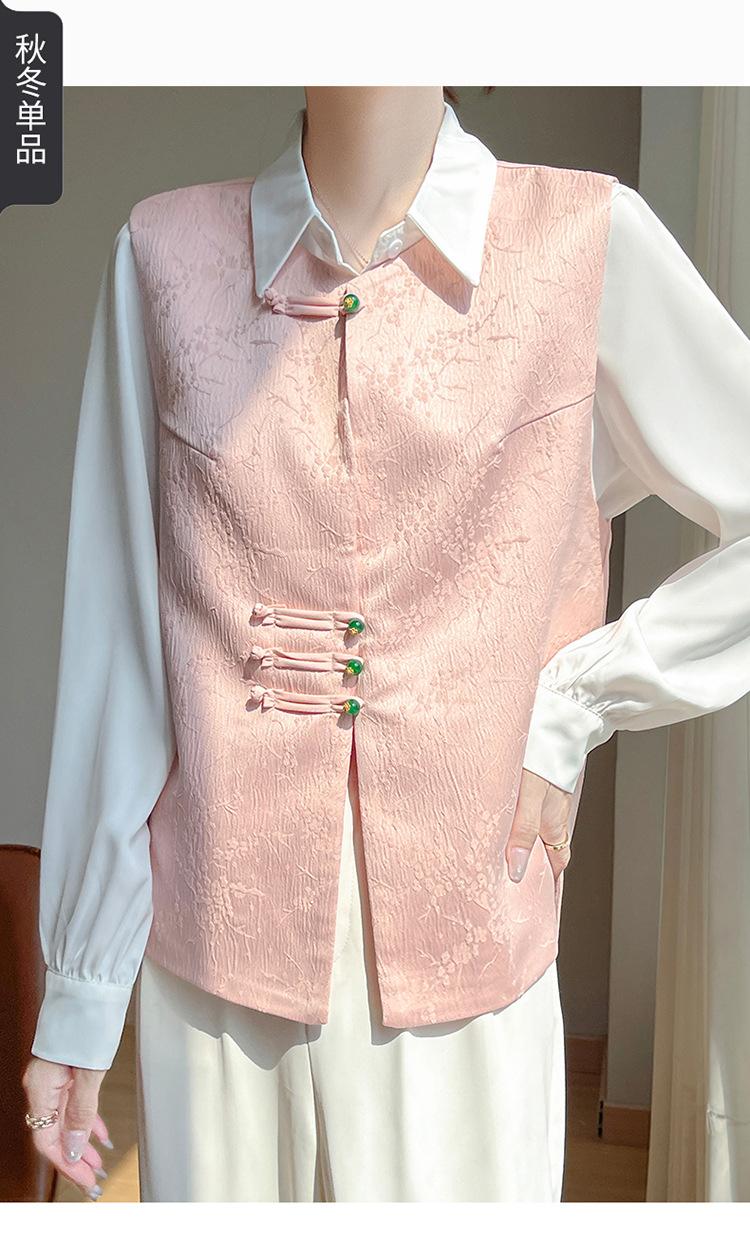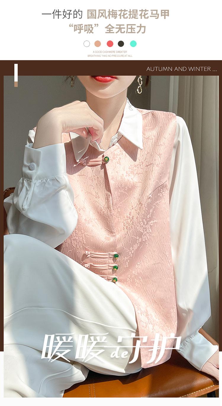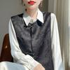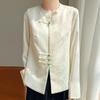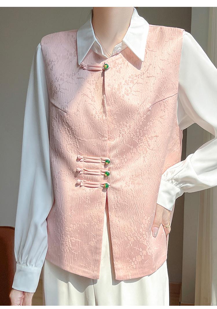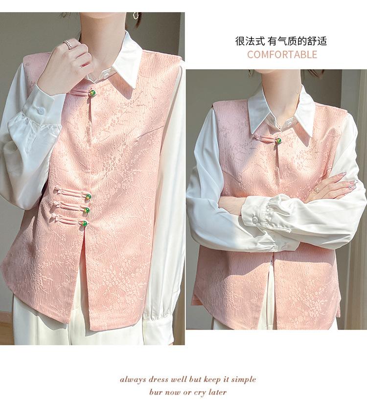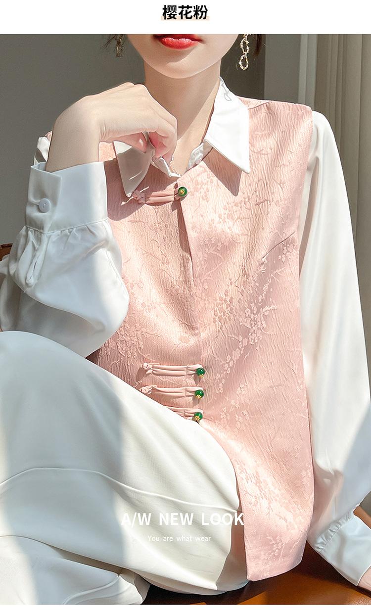 Otoño e Invierno 2024 Nuevo Estilo Chino Satén Sedoso Cuello Redondo Chaleco Cárdigan Hebilla Jacquard Sin Mangas Chaleco Mujeres