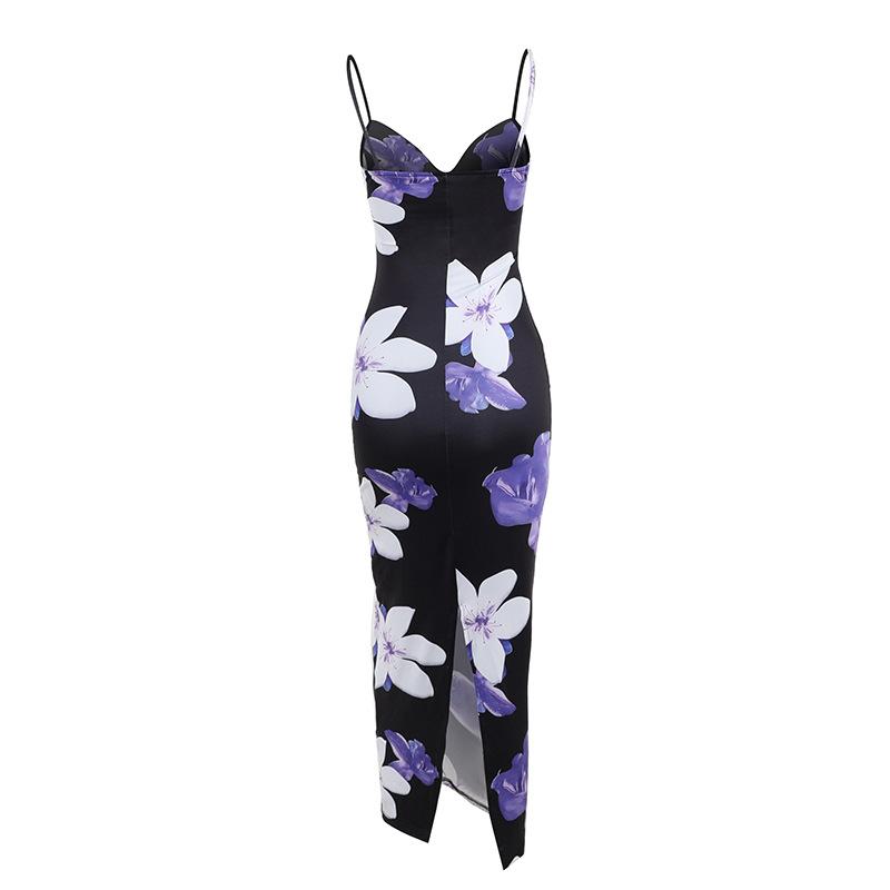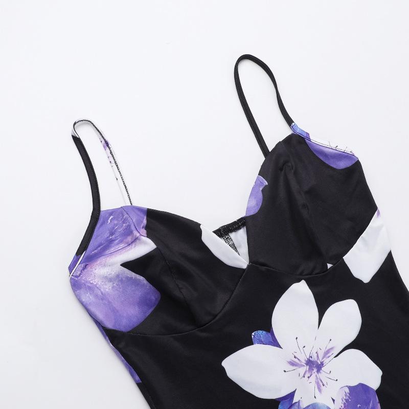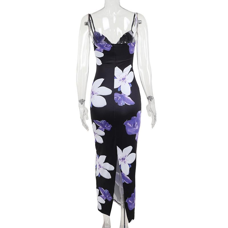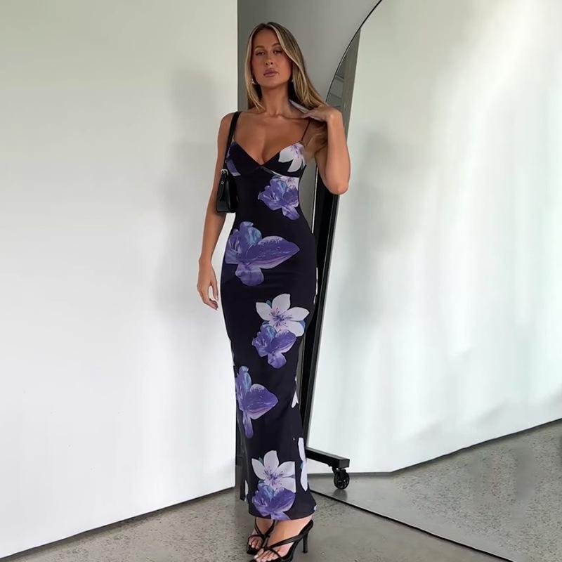 | JY23103 - Falda larga con tirantes y estampado floral en el pecho para mujer, ropa transfronteriza, vestido de cintura estrecha, 2023 |