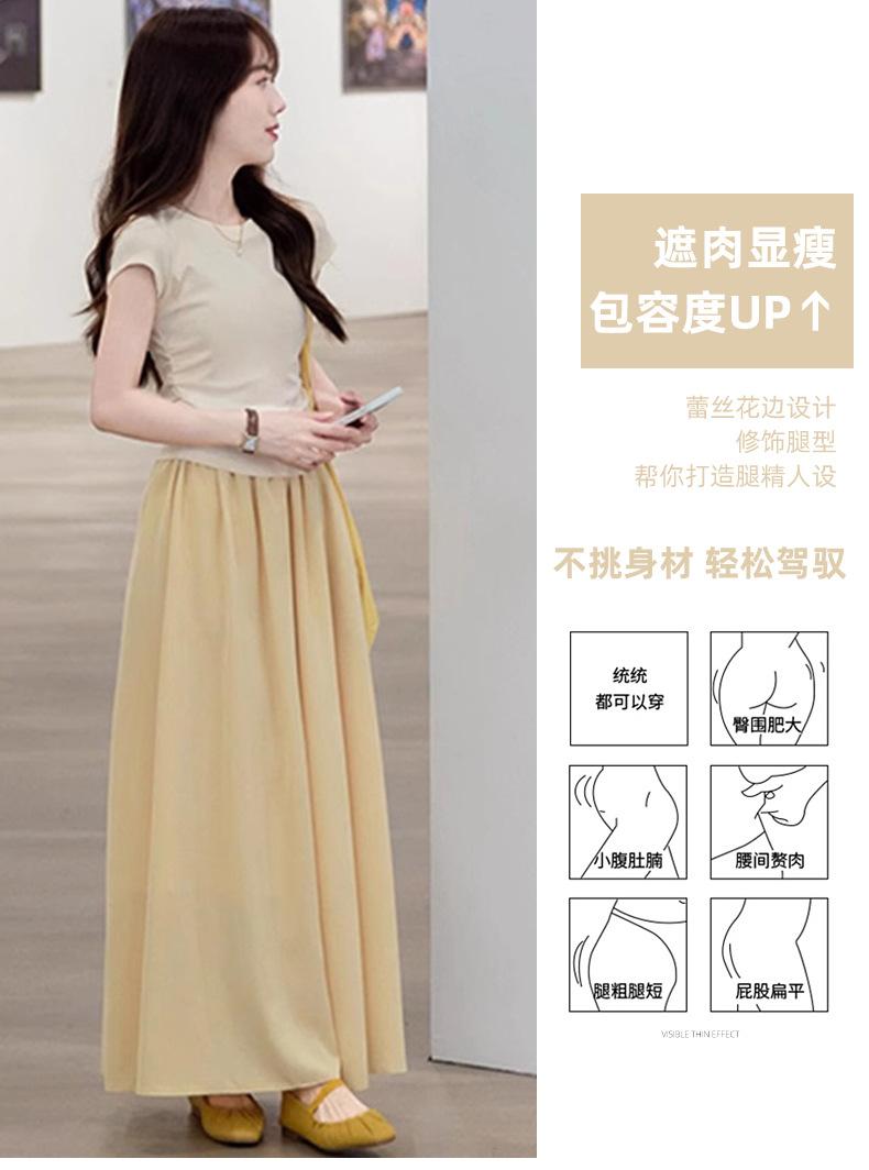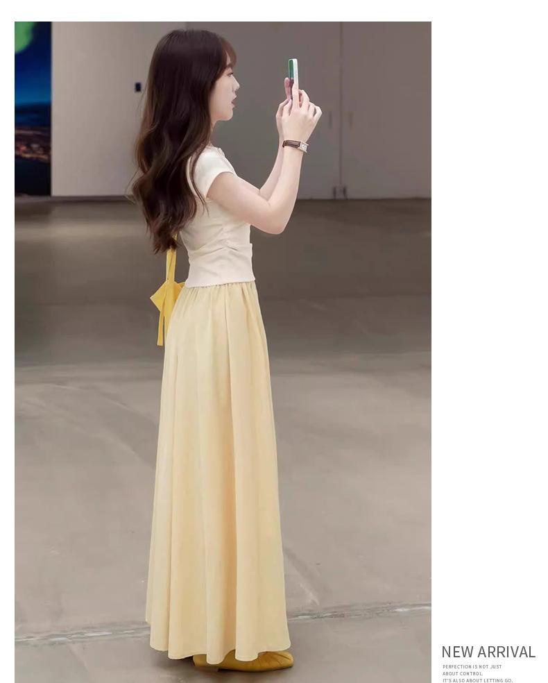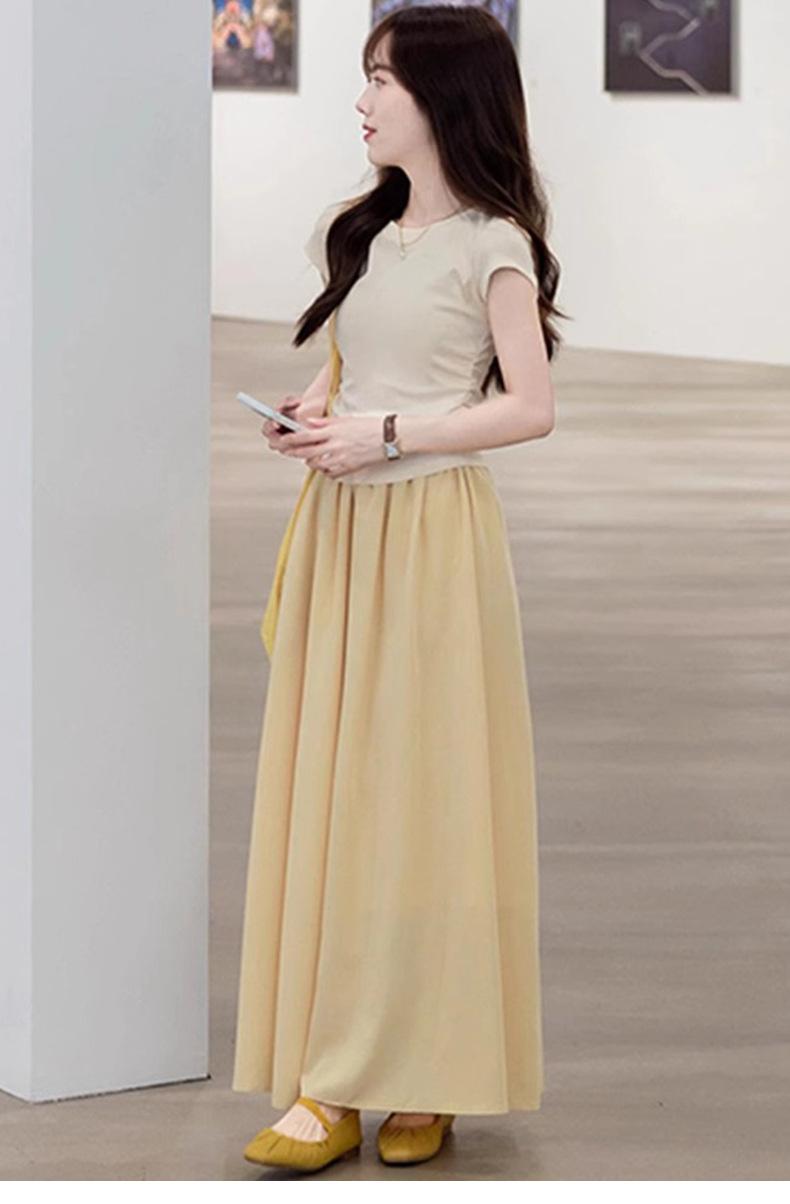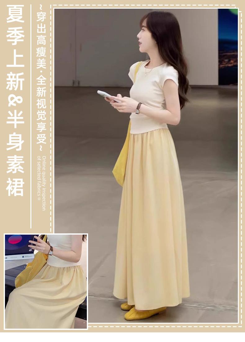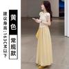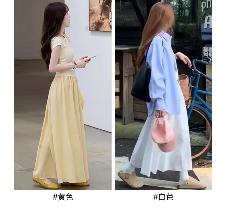 Falda Amarilla Mujer 2025 Verano Nuevo Estilo Cintura Alta Línea A Vuelo Amplio Falda Paraguas Midi Elegante Falda Plisada