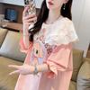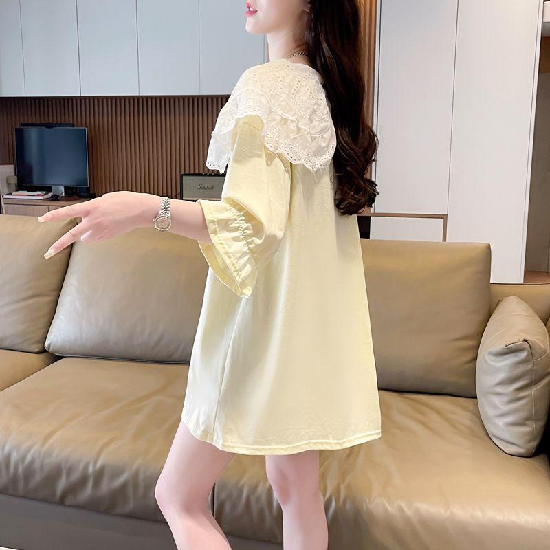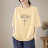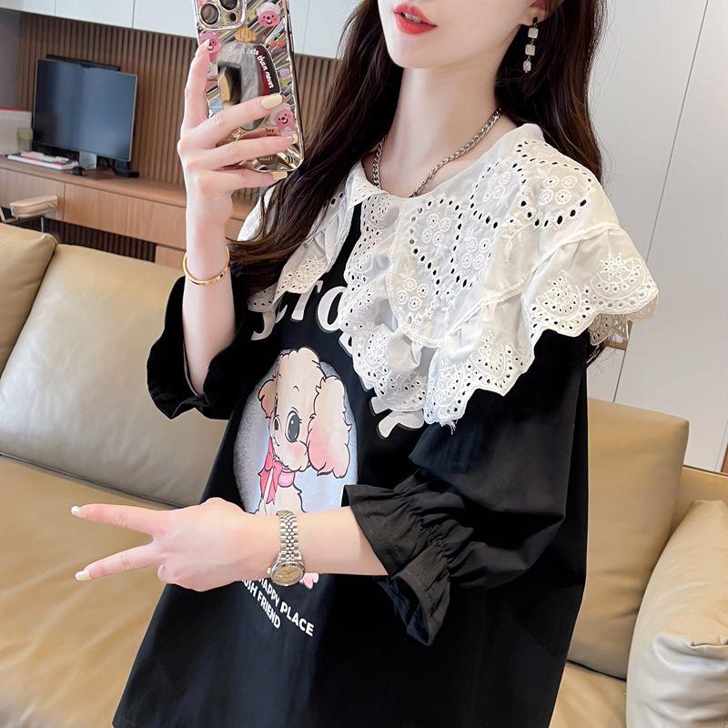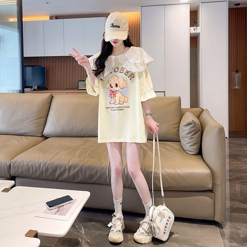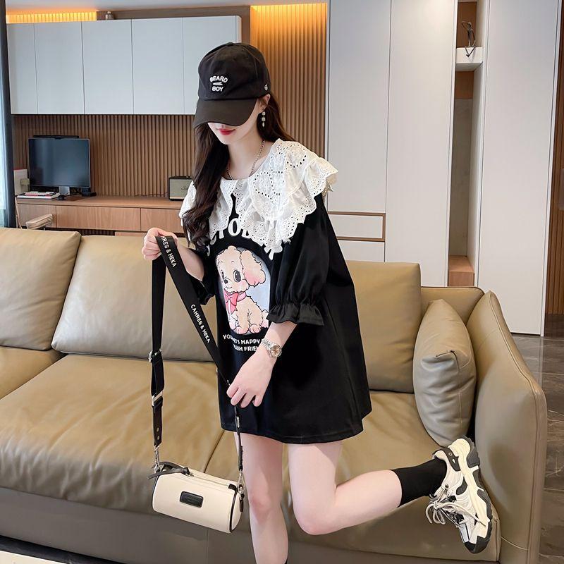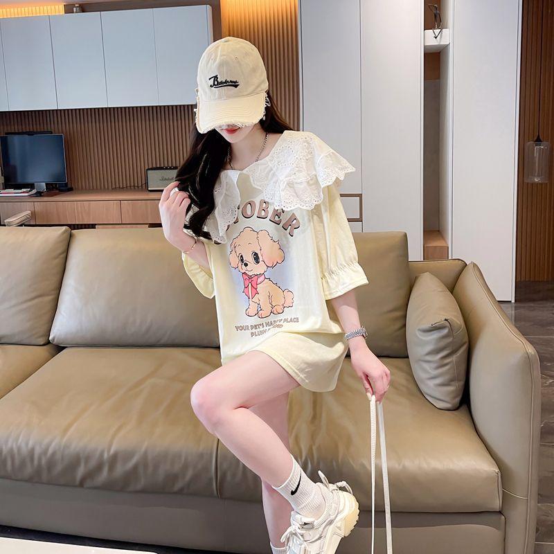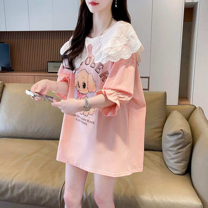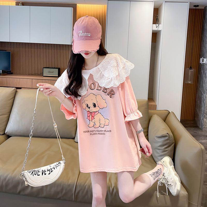 Camiseta de Manga Corta de Algodón Puro con Cuello de Muñeca Nicho de Moda para Mujer con Estampado de Dibujos Animados, Talla Grande, Top Versátil Elegante