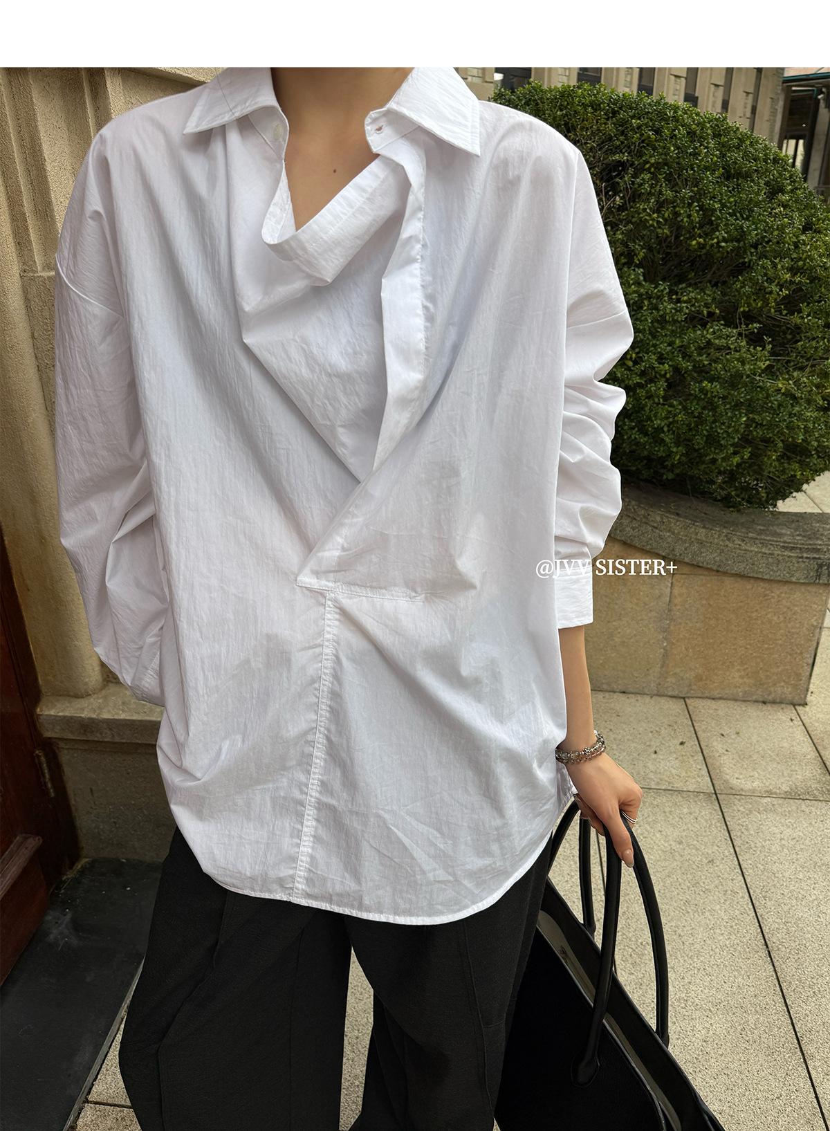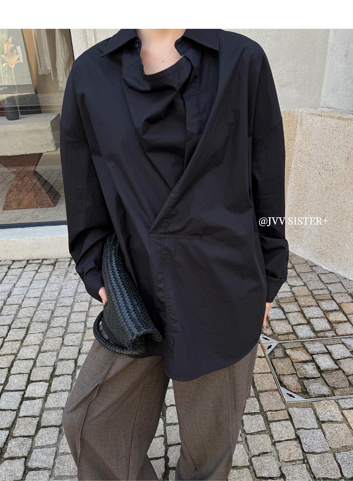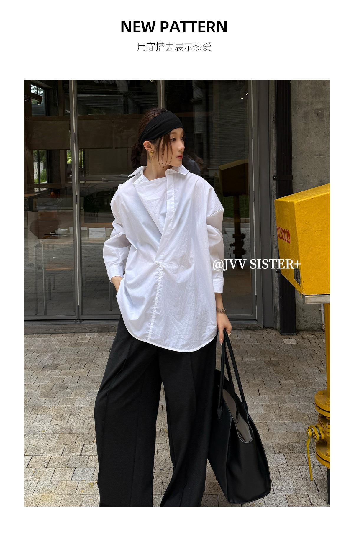 JVV Trece Líneas 2025 Otoño Nuevo Sentido del Diseño Camisa Jersey Cuello Caído Suelta Manga Larga Blusa Mujer 71072