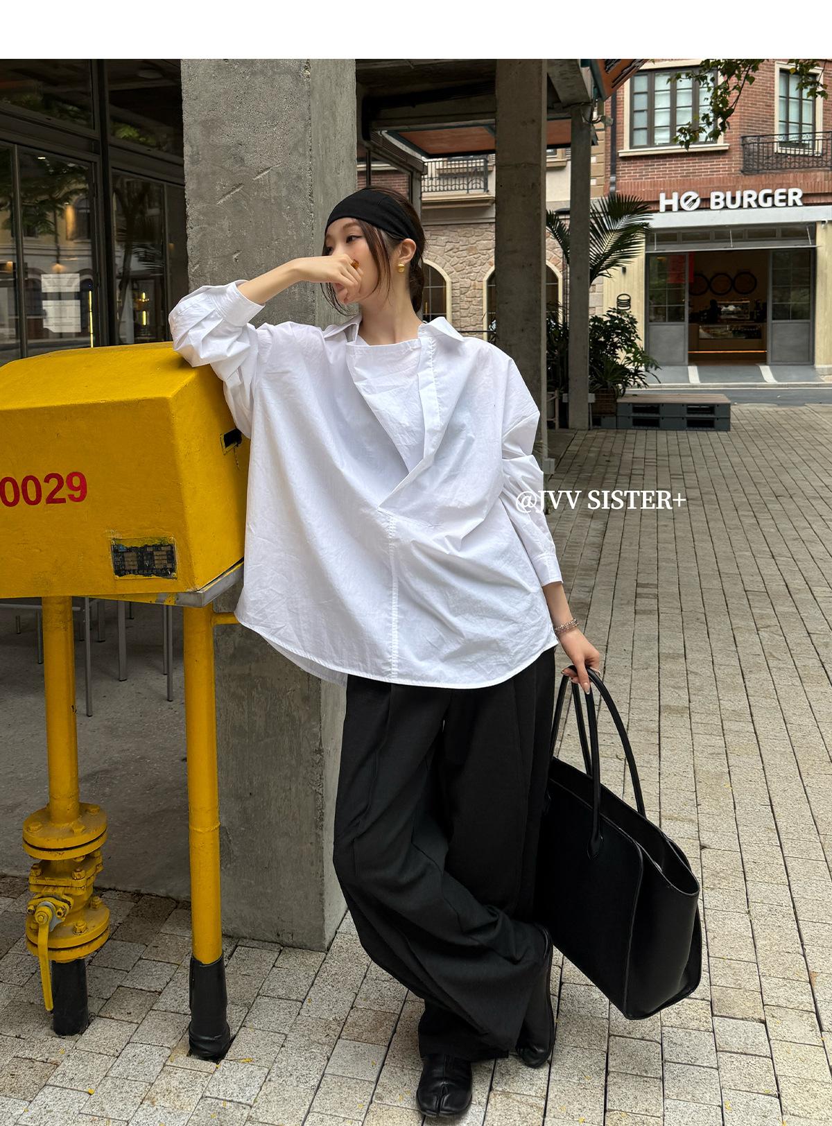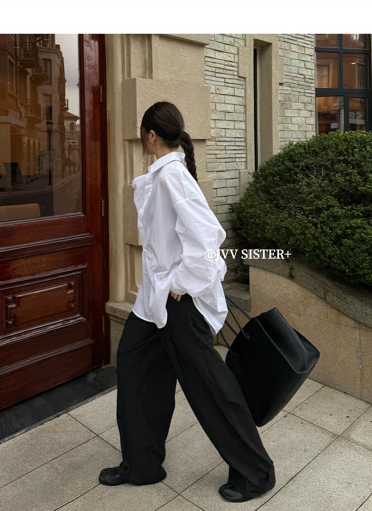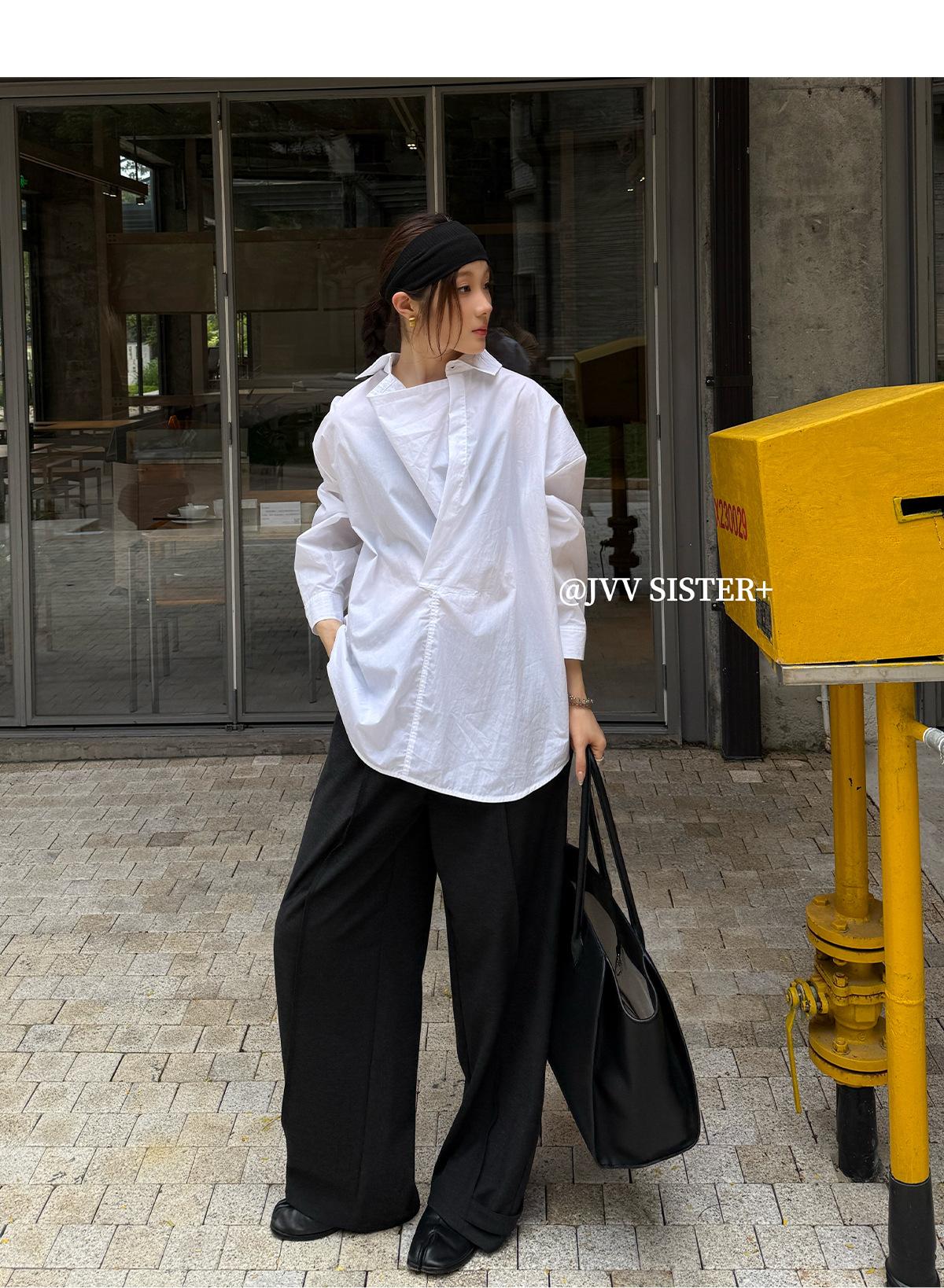 JVV Trece Líneas 2025 Otoño Nuevo Sentido del Diseño Camisa Jersey Cuello Caído Suelta Manga Larga Blusa Mujer 71072