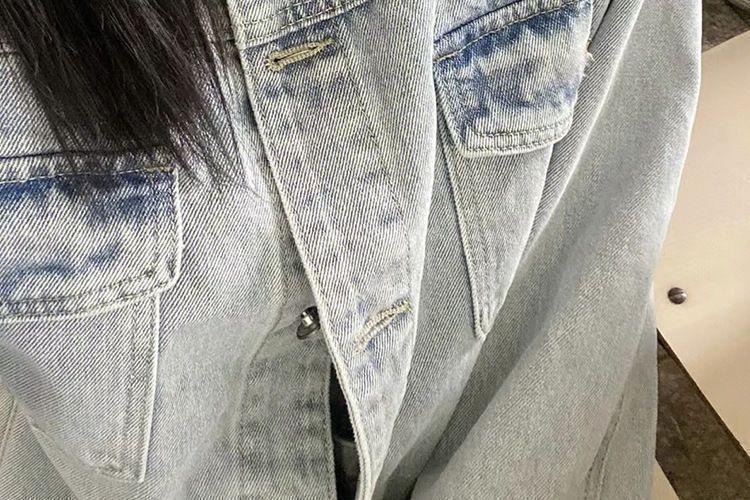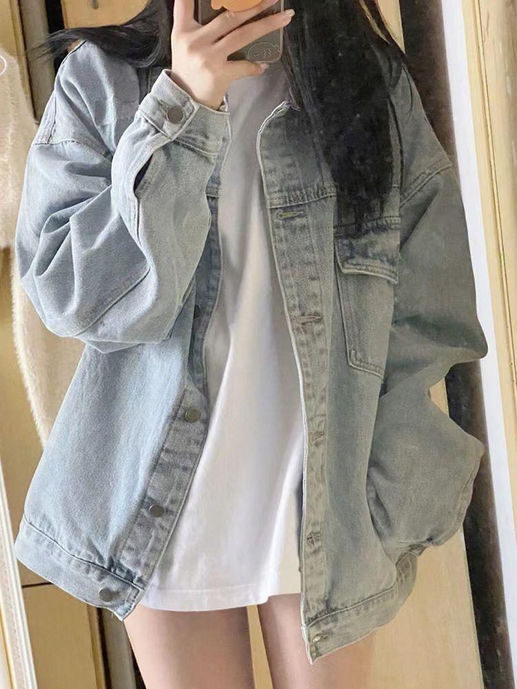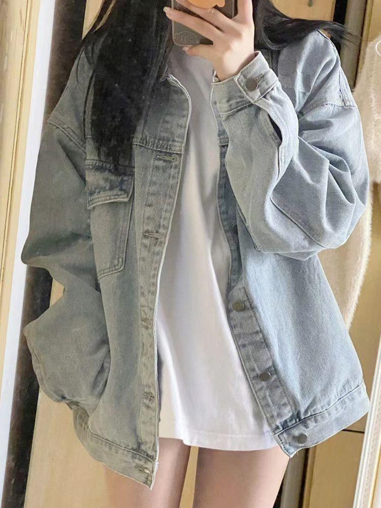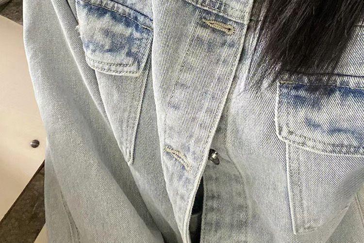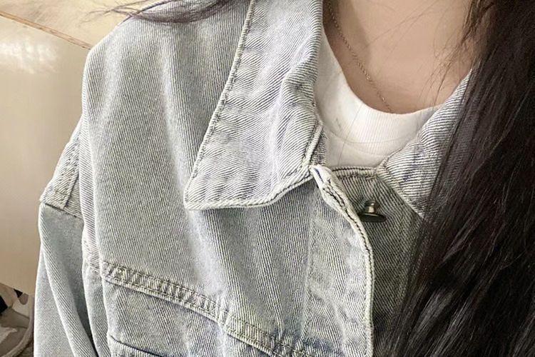Chamarra de mezclilla azul retro americana para mujer primavera otoño nueva holgada versátil sentido del diseño camisa nicho