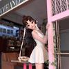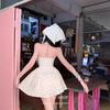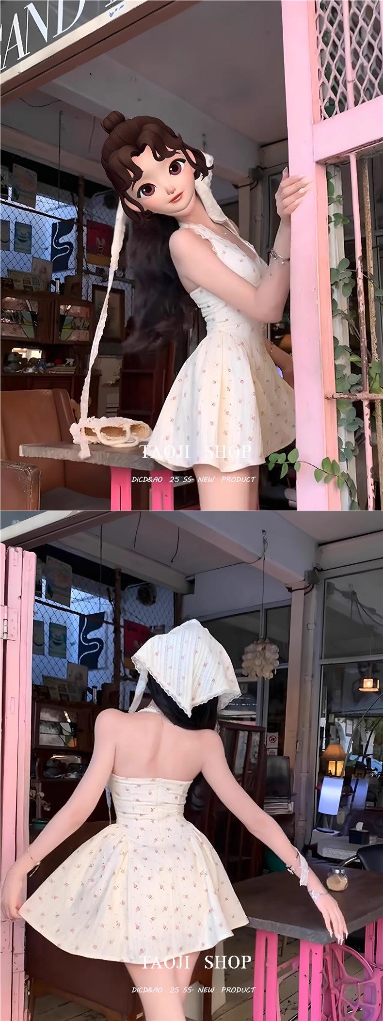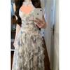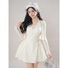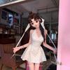 Estilo puro y sexy dulce encaje cuello halter en V vestido mujeres primavera verano adelgazante de cintura floral línea A vestido corto