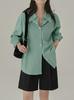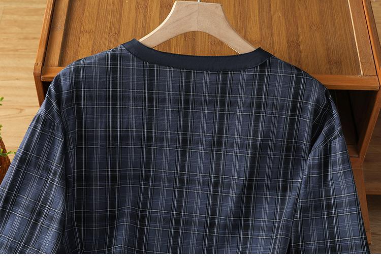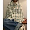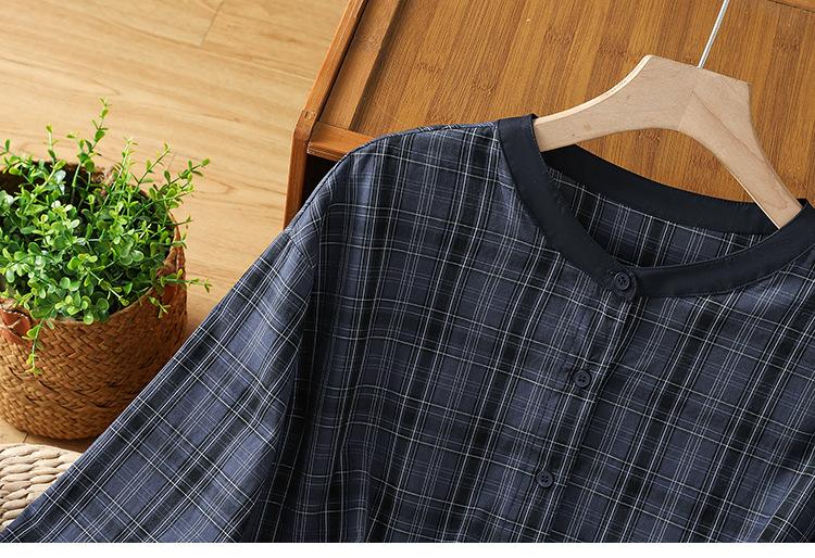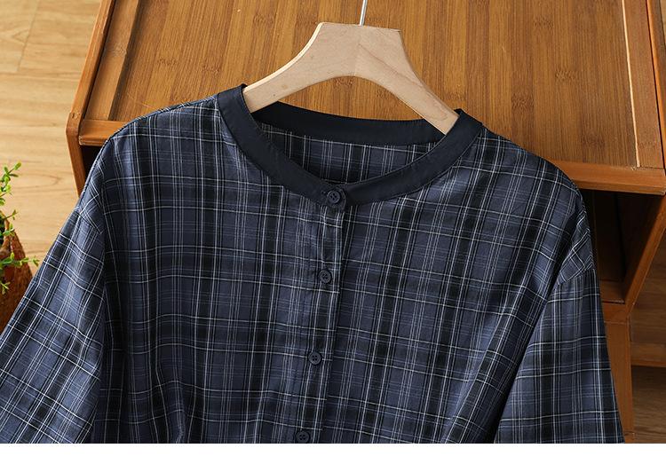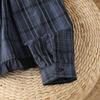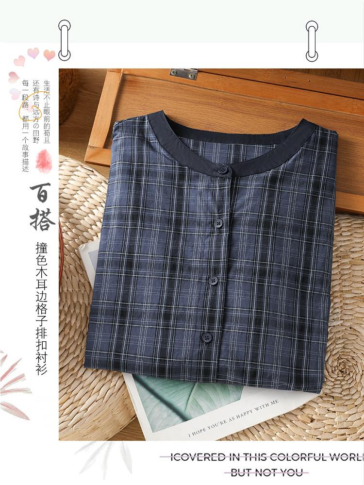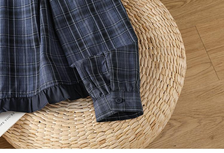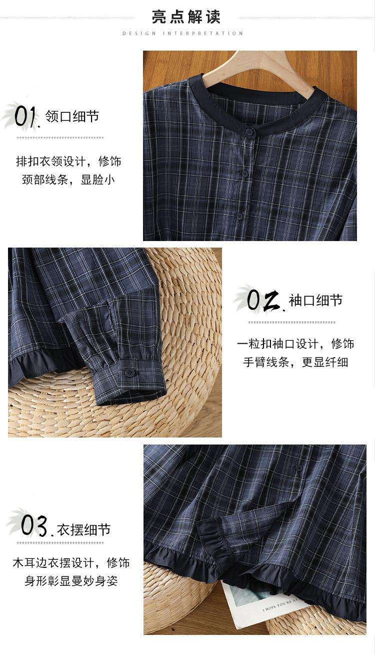 Foto Real 2025 Camisa Casual Simple a Cuadros Otoño Suelta Casual Cuello Redondo Top con Borde de Volantes Mujer