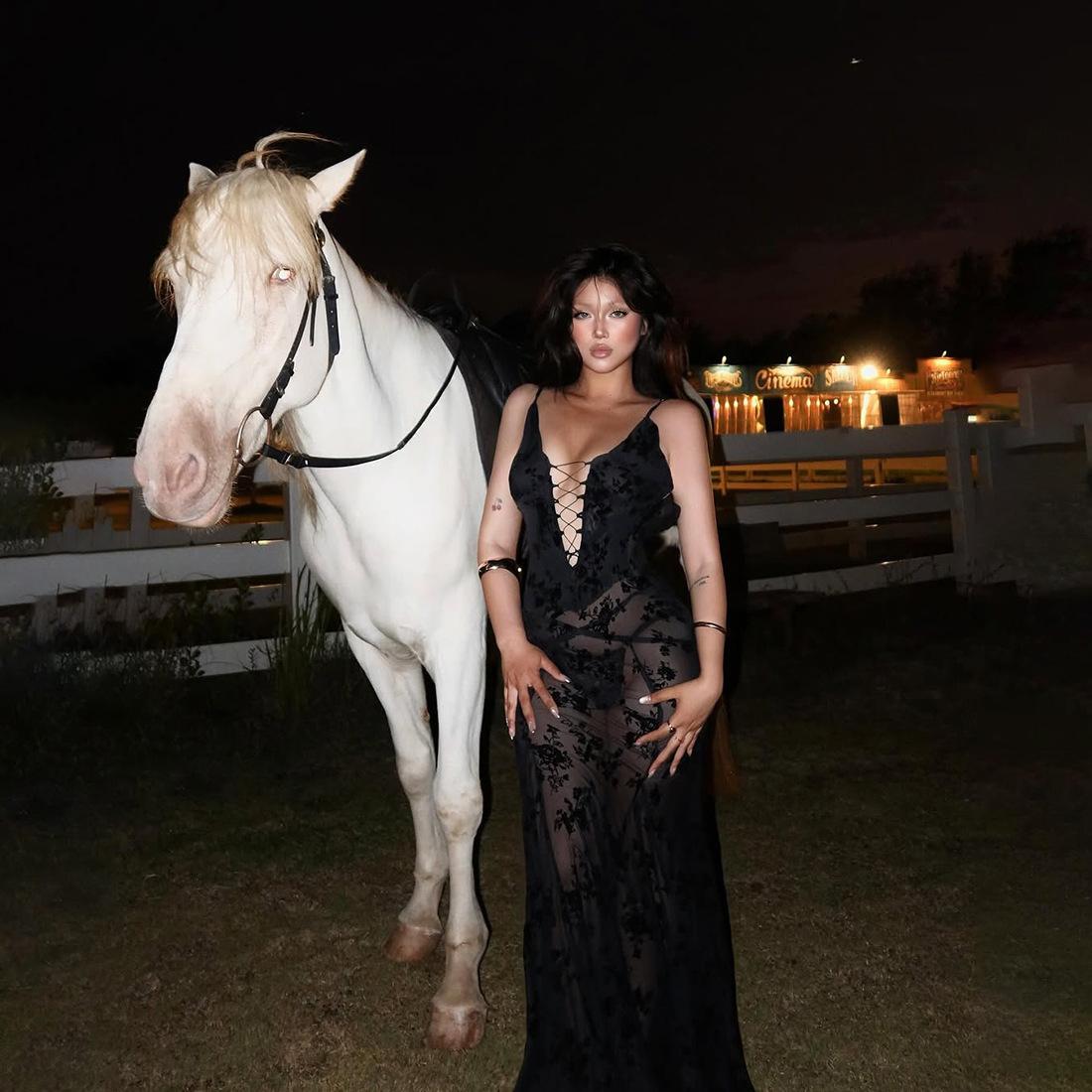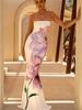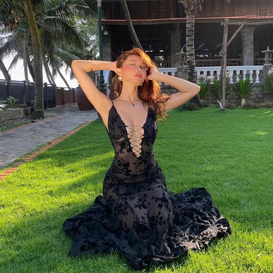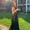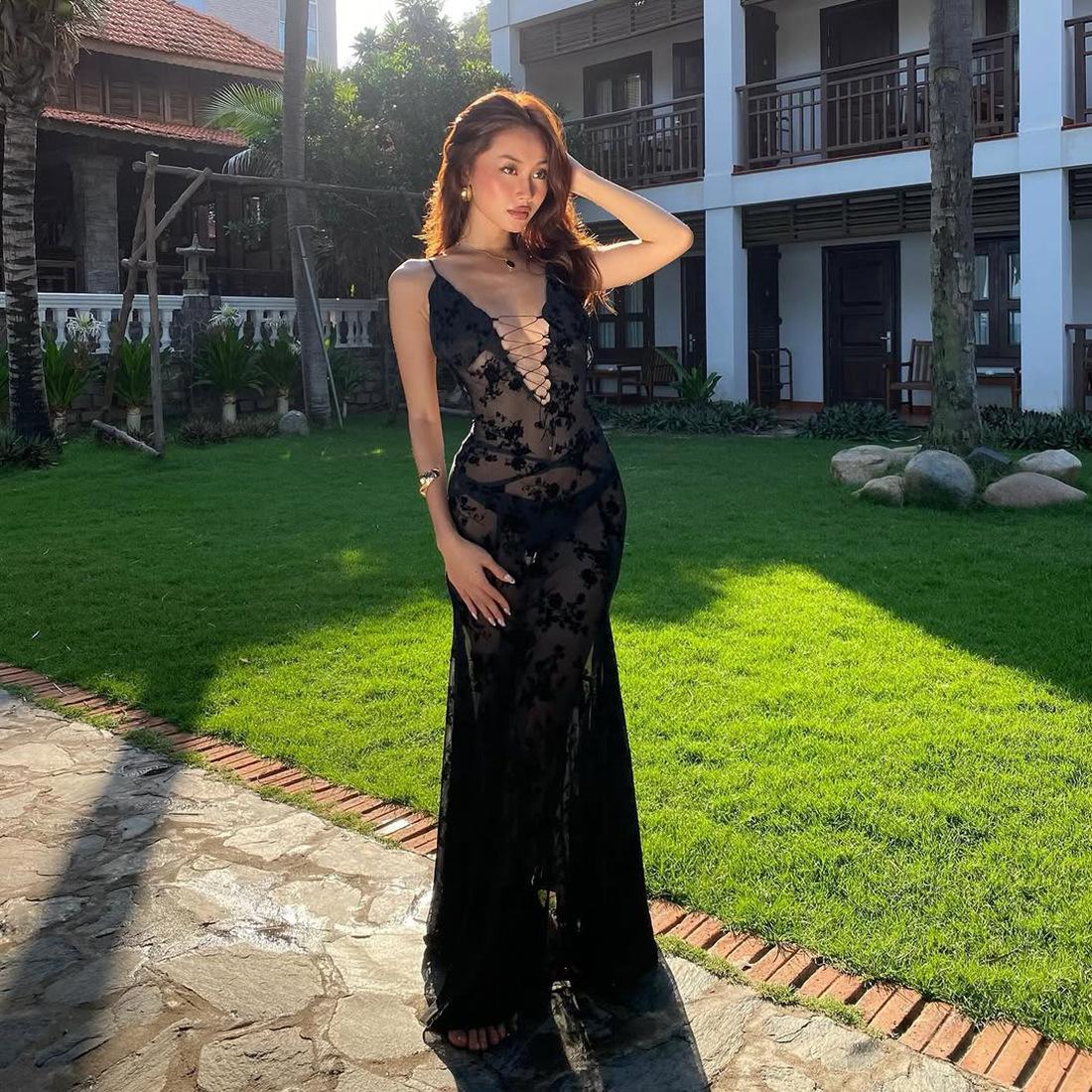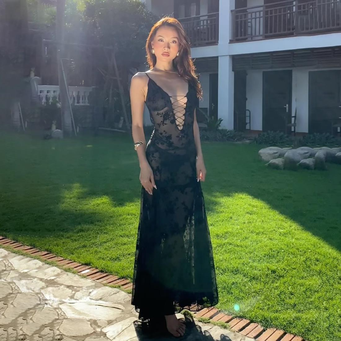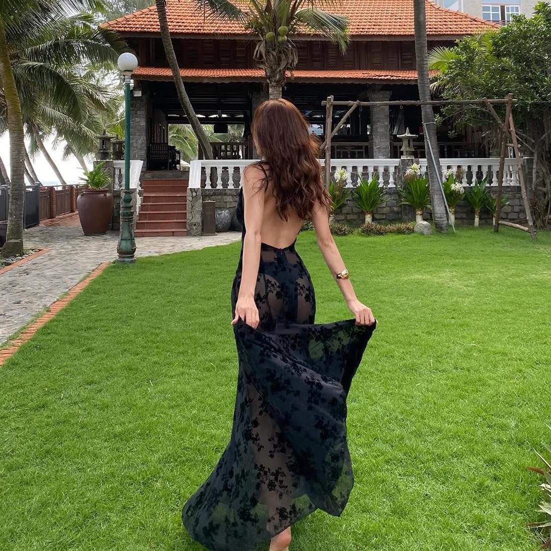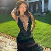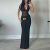Estilo europeo y americano transfronterizo 2025 otoño nueva ropa de mujer malla sexy transparente cuello en V sin espalda ajustado camisola vestido