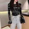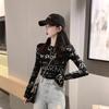 Diseño sentido estampado de letras camiseta manga larga mujer estilo coreano superventas nicho retro americano corte ajustado base otoño
