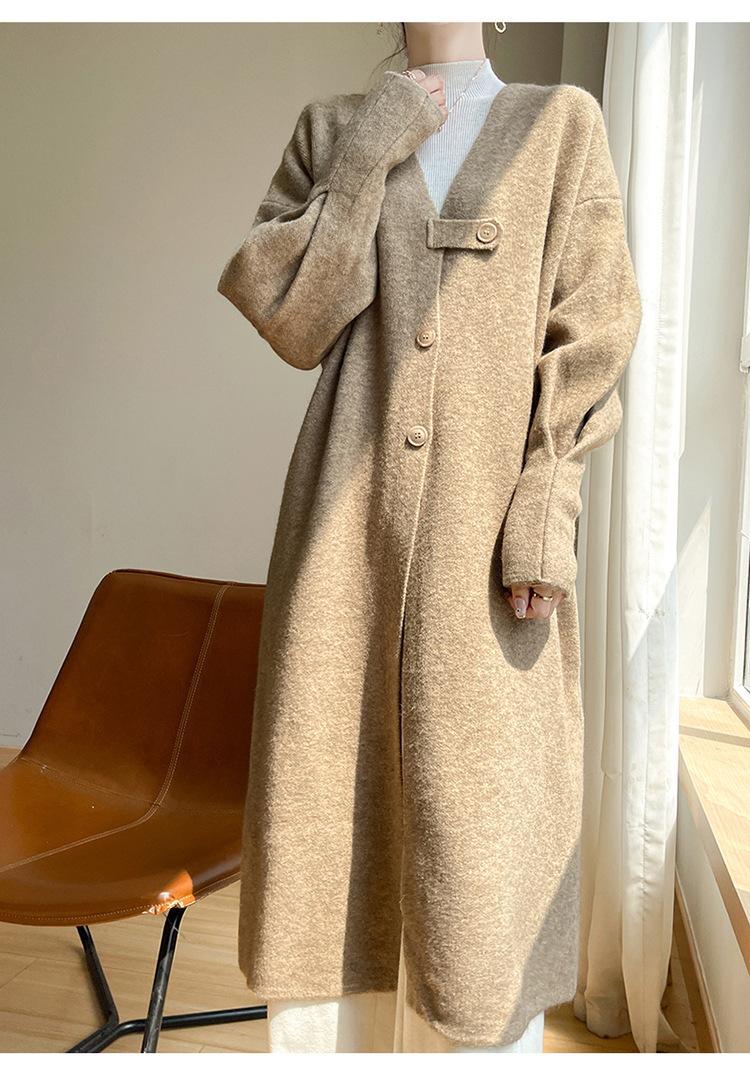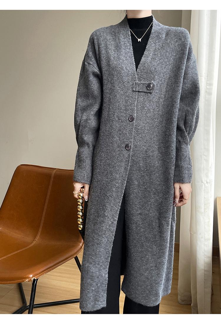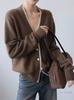 Primavera 2025 Nuevo Cárdigan de Punto Andi de Terciopelo con Cuello en V Color Sólido Holgado Combinable Abrigo Largo Top