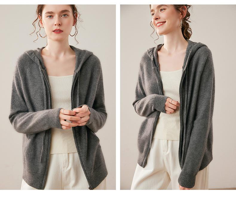 Cárdigan Nuevo con Capucha Suéter Holgado de Punto Abrigo Cárdigan de Punto de Cachemira Moda Otoño Invierno Top de Temperamento para Mujer
