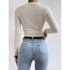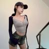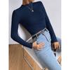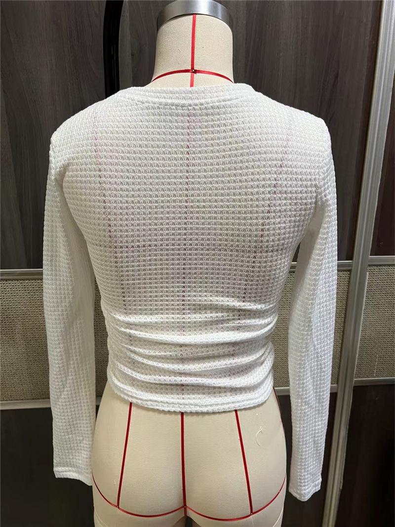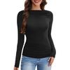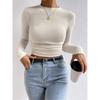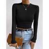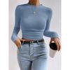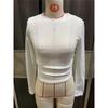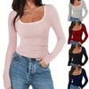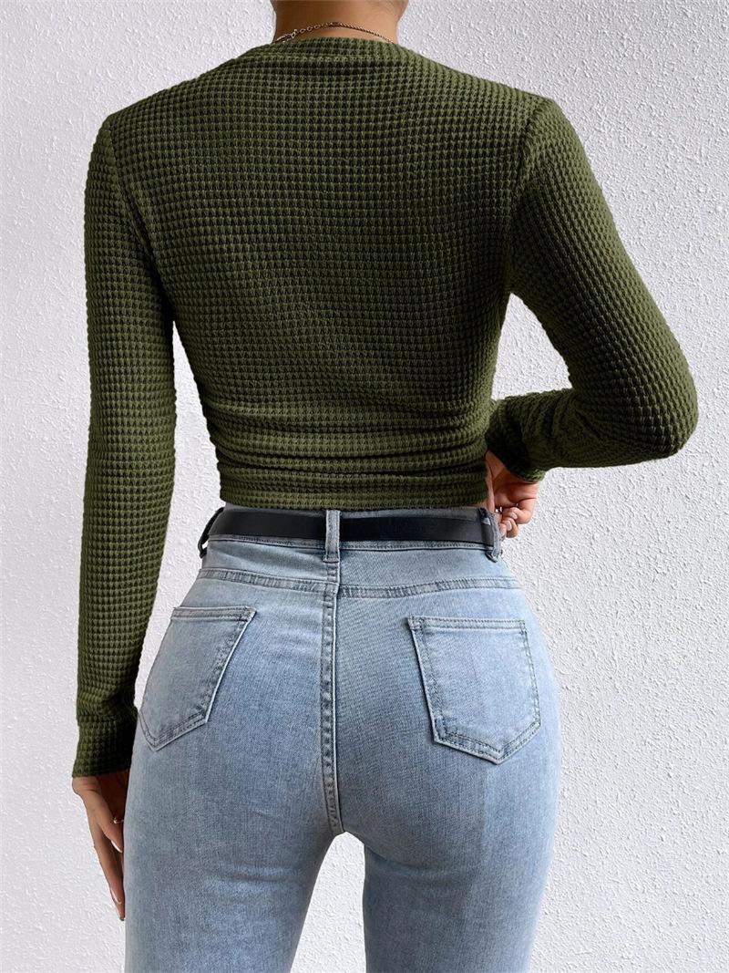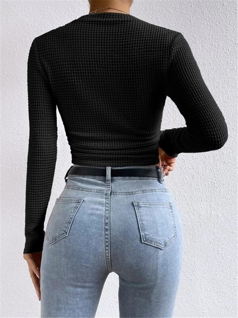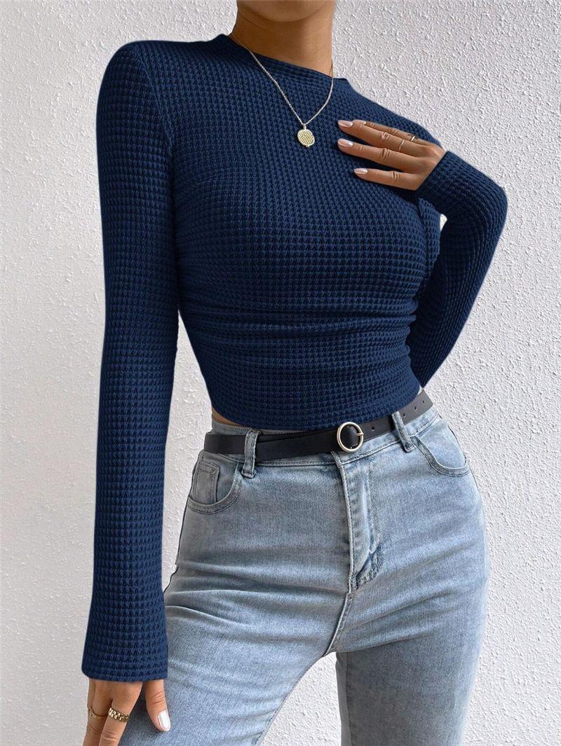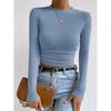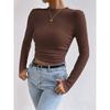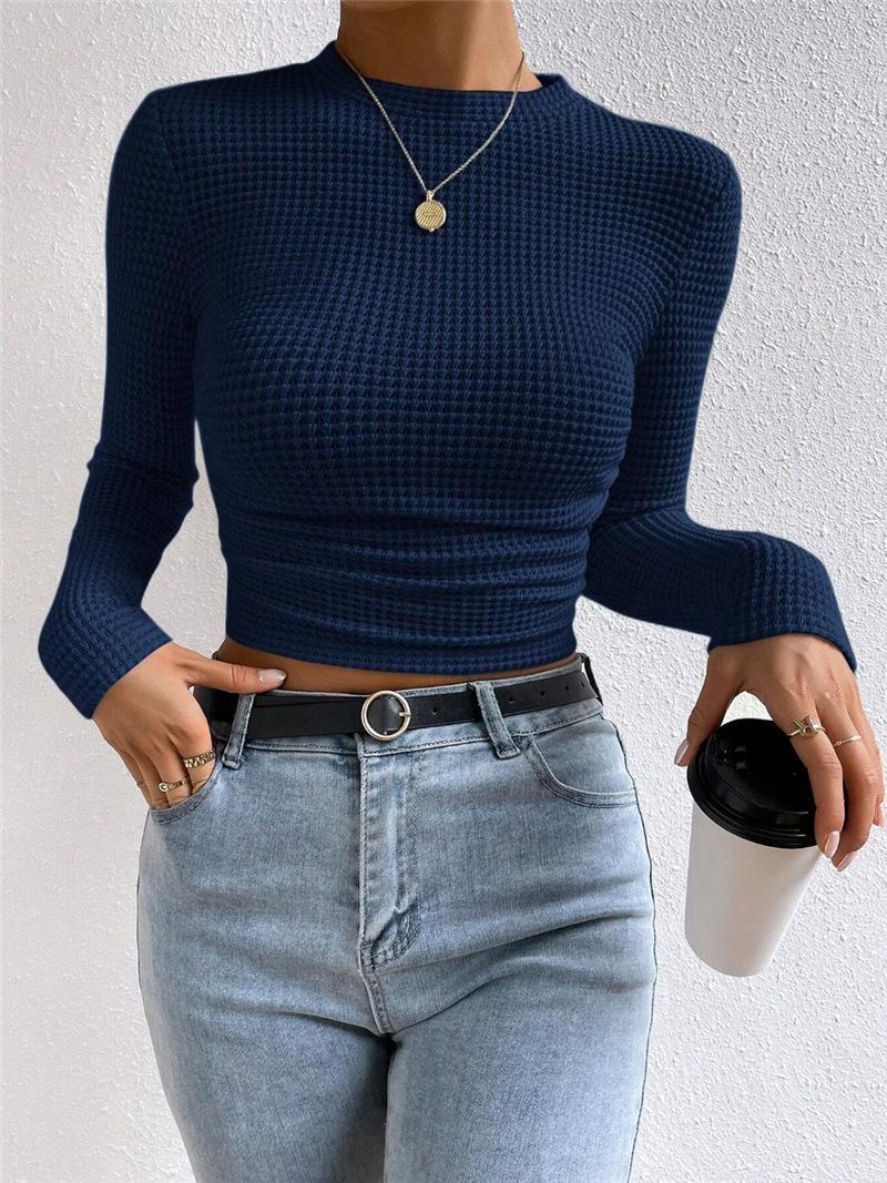 2025 Moda Europea y Americana Transfronteriza Otoño e Invierno Ajustada Versátil Manga Larga Cuadros Cuello Redondo Camiseta de Mujer Top Fruncido Venta al por Mayor