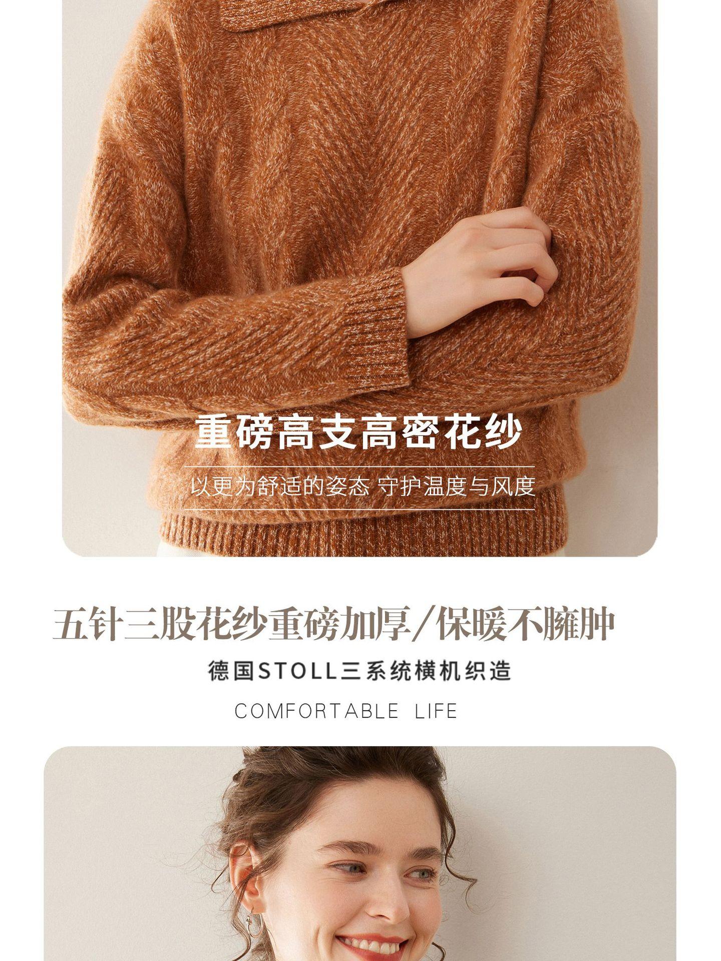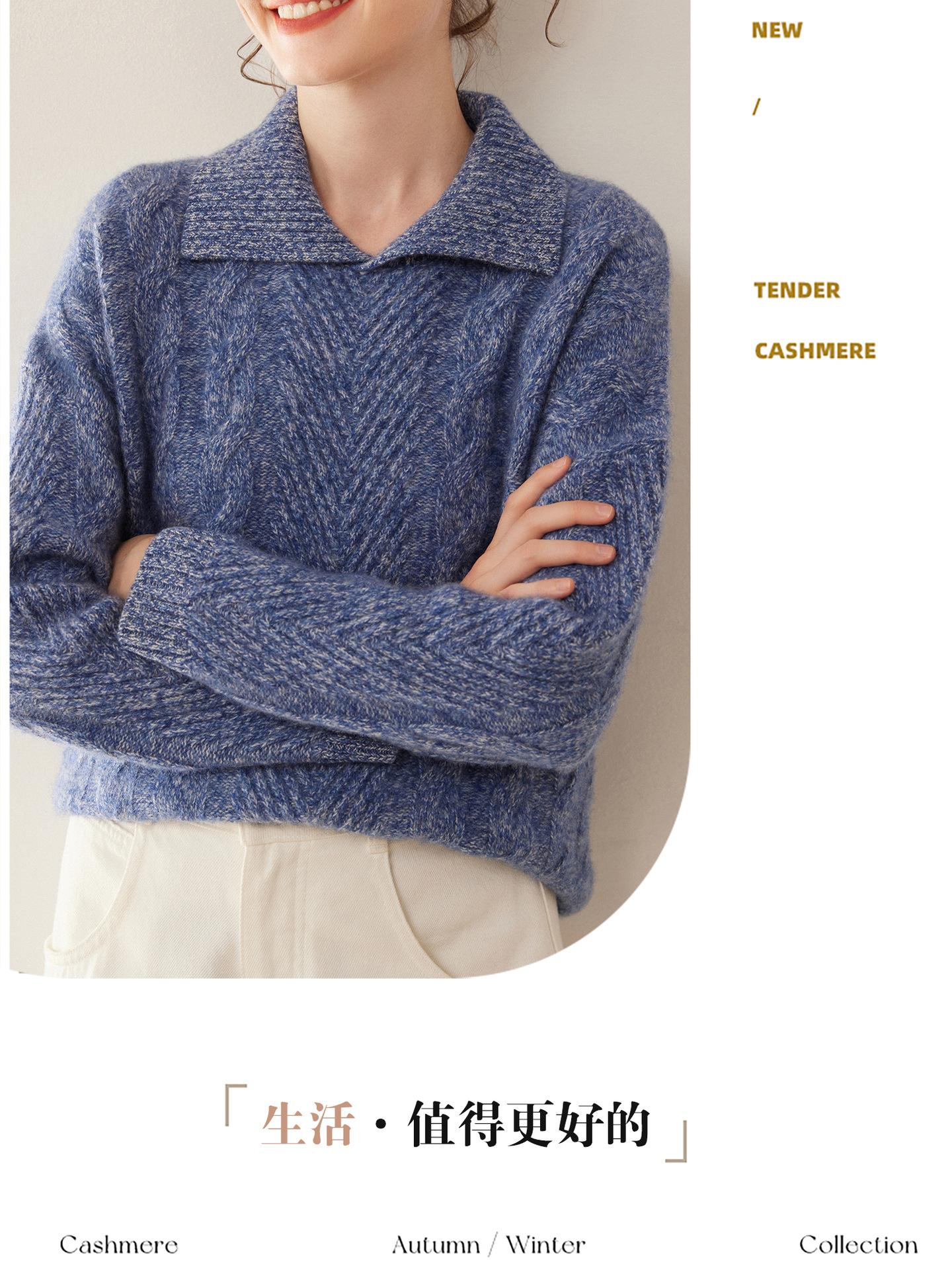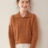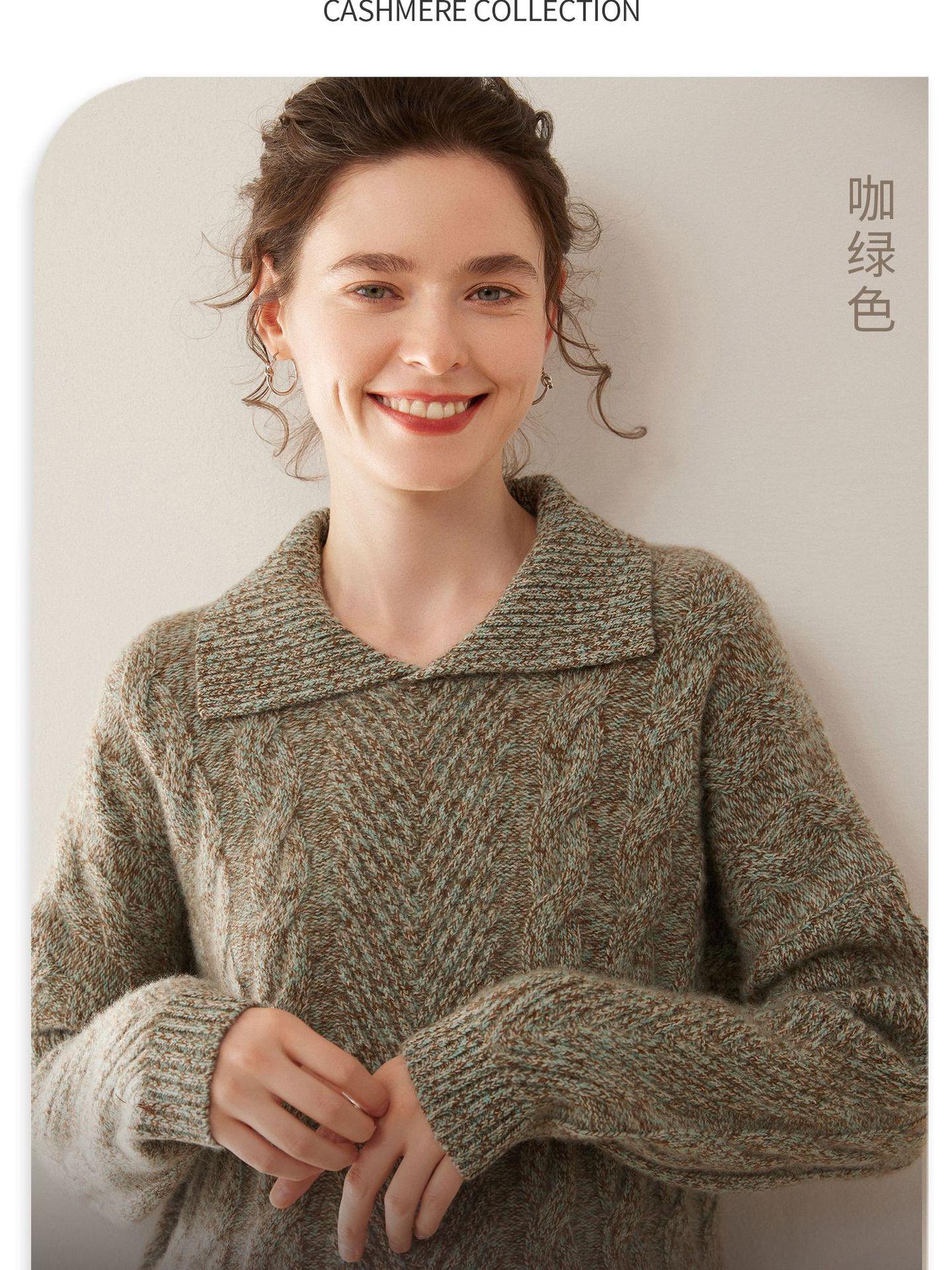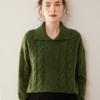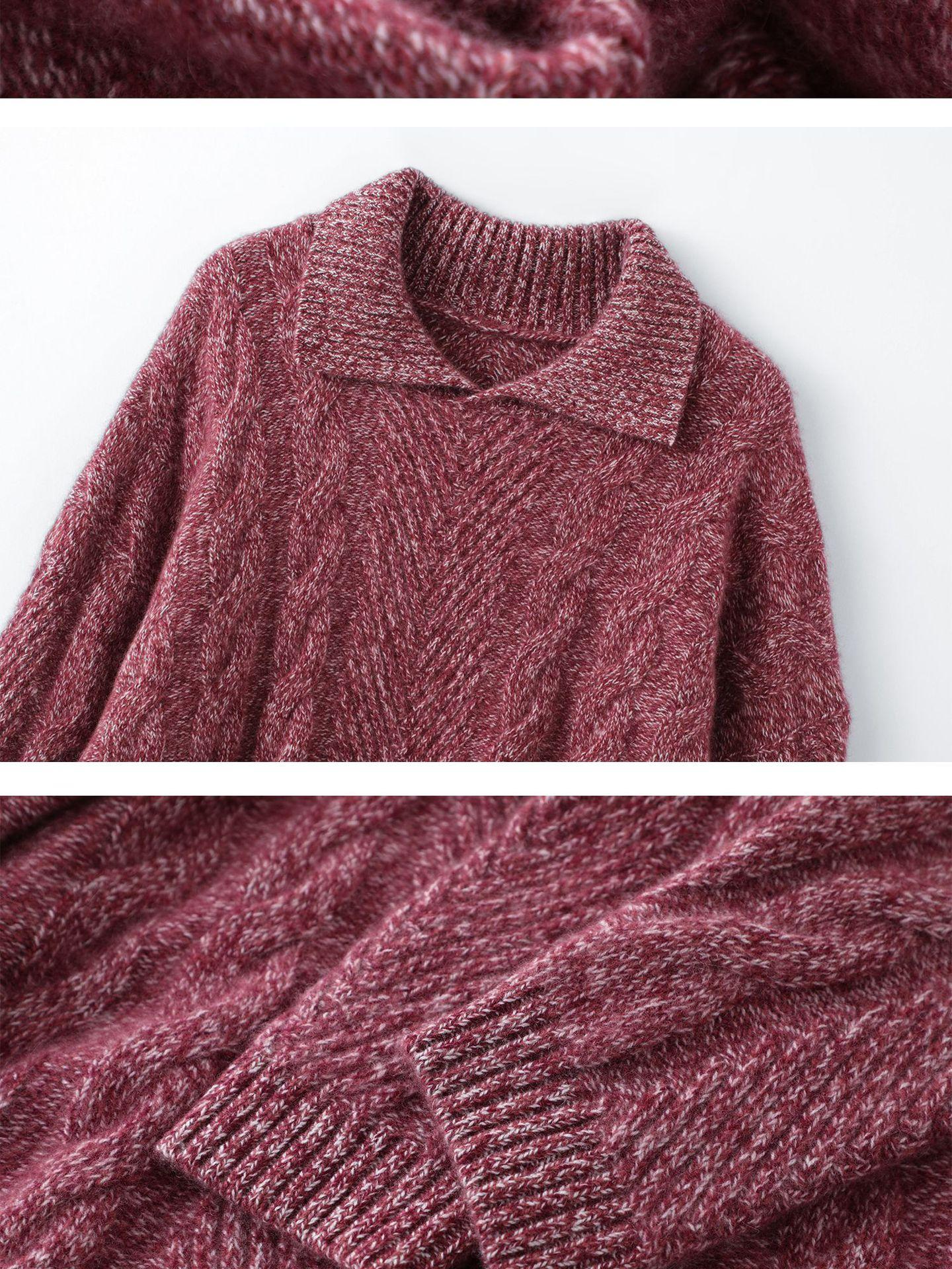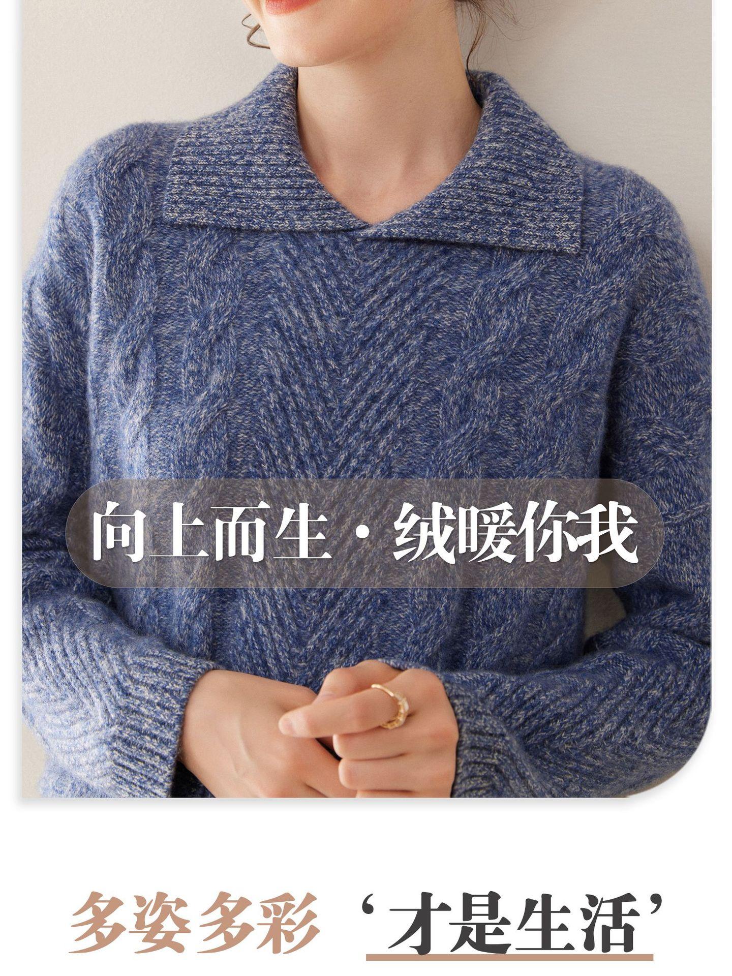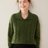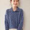 Suéter de cachemira de punto trenzado con cuello POLO engrosado de tres capas para mujer, suéter holgado de solapa grande, suéter de punto, camisa básica de capa interior