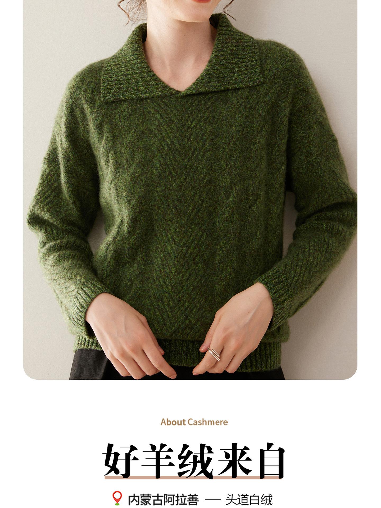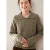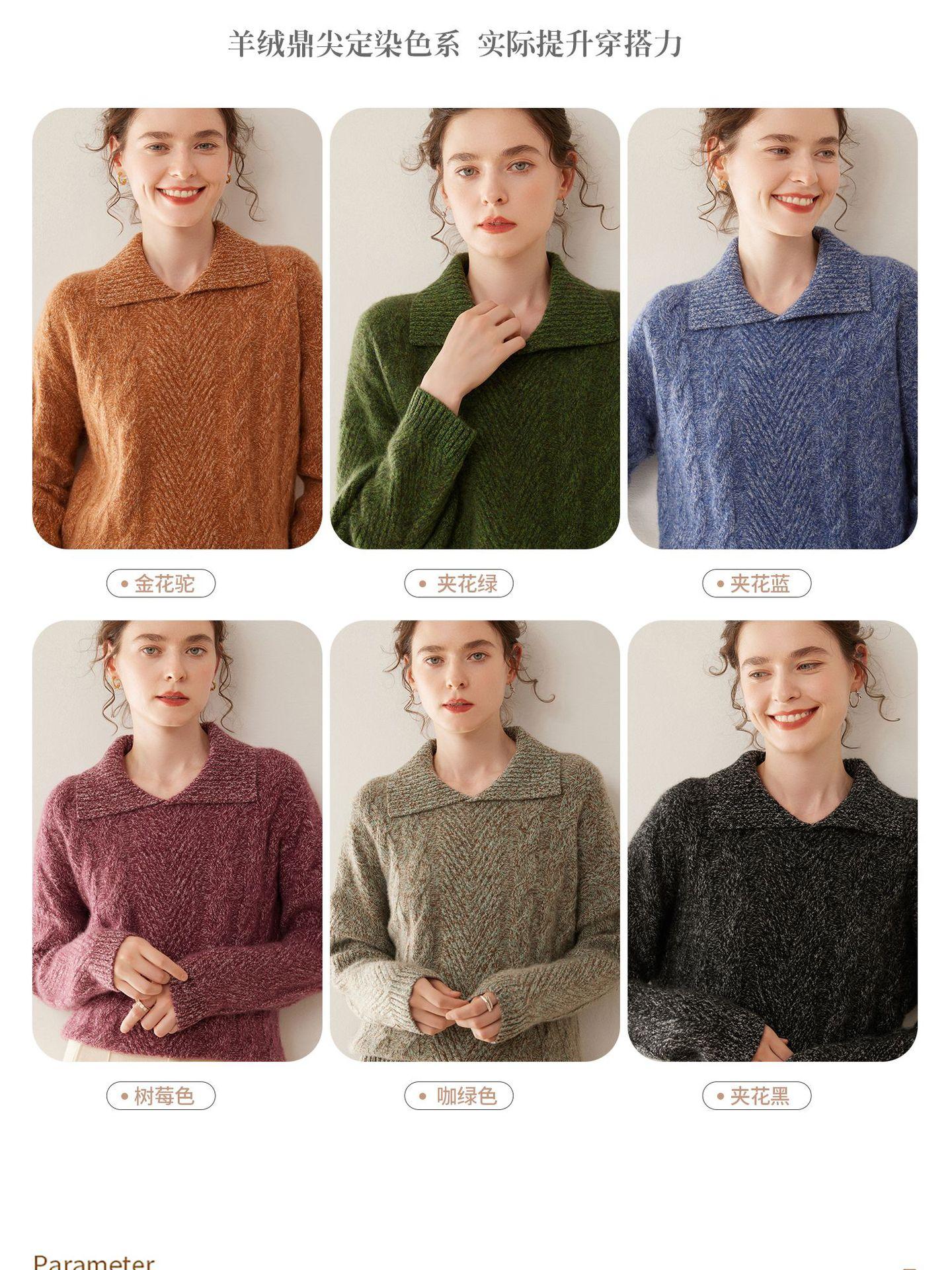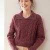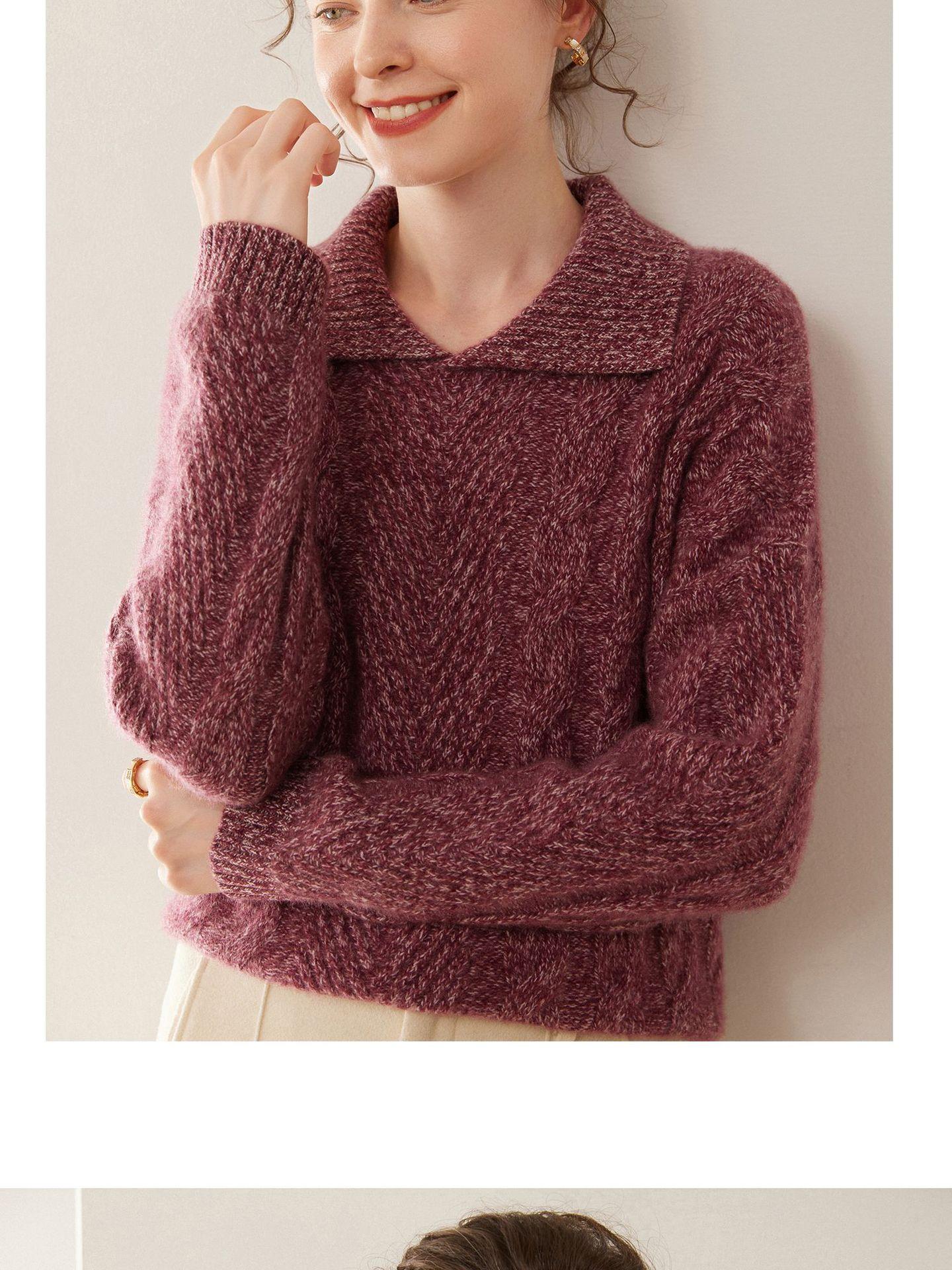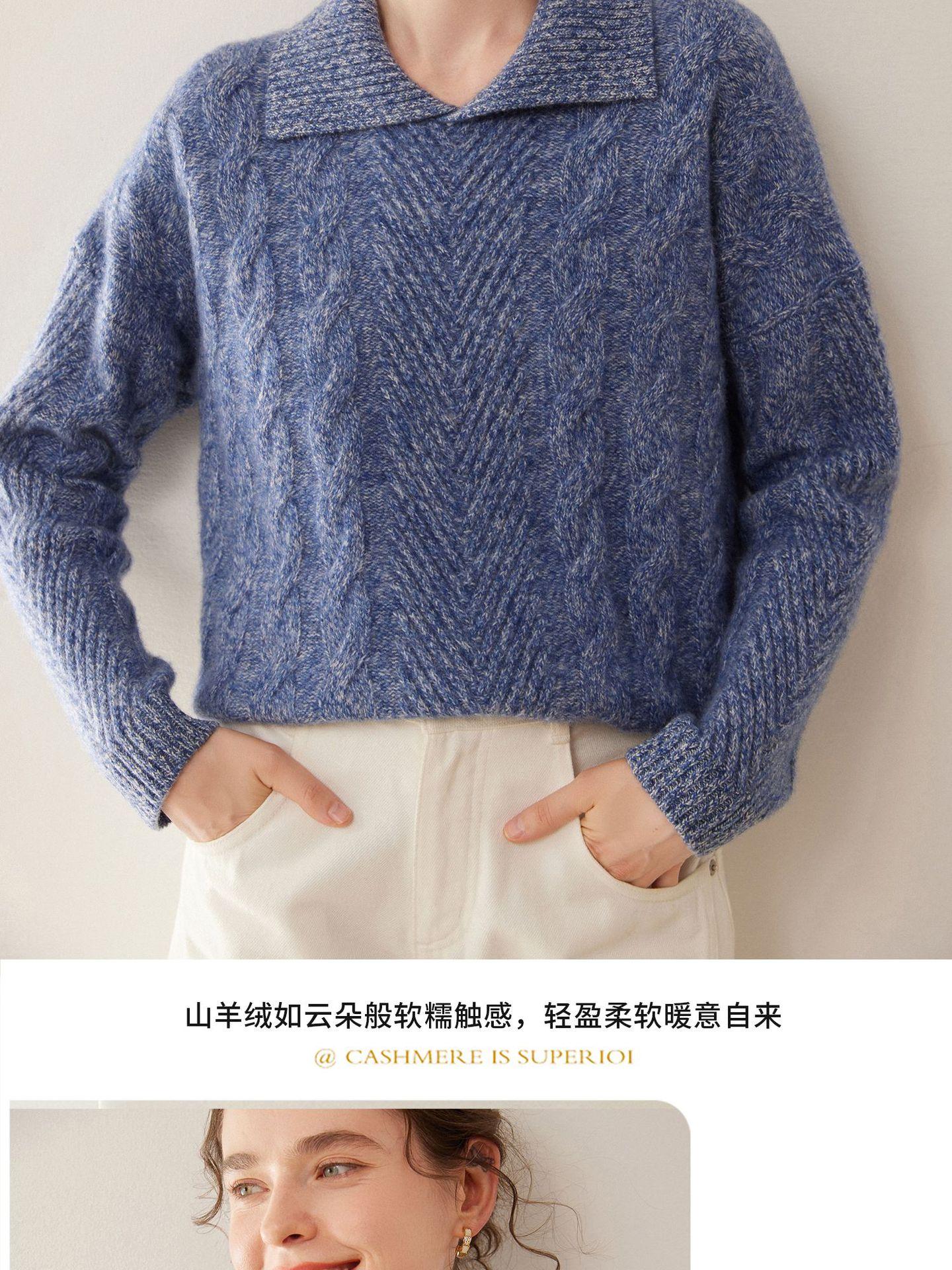 Suéter de cachemira de punto trenzado con cuello POLO engrosado de tres capas para mujer, suéter holgado de solapa grande, suéter de punto, camisa básica de capa interior