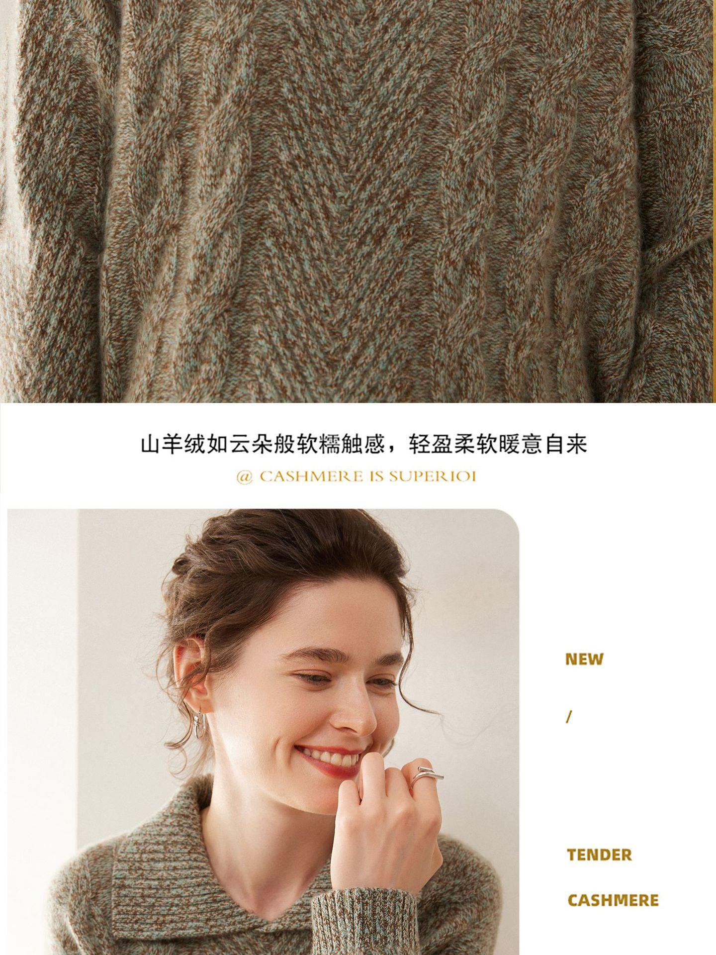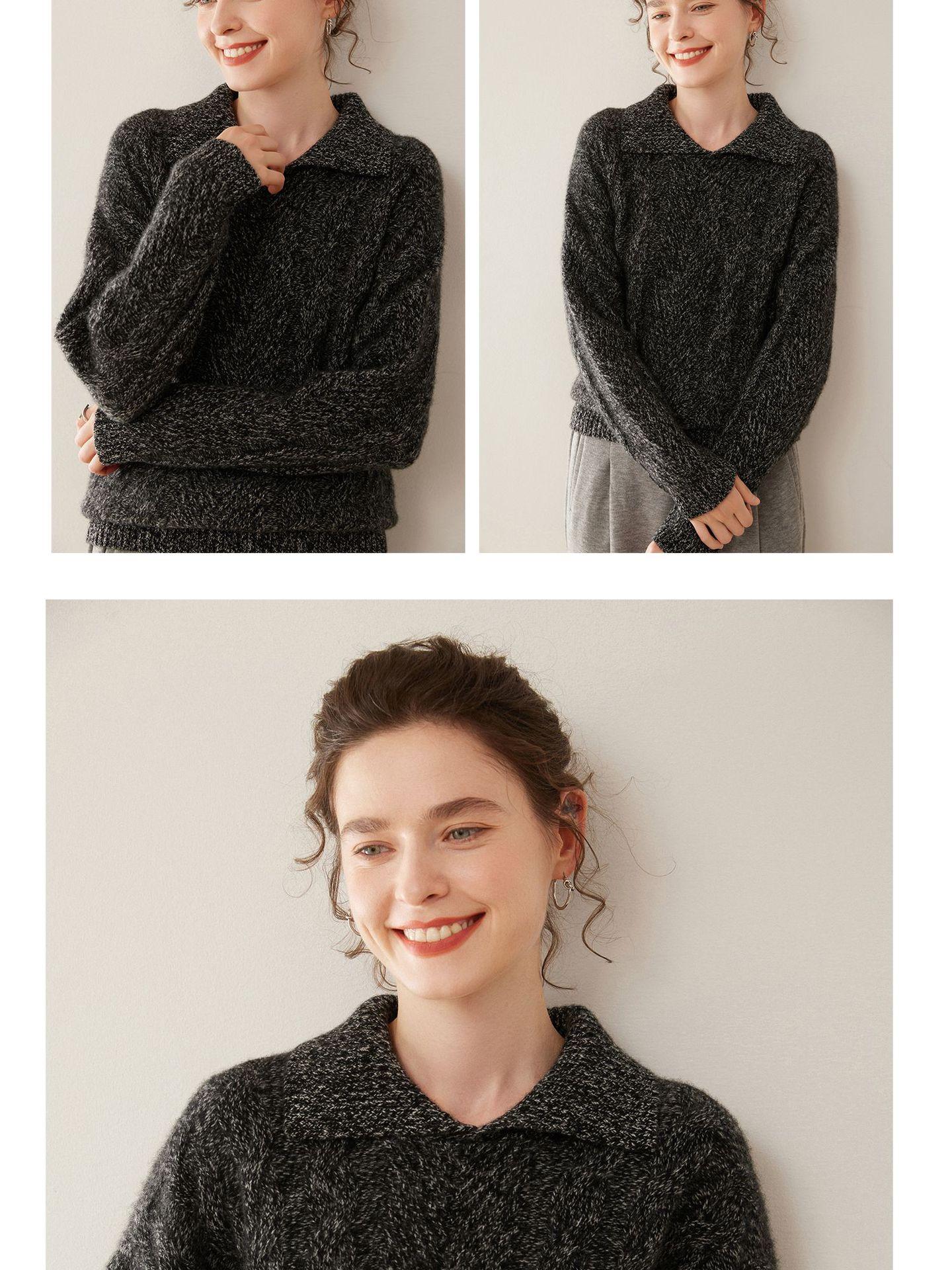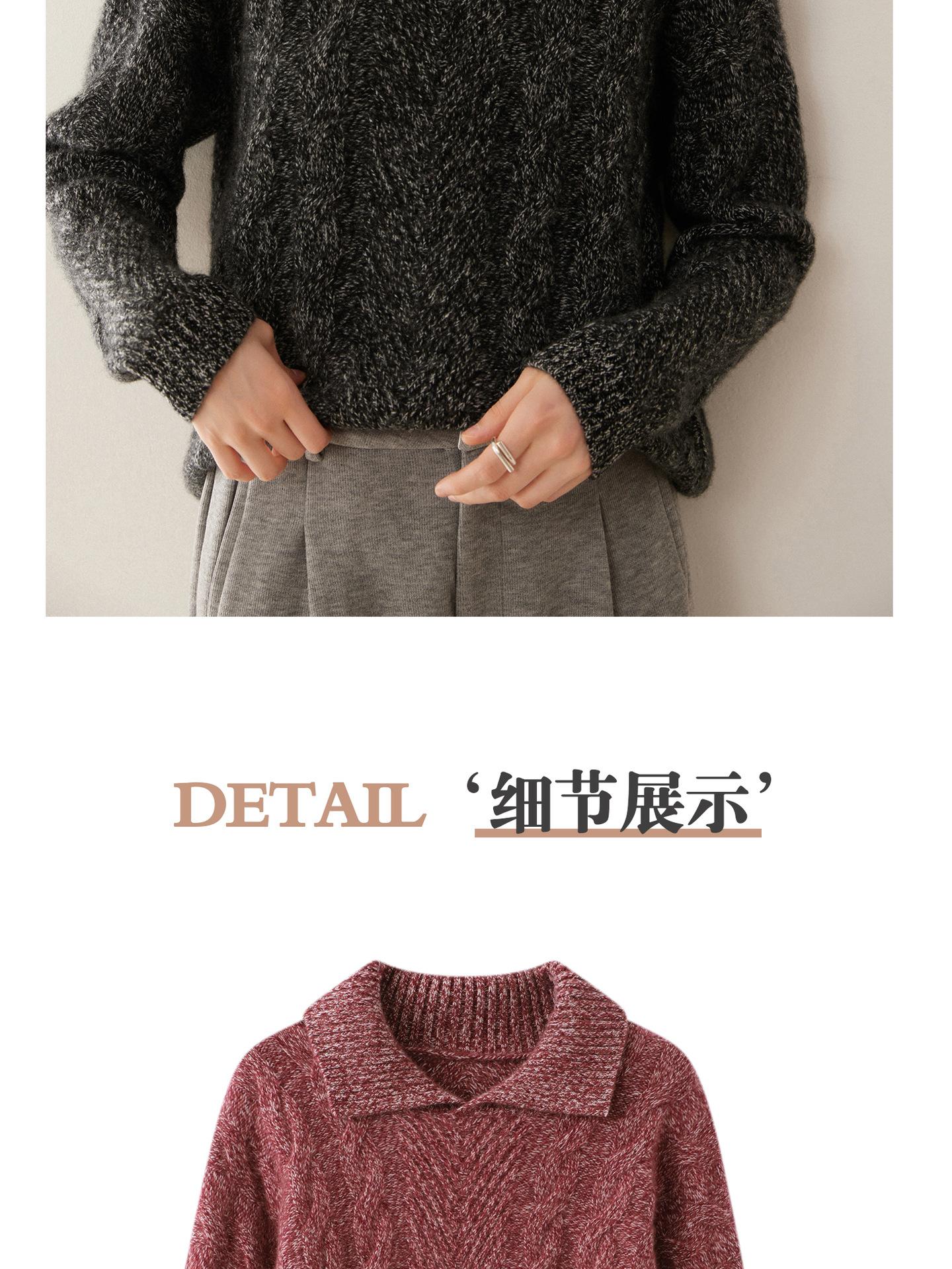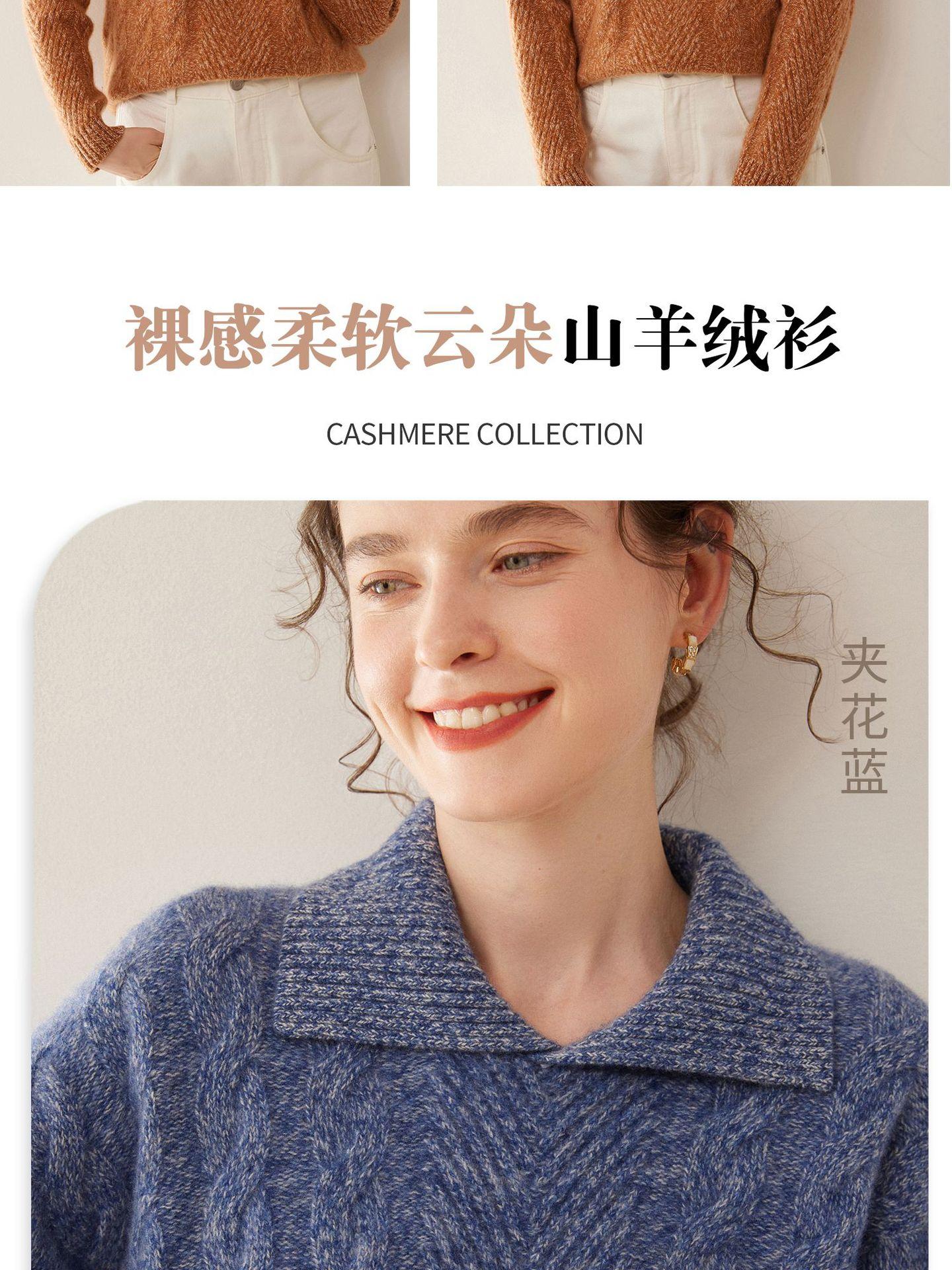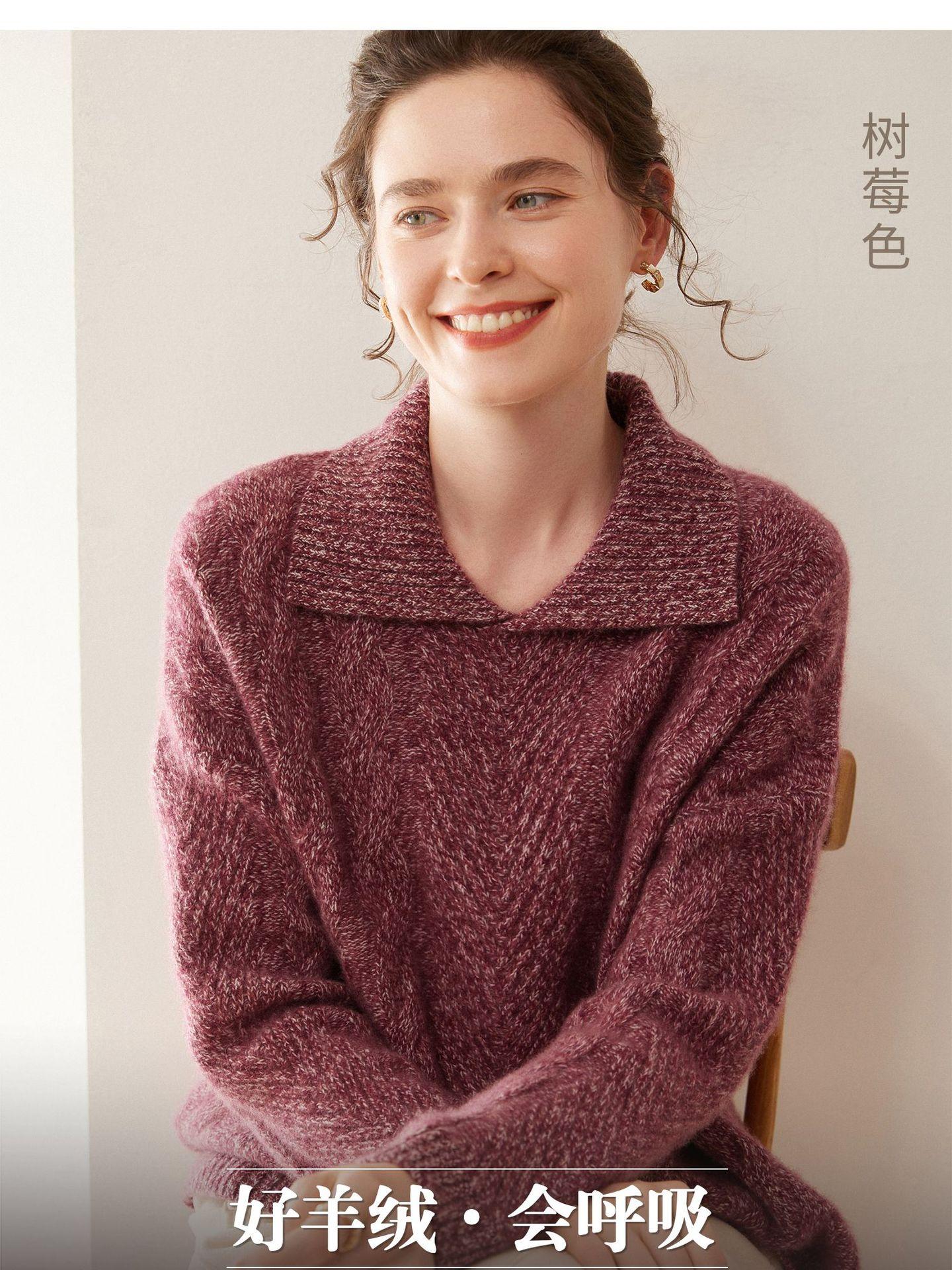 Suéter de cachemira de punto trenzado con cuello POLO engrosado de tres capas para mujer, suéter holgado de solapa grande, suéter de punto, camisa básica de capa interior