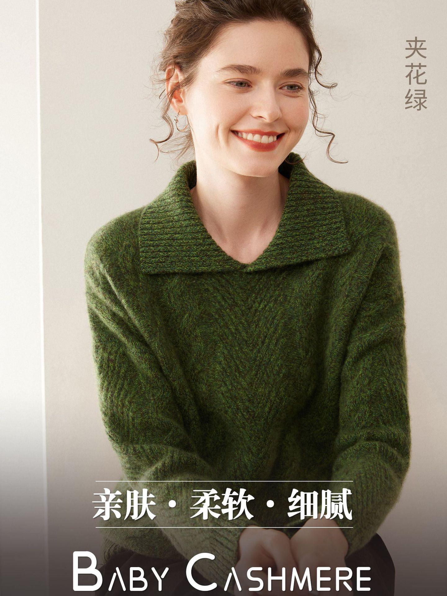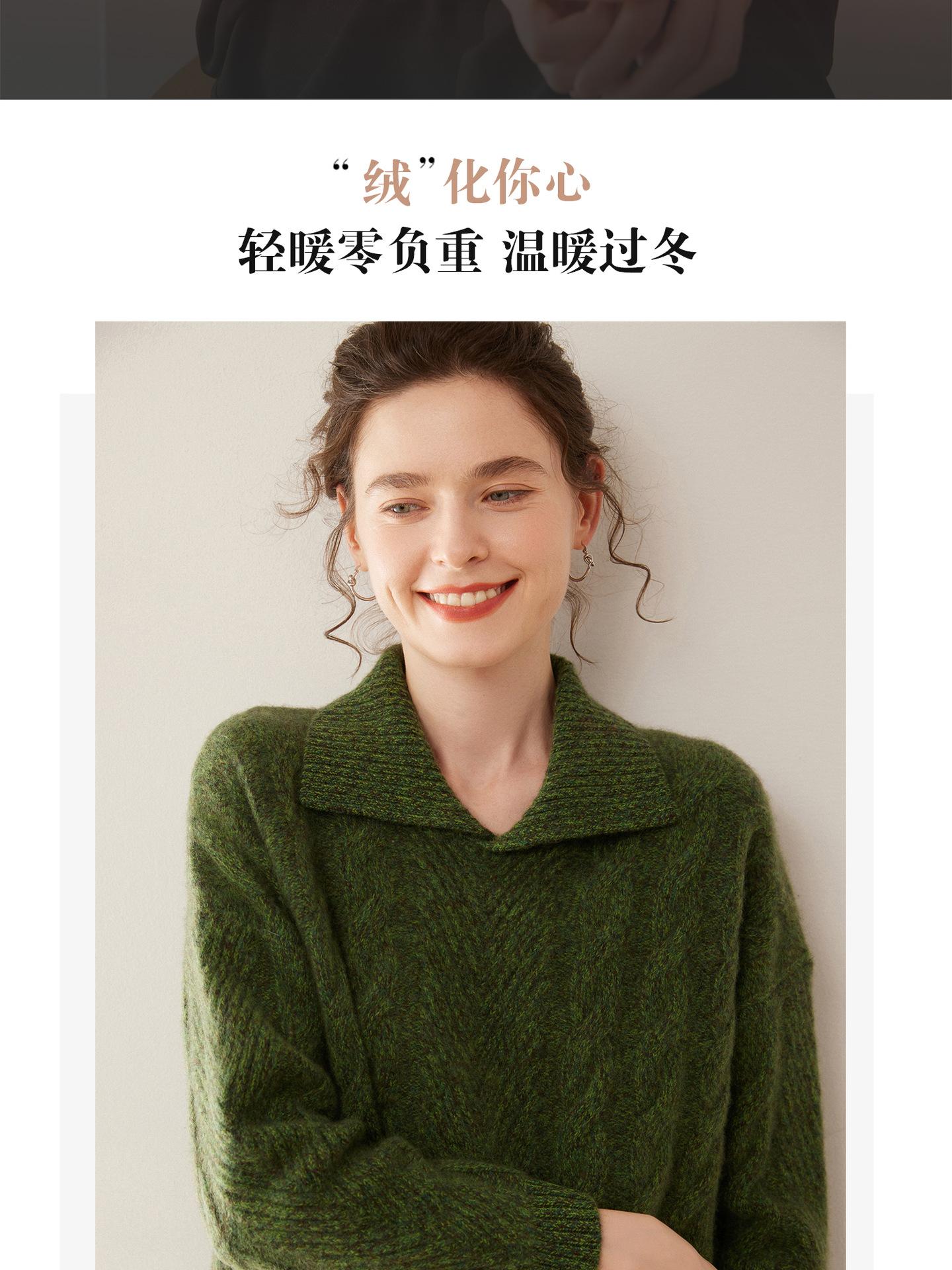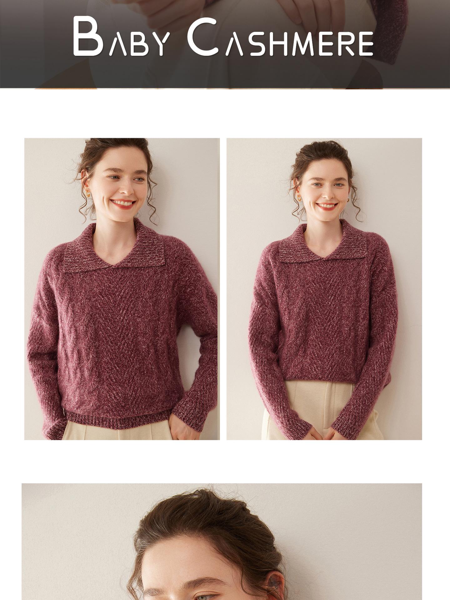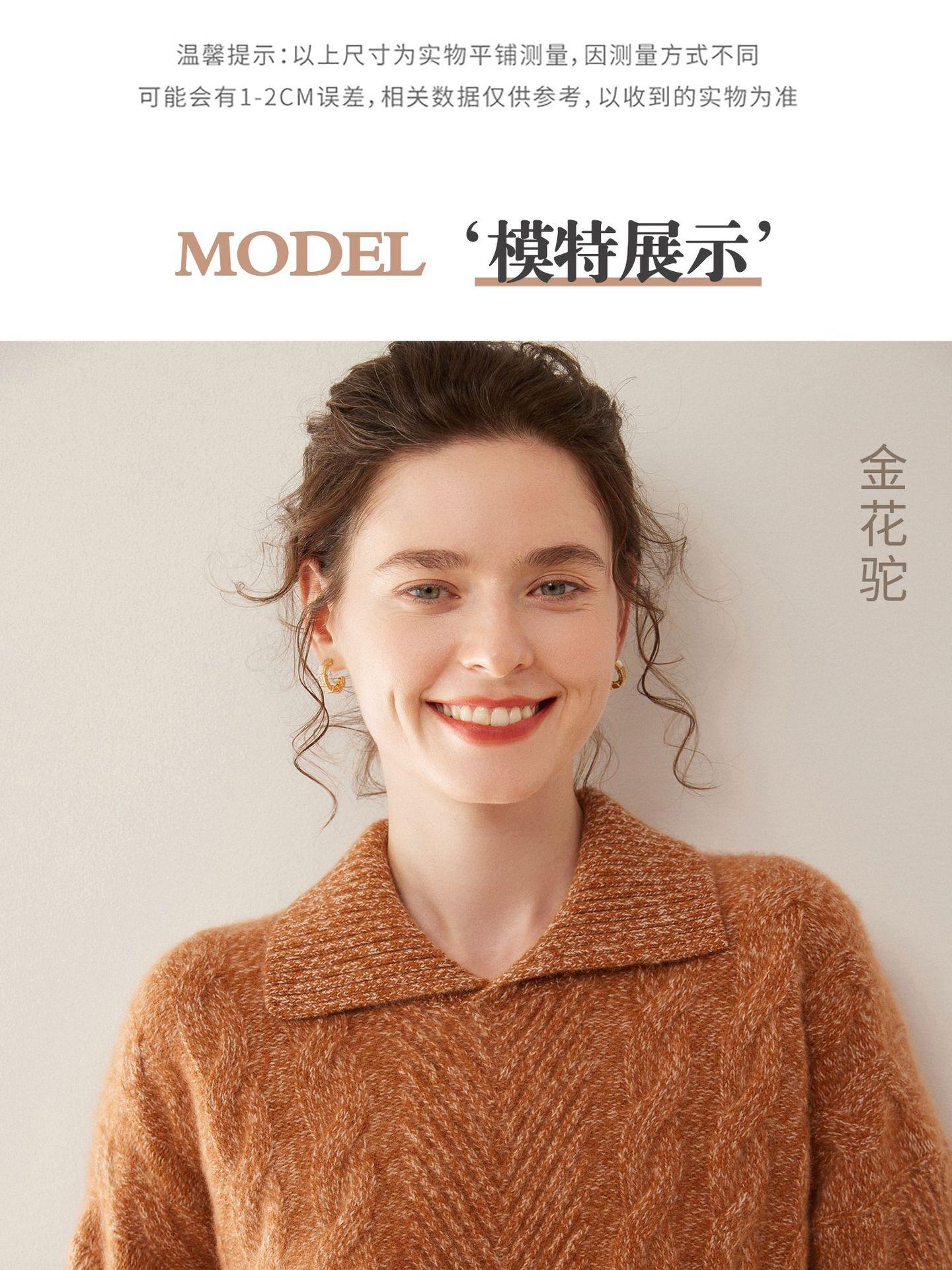 Suéter de cachemira de punto trenzado con cuello POLO engrosado de tres capas para mujer, suéter holgado de solapa grande, suéter de punto, camisa básica de capa interior
