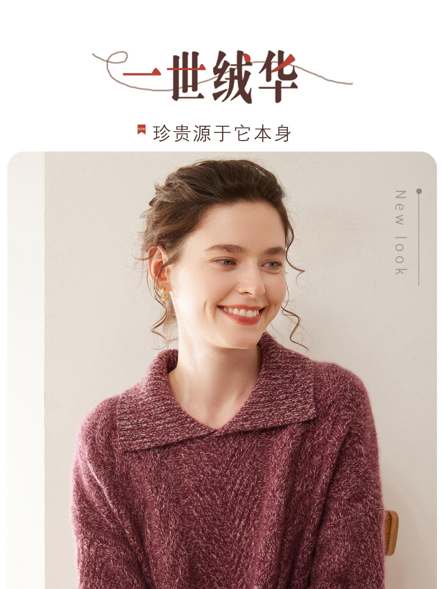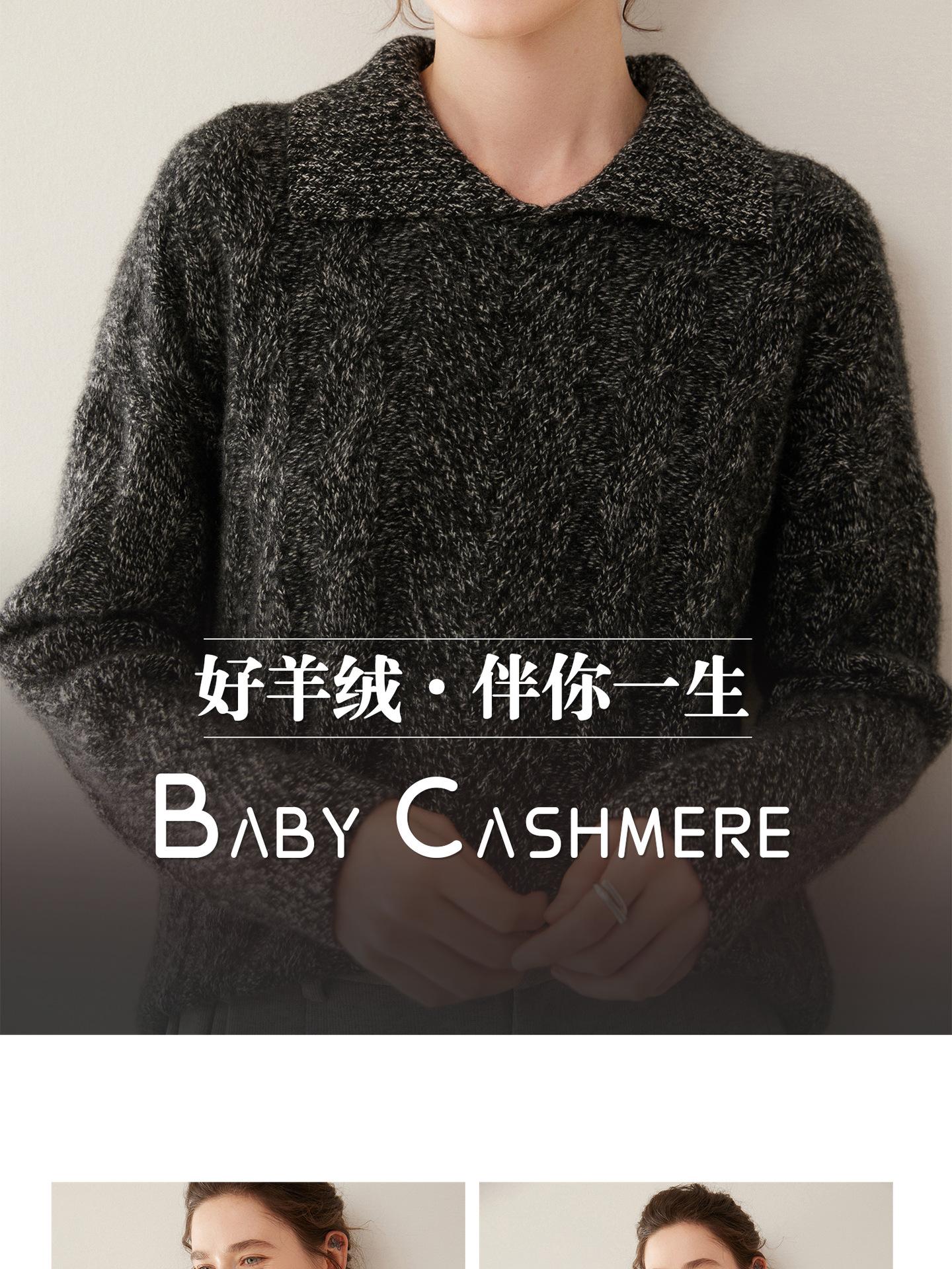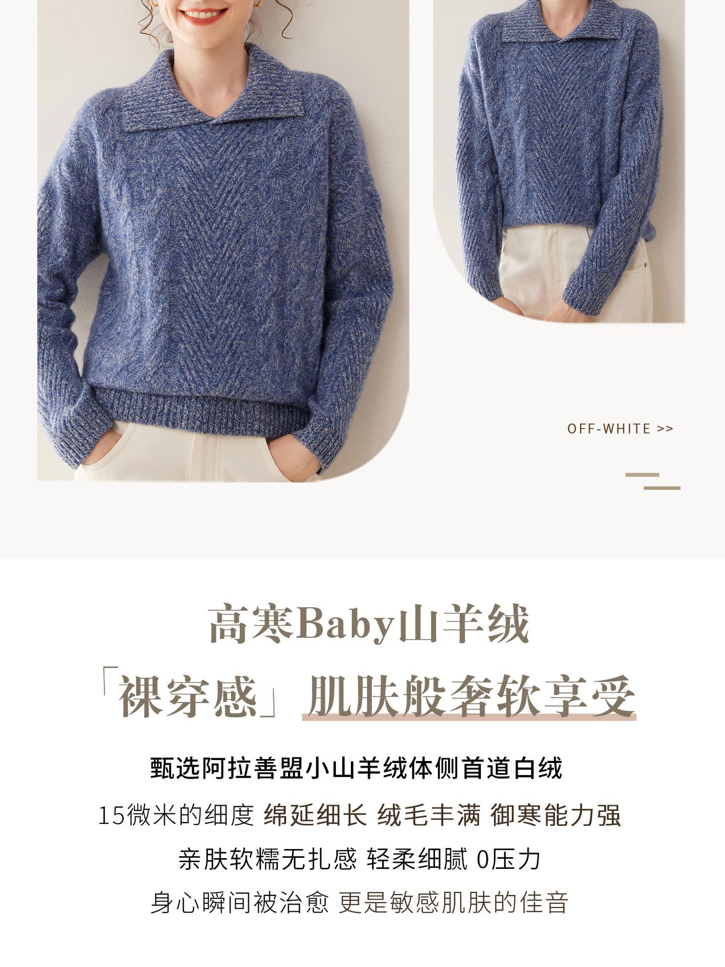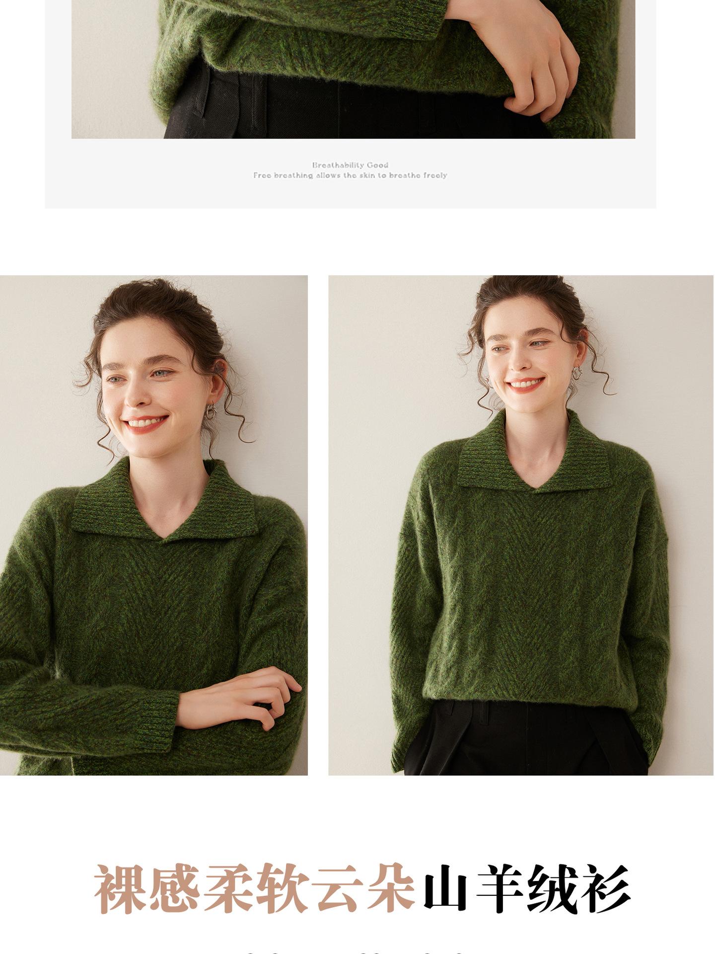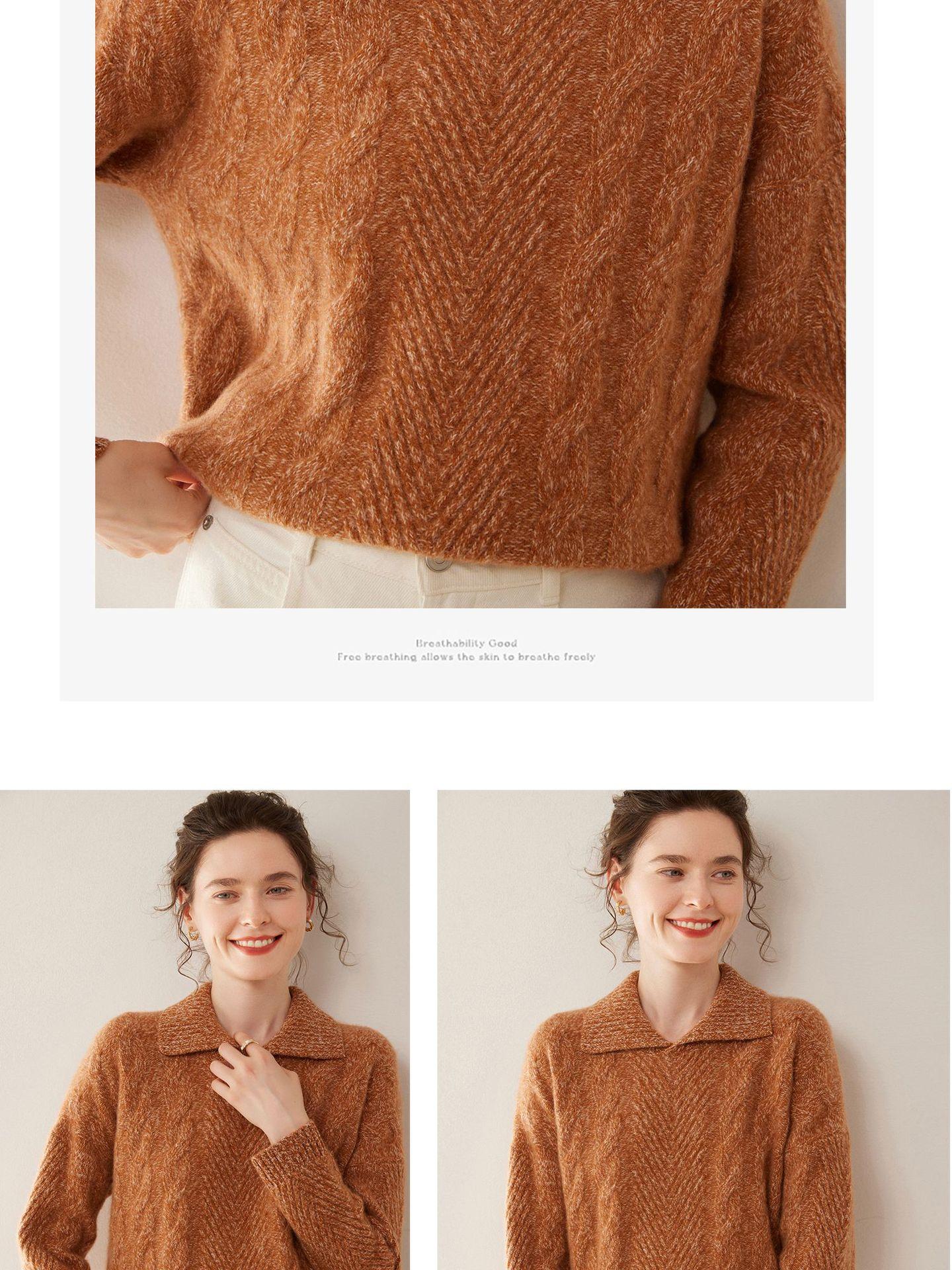 Suéter de cachemira de punto trenzado con cuello POLO engrosado de tres capas para mujer, suéter holgado de solapa grande, suéter de punto, camisa básica de capa interior