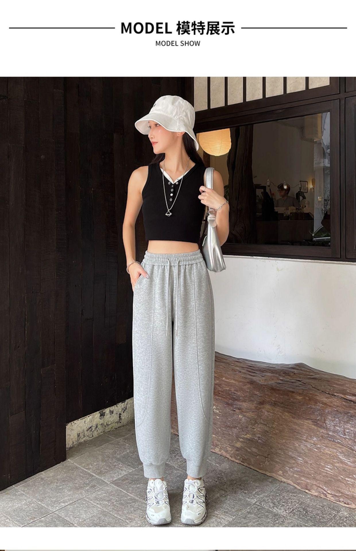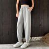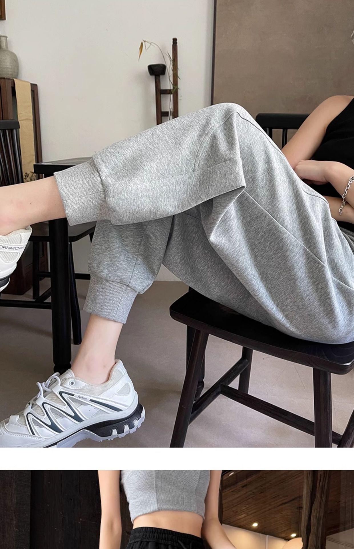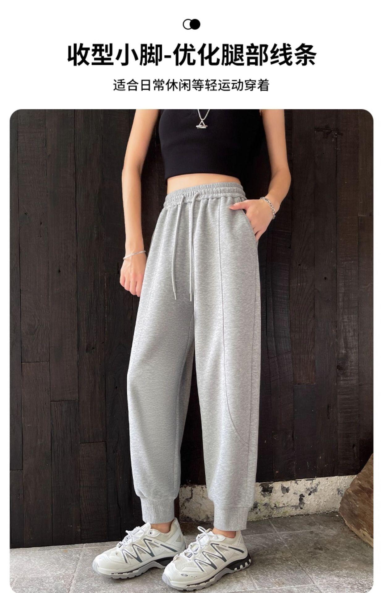 Pantalones deportivos grises de nueve puntos para mujer, cintura alta, joggers casuales, verano, delgados, nuevos 2025, harén, ajustados, pantalones de chándal