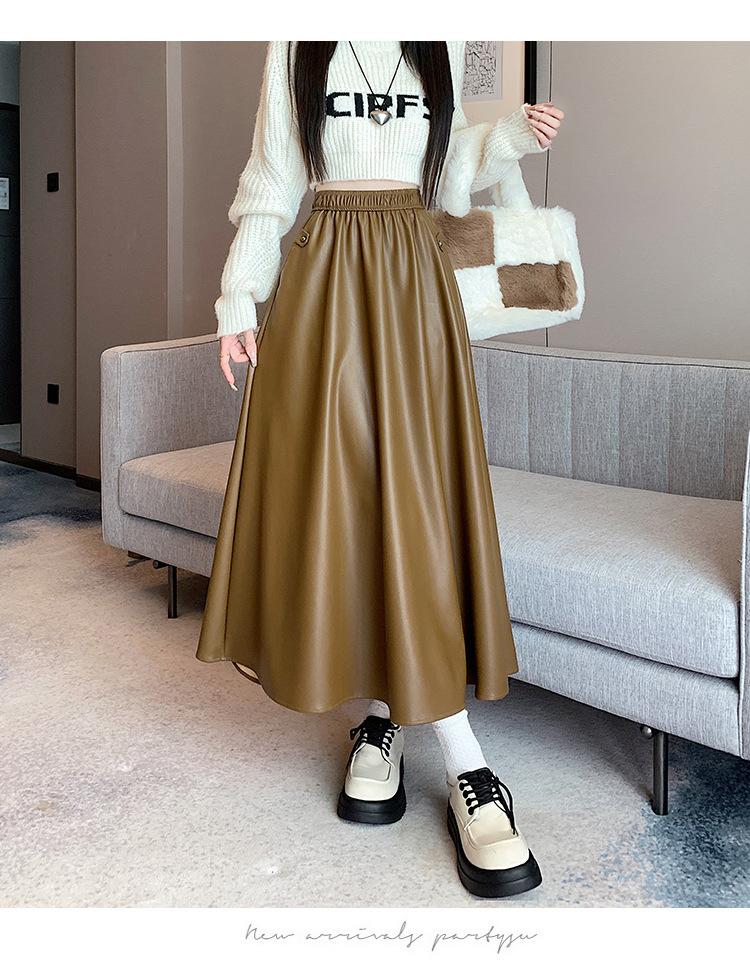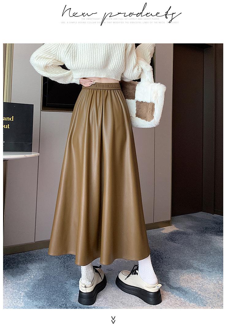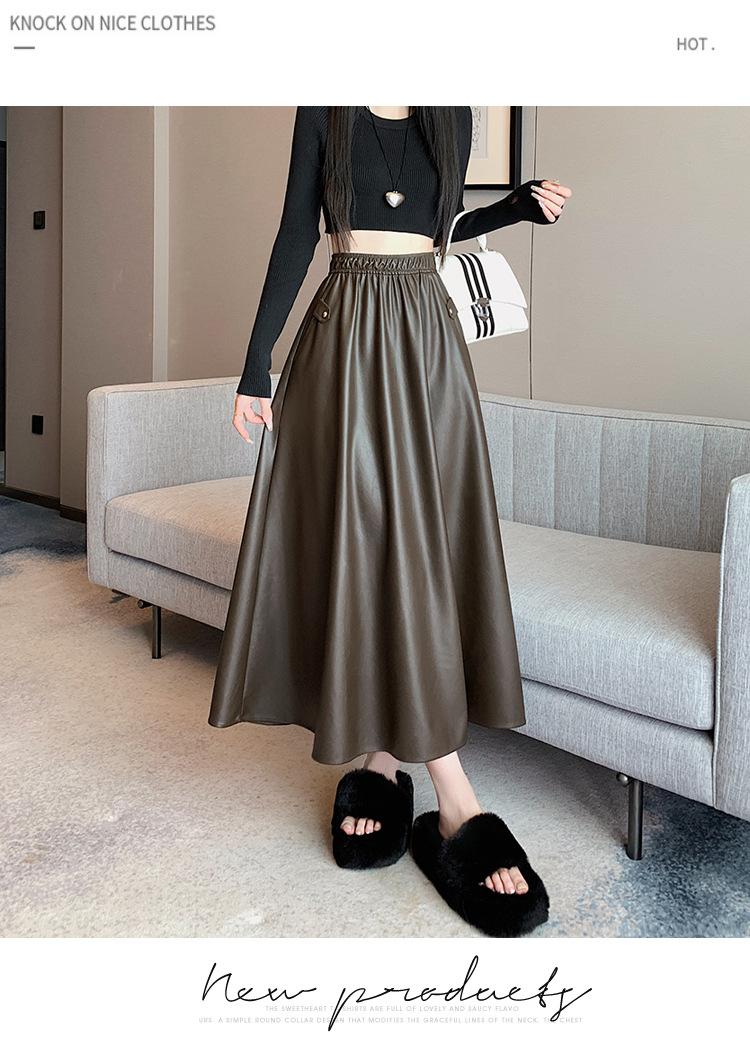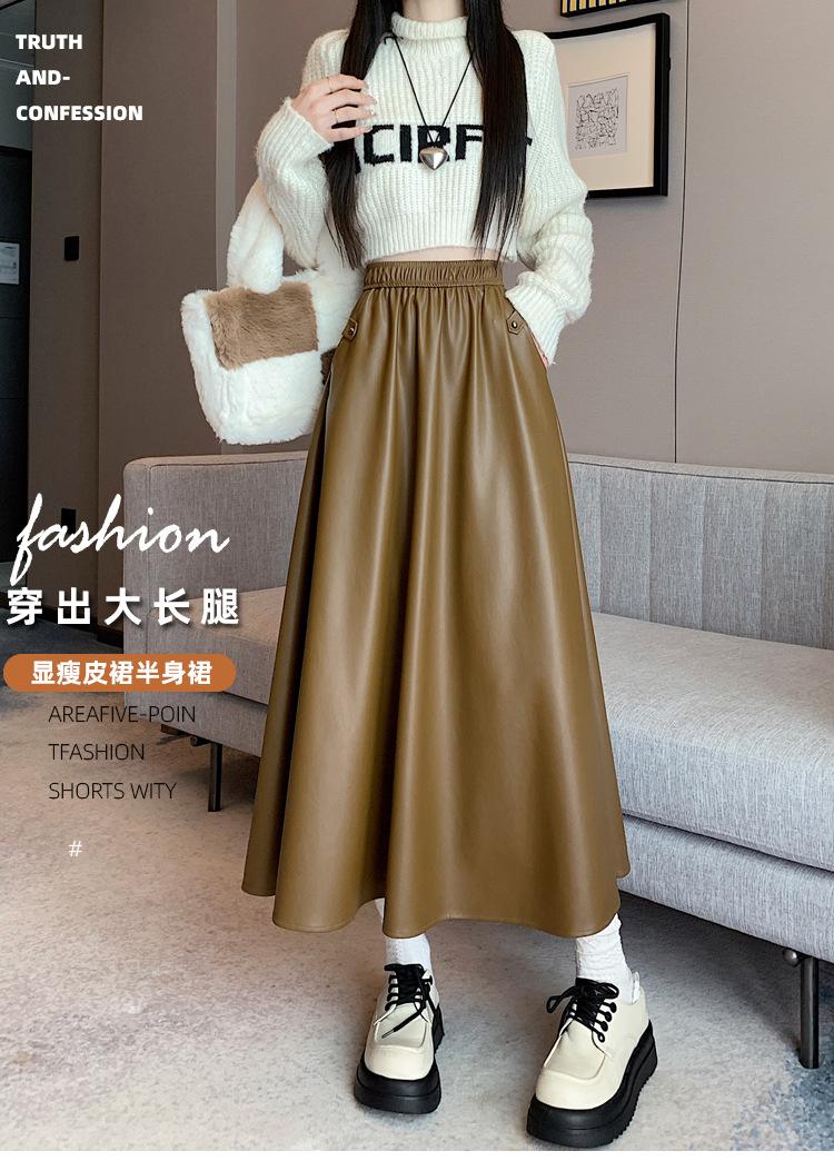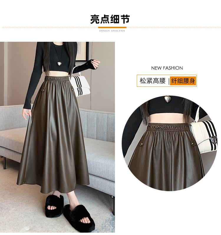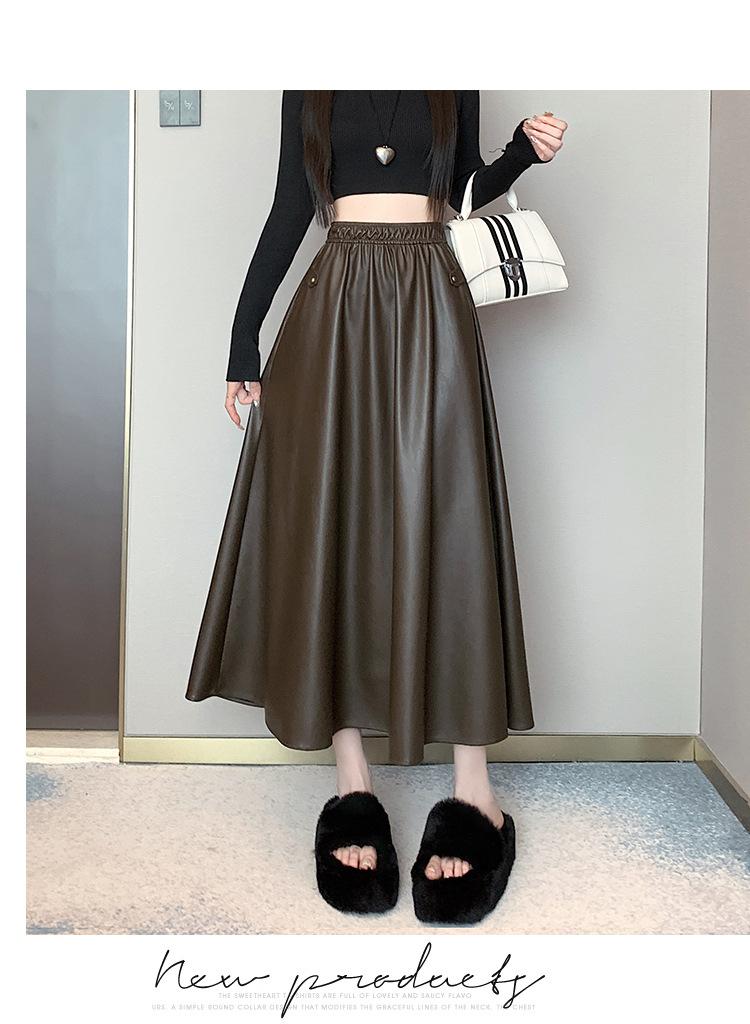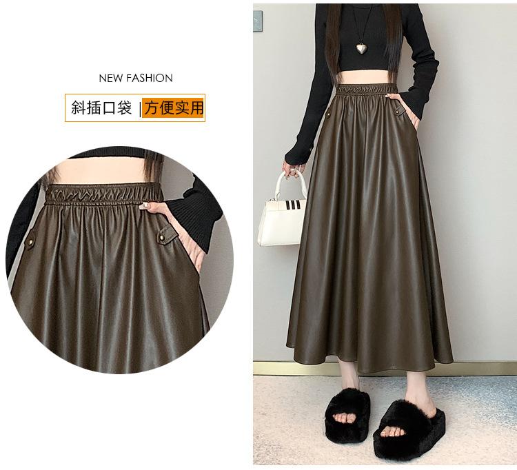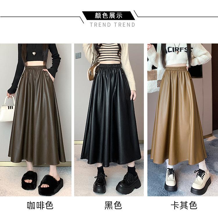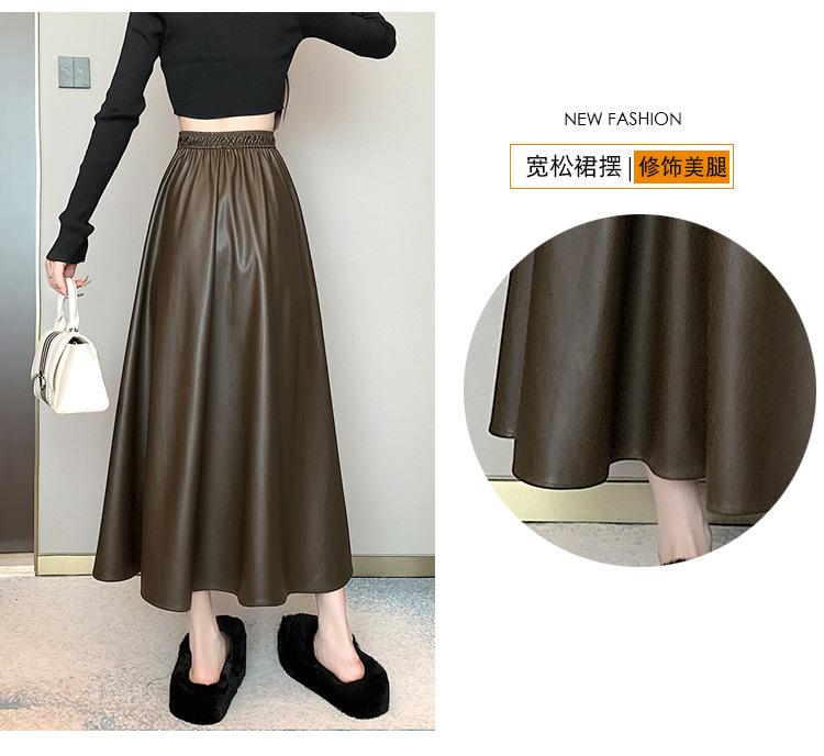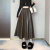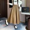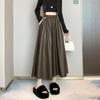 2025 Otoño Nuevo Ropa de Mujer Cintura Elástica Versátil Adelgazante Cubre Caderas Largo Medio Línea A Dobladillo Amplio Media Falda para Mujer A6309