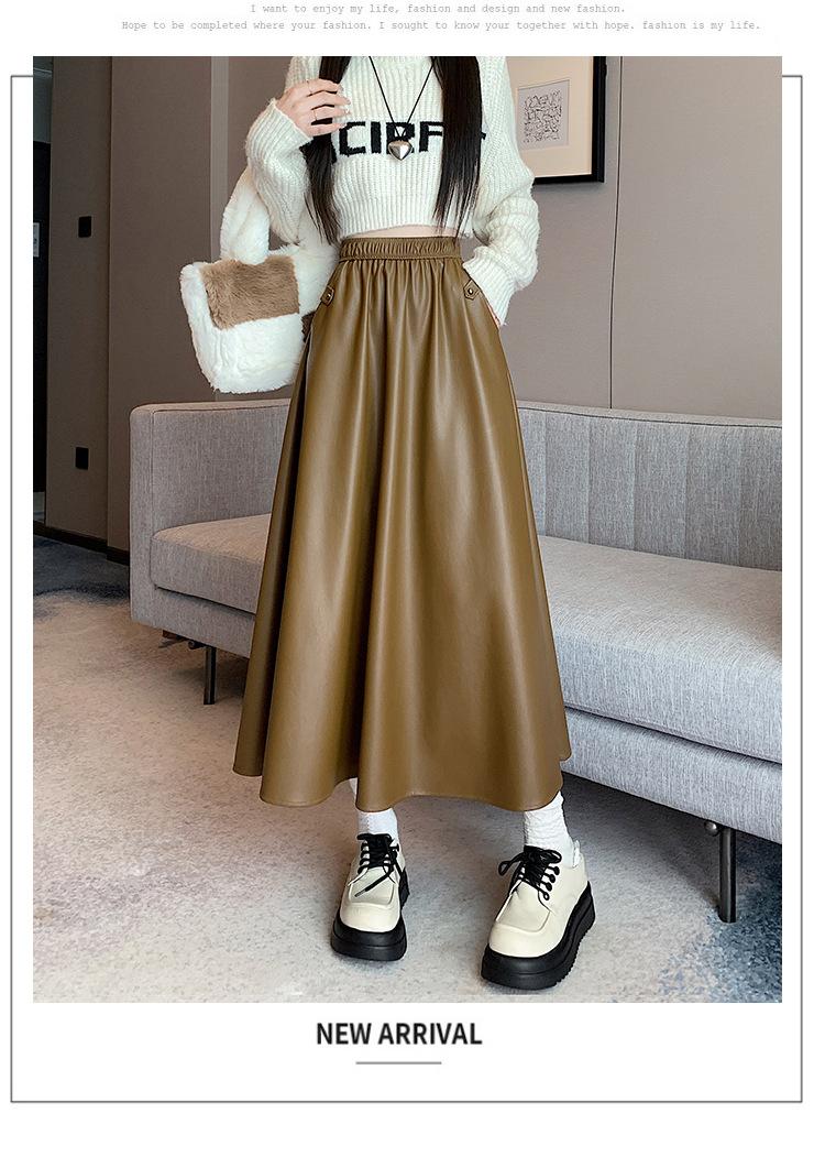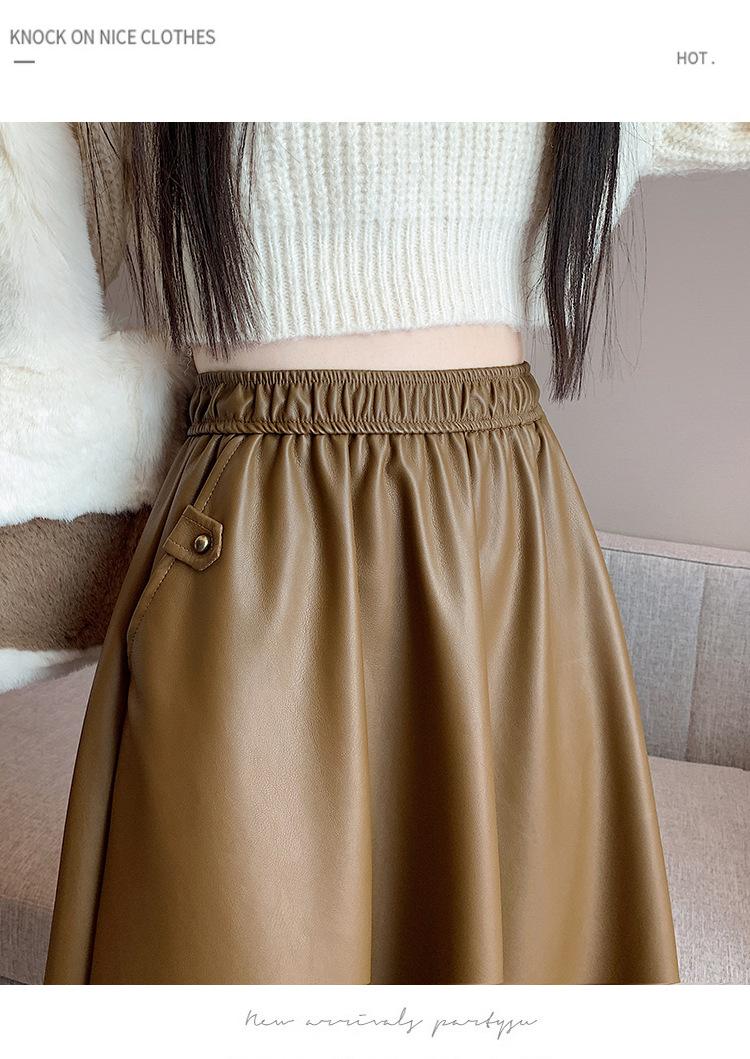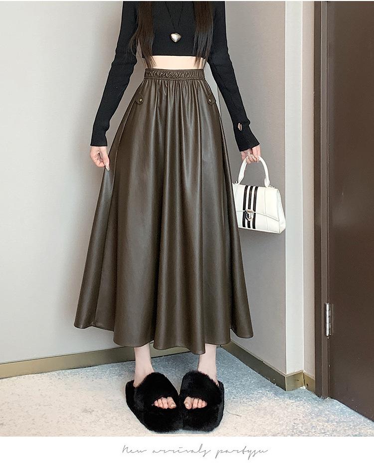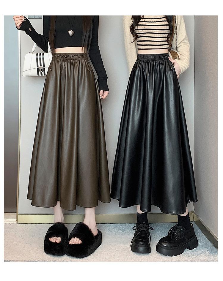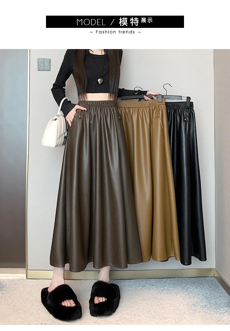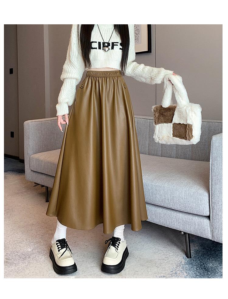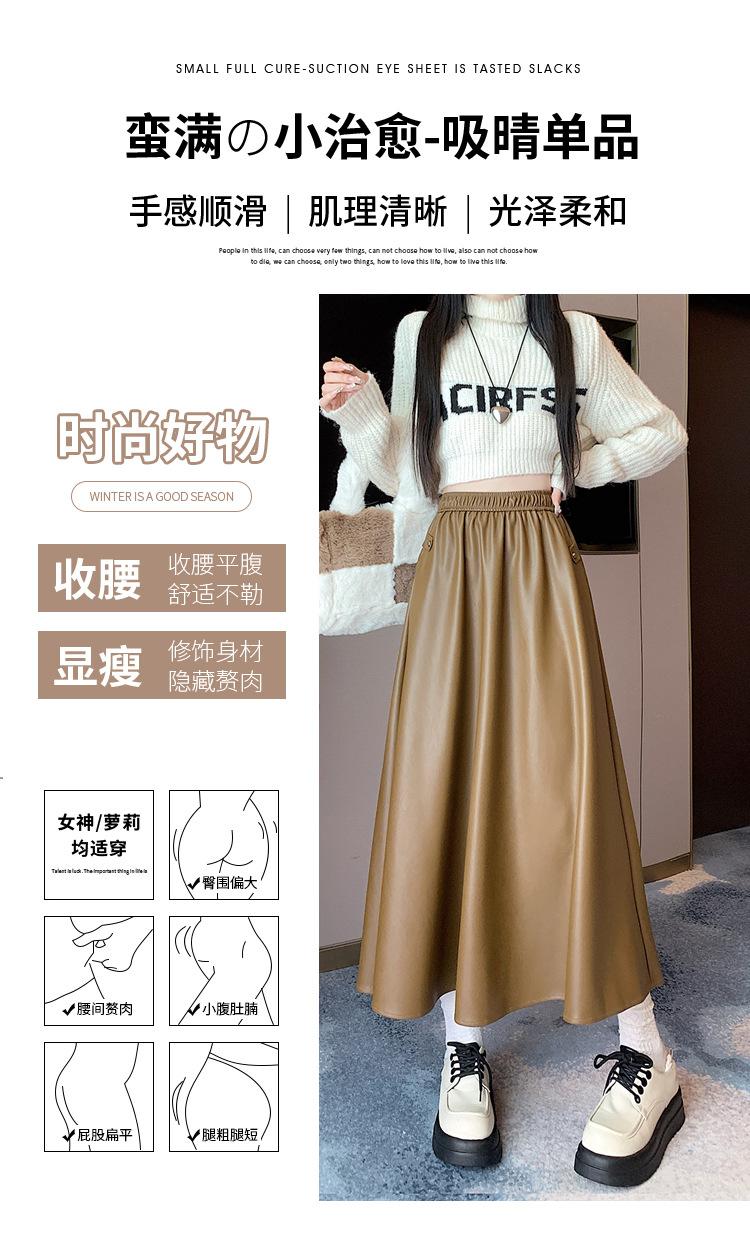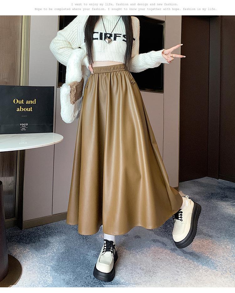 2025 Otoño Nuevo Ropa de Mujer Cintura Elástica Versátil Adelgazante Cubre Caderas Largo Medio Línea A Dobladillo Amplio Media Falda para Mujer A6309
