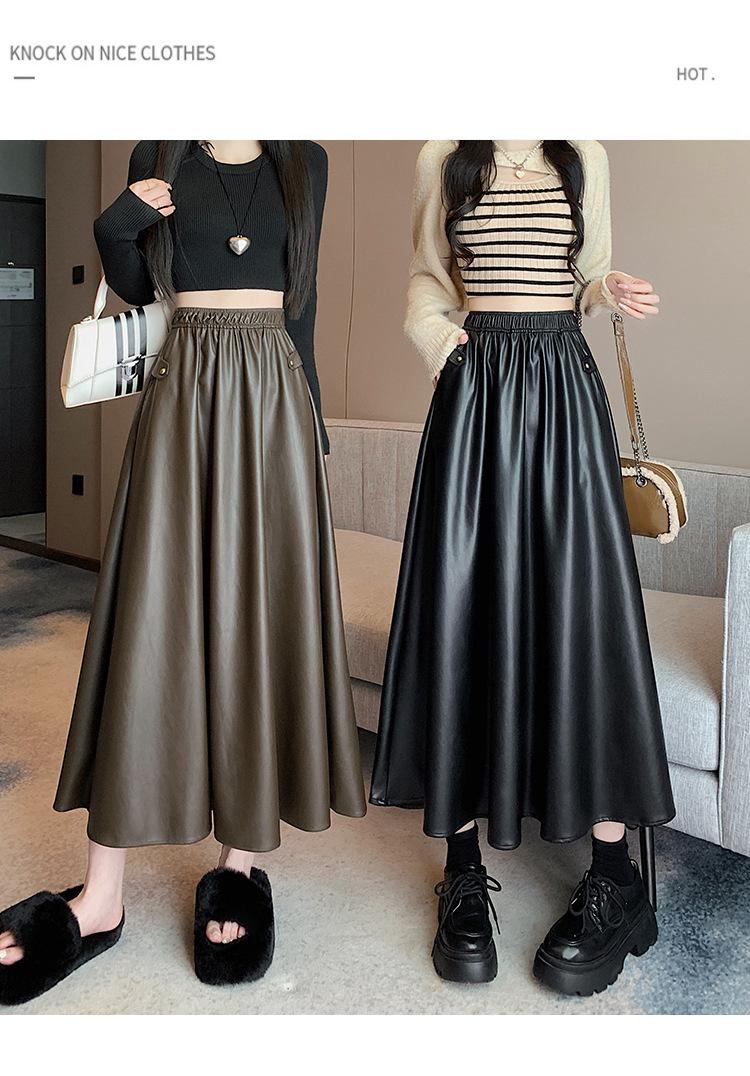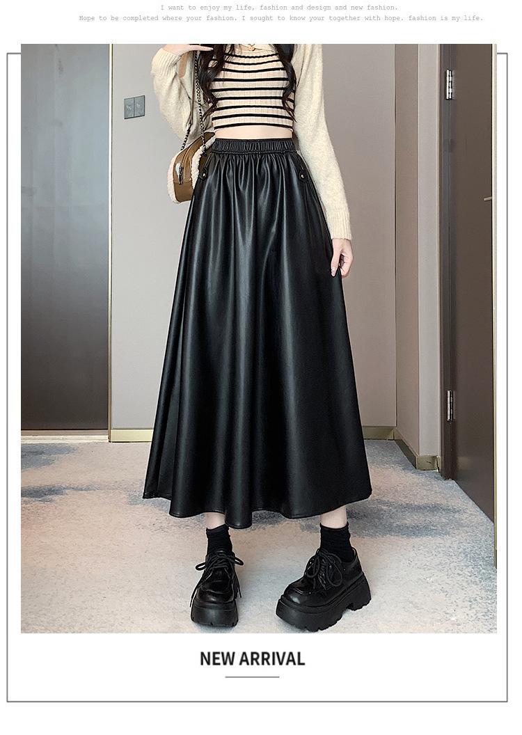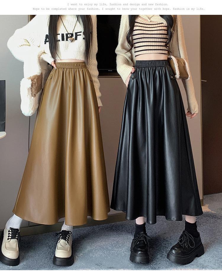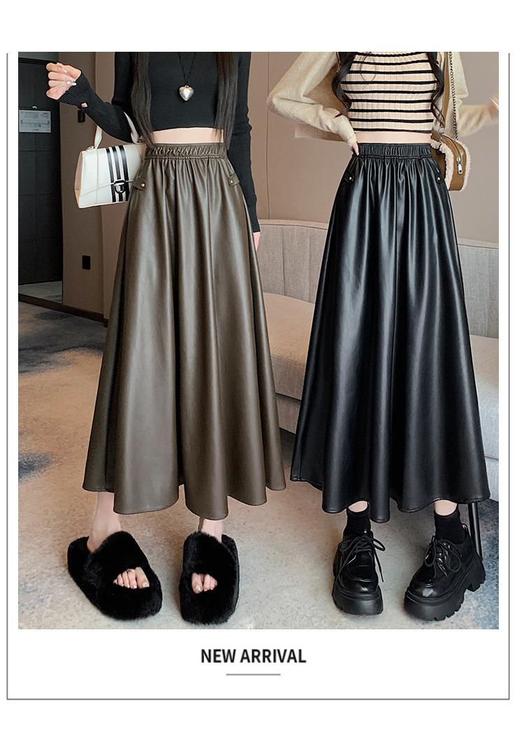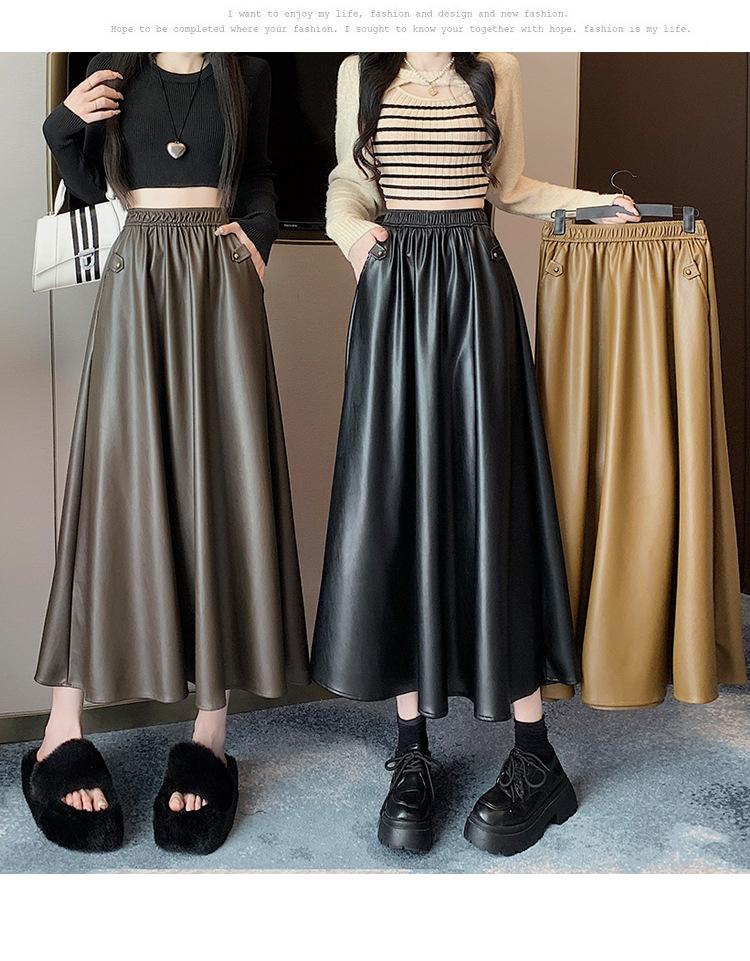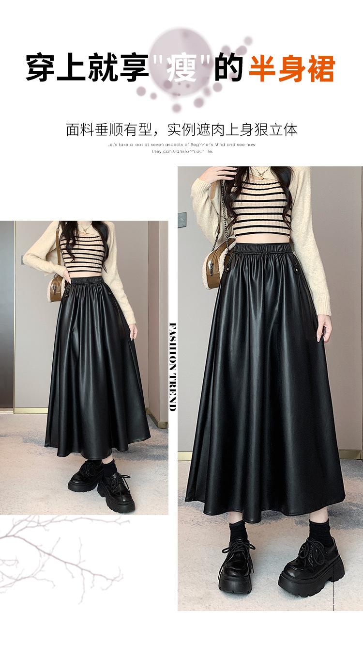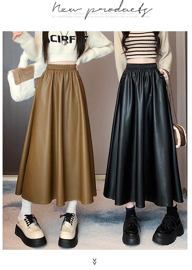 2025 Otoño Nuevo Ropa de Mujer Cintura Elástica Versátil Adelgazante Cubre Caderas Largo Medio Línea A Dobladillo Amplio Media Falda para Mujer A6309