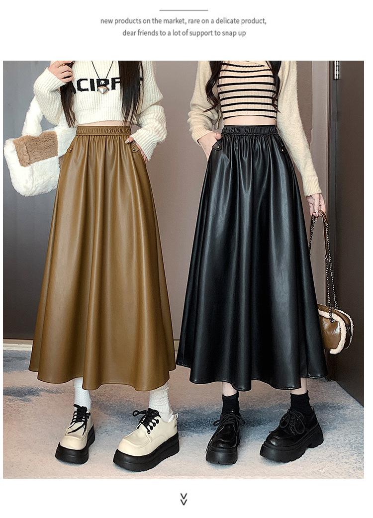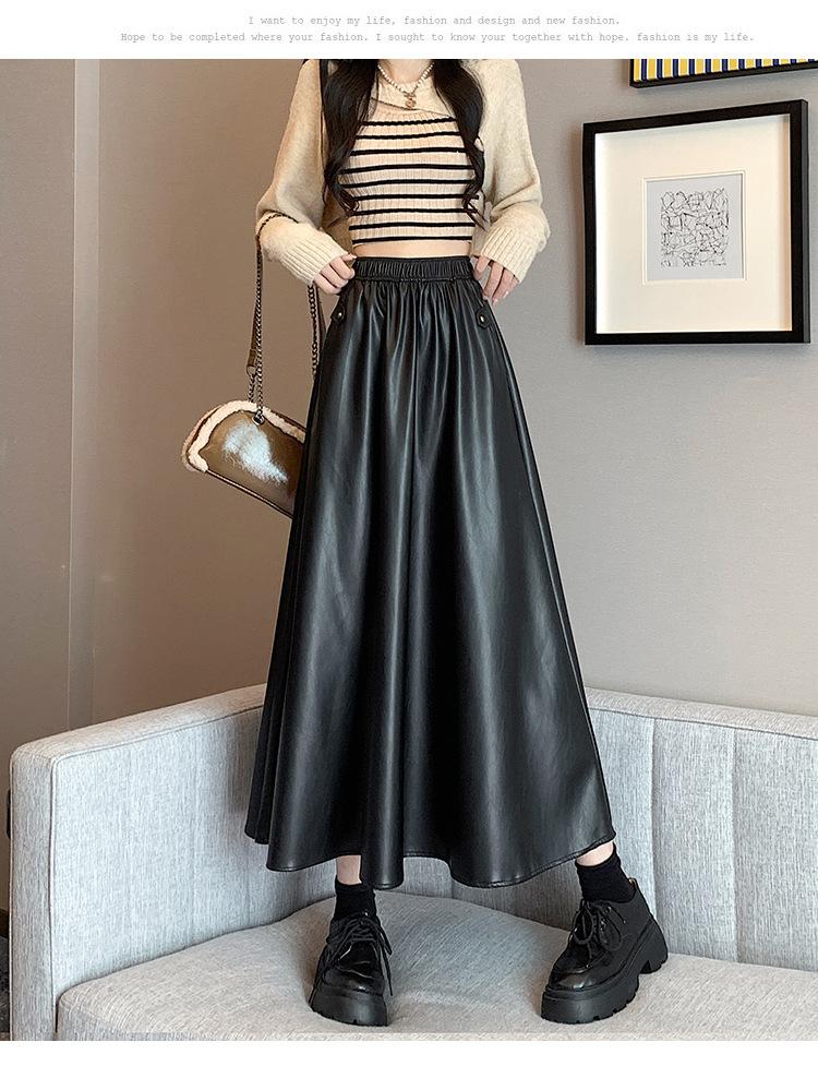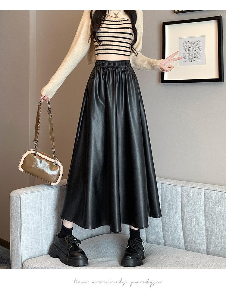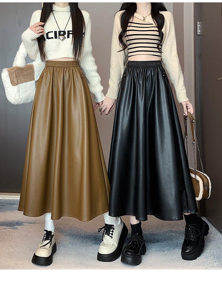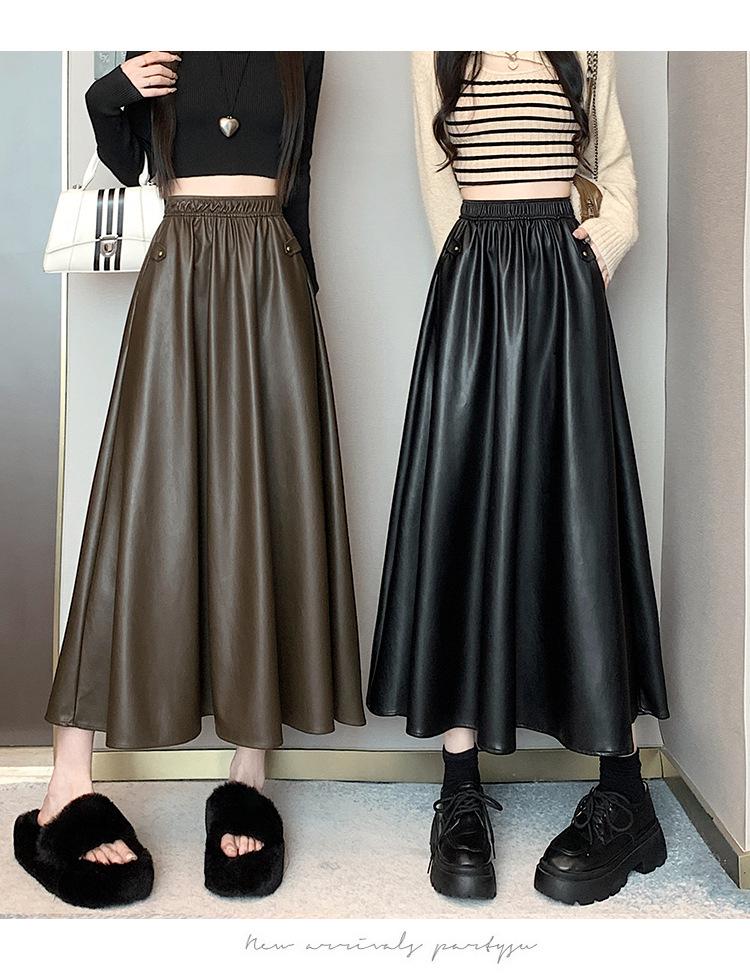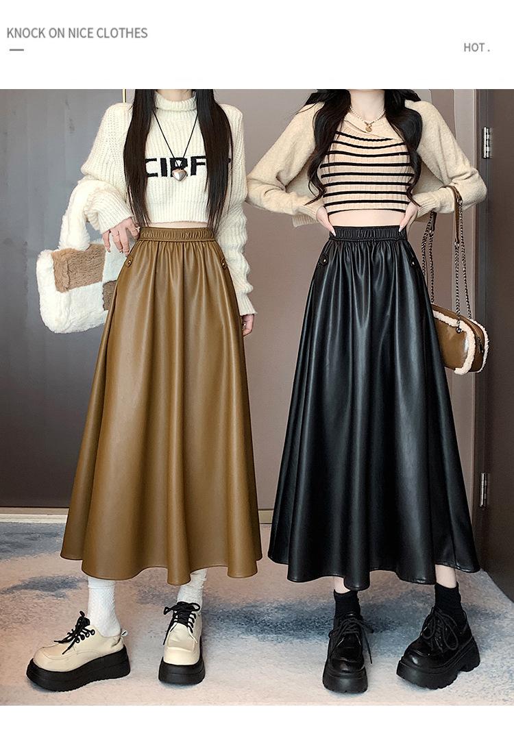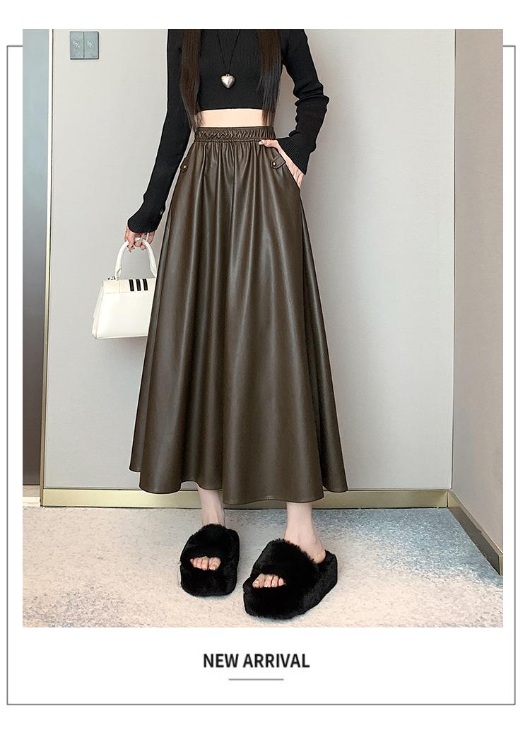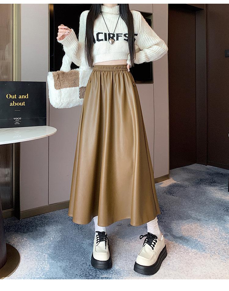 2025 Otoño Nuevo Ropa de Mujer Cintura Elástica Versátil Adelgazante Cubre Caderas Largo Medio Línea A Dobladillo Amplio Media Falda para Mujer A6309