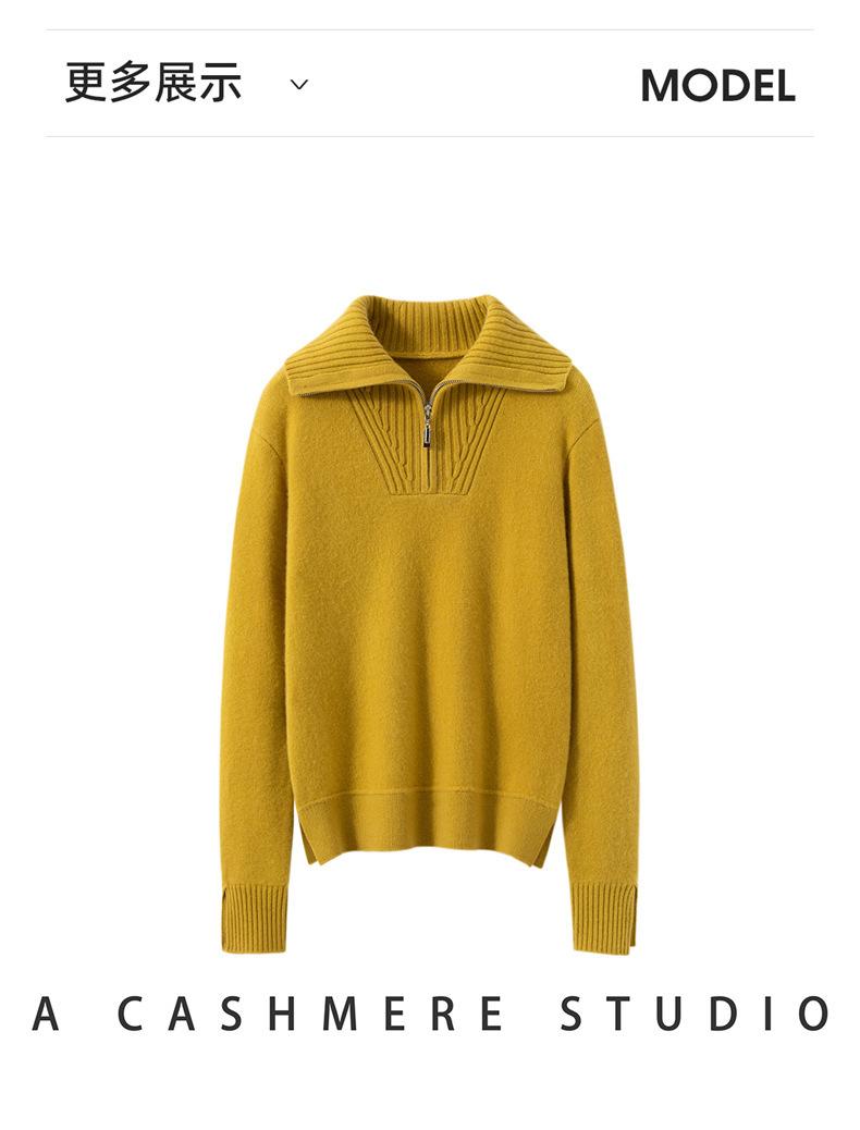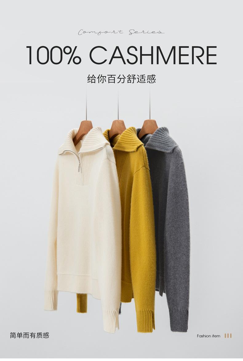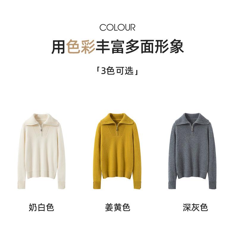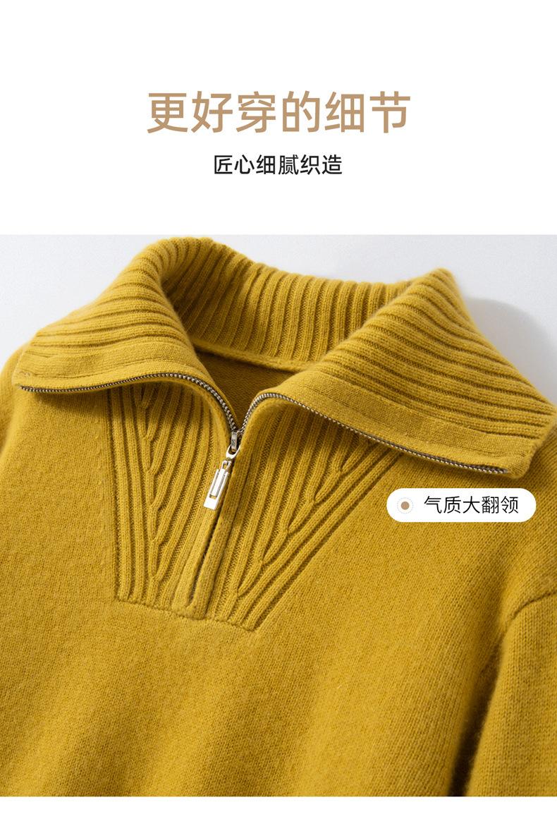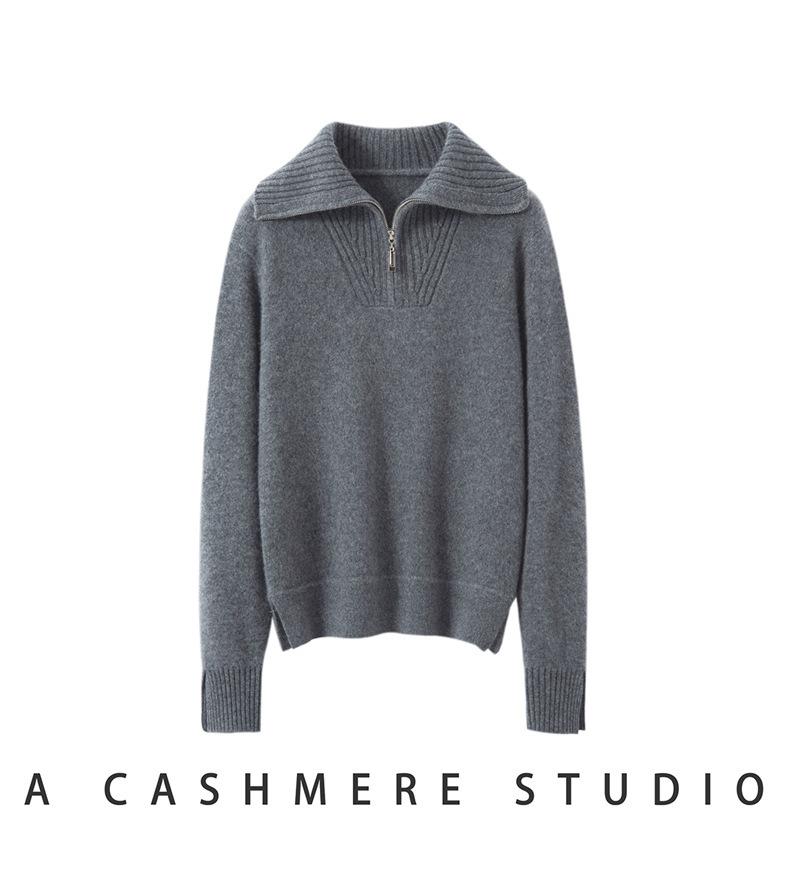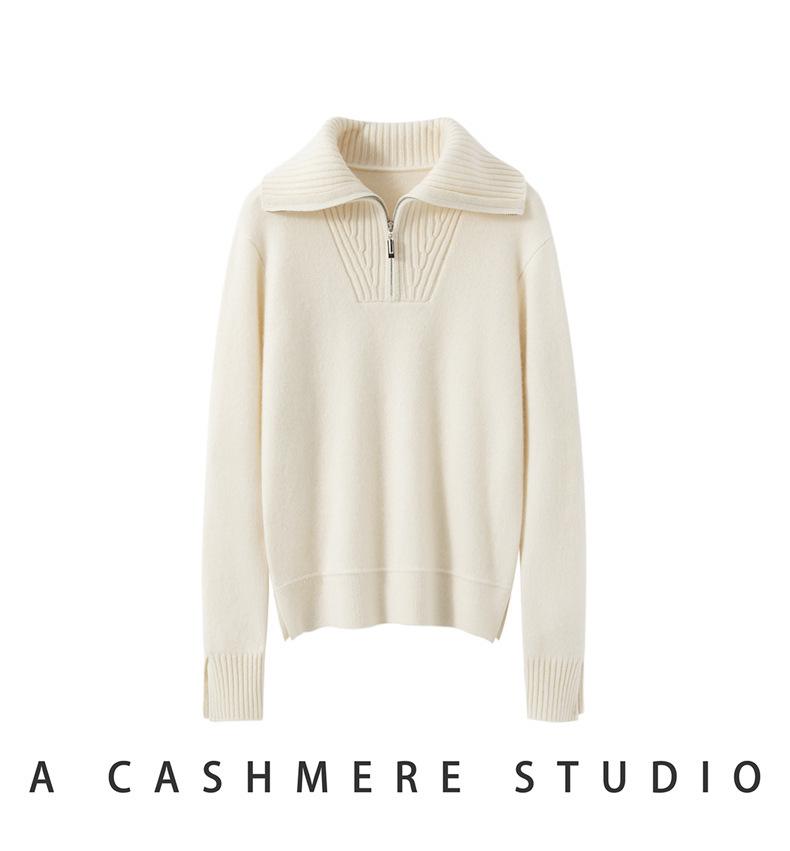 Suéter Nuevo de Otoño/Invierno con Solapa 100% Cachemira Pura para Mujer, Pulóver de Punto de Color Sólido con Media Cremallera, Suéter Básico