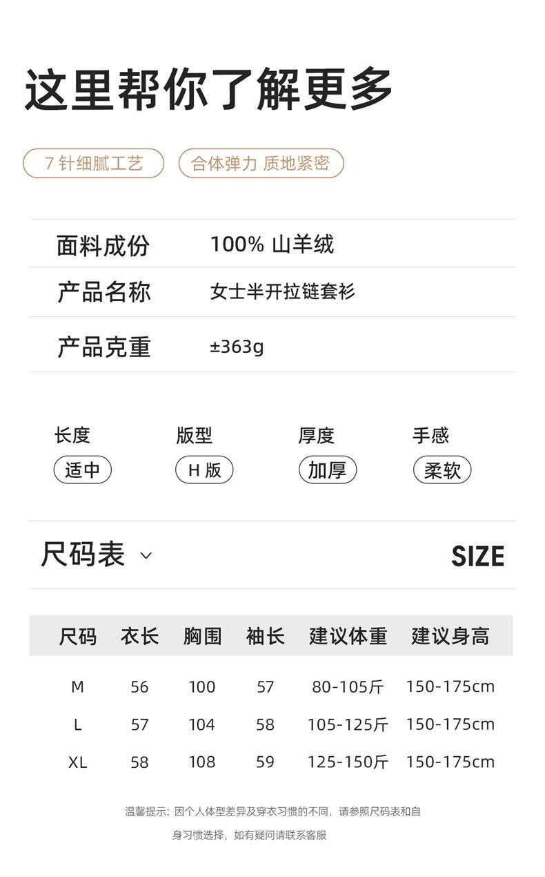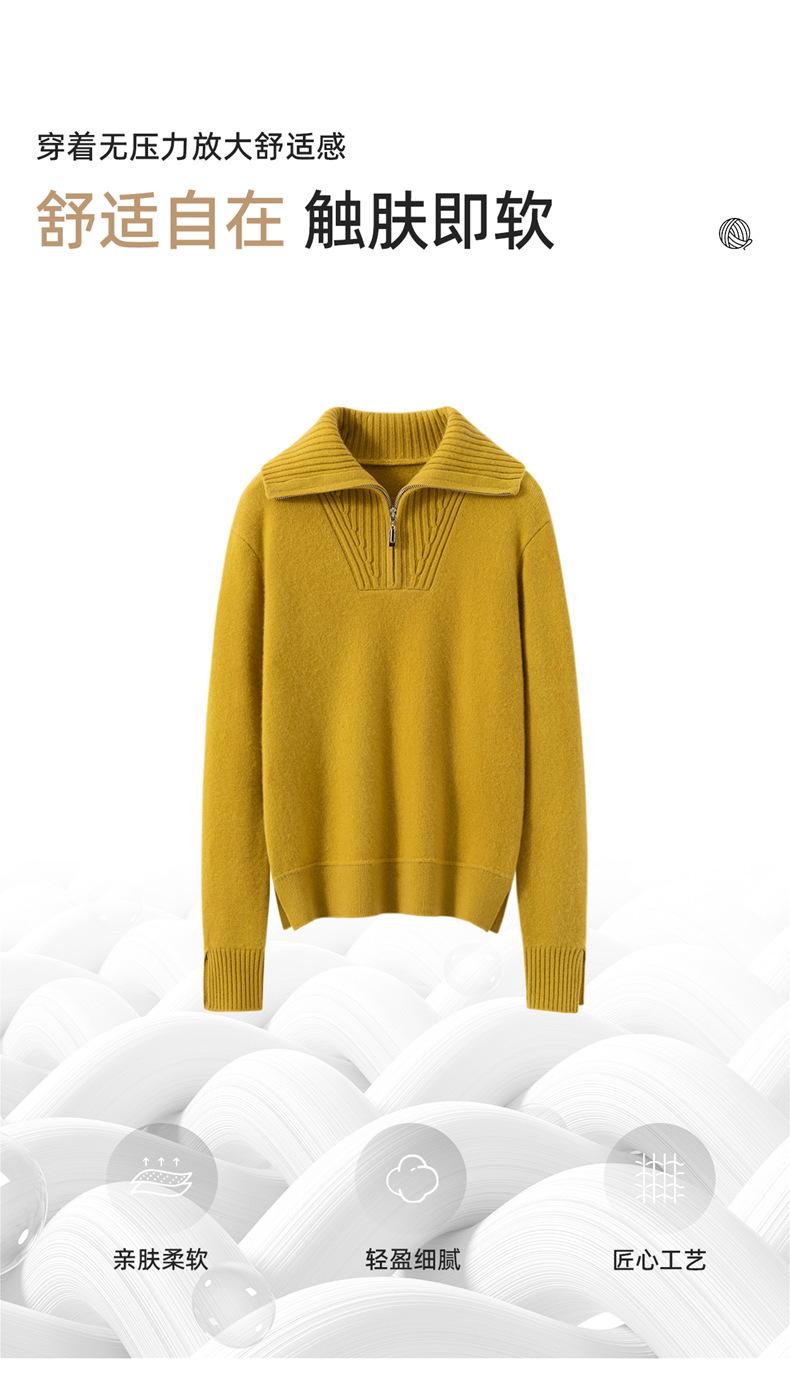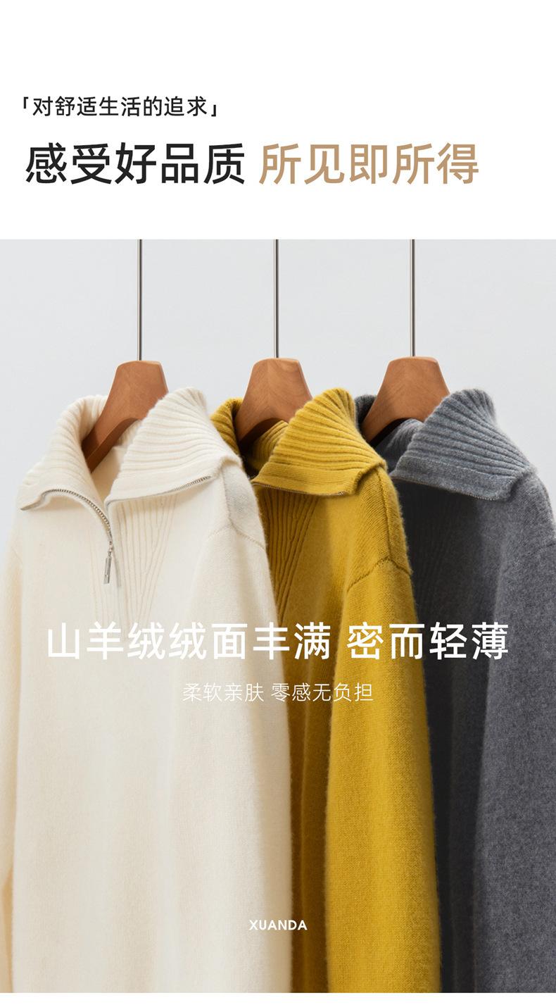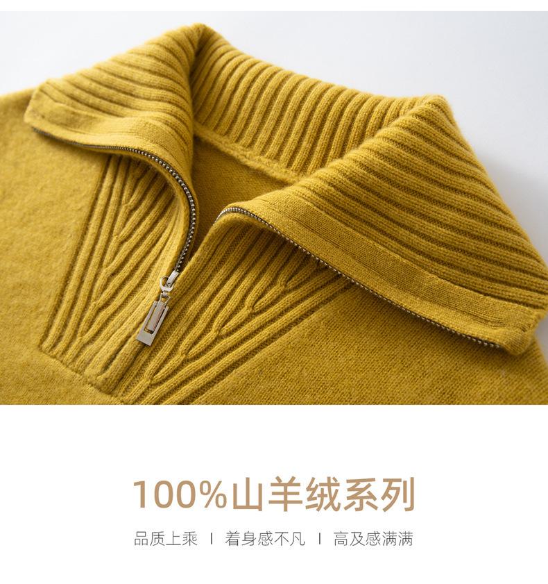 Suéter Nuevo de Otoño/Invierno con Solapa 100% Cachemira Pura para Mujer, Pulóver de Punto de Color Sólido con Media Cremallera, Suéter Básico