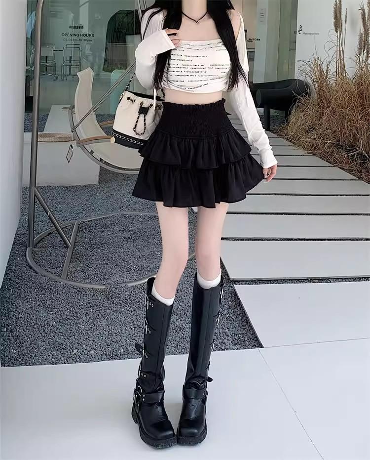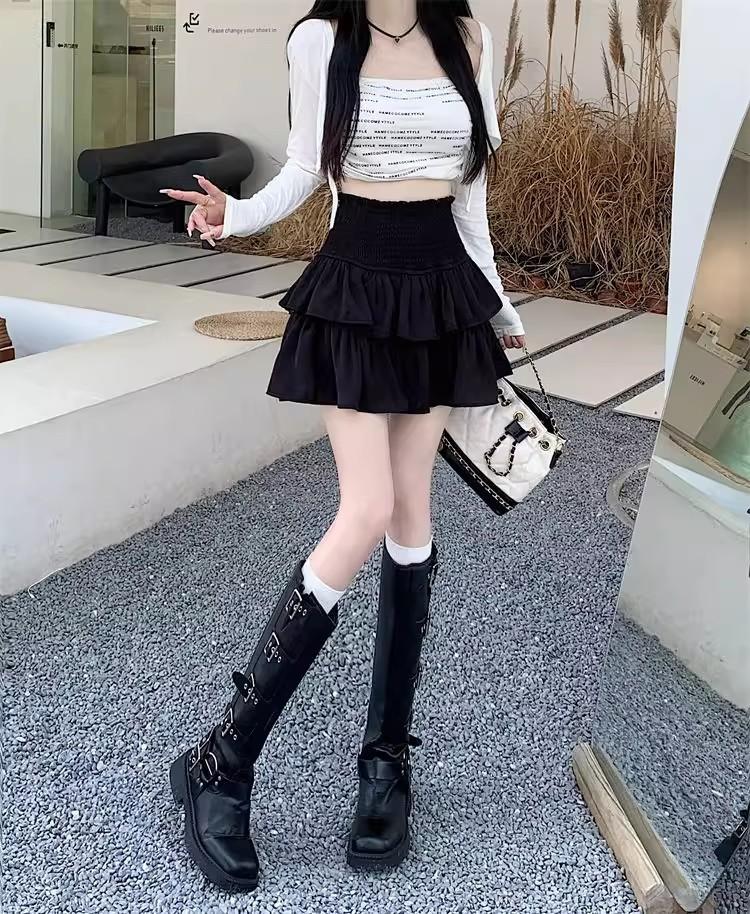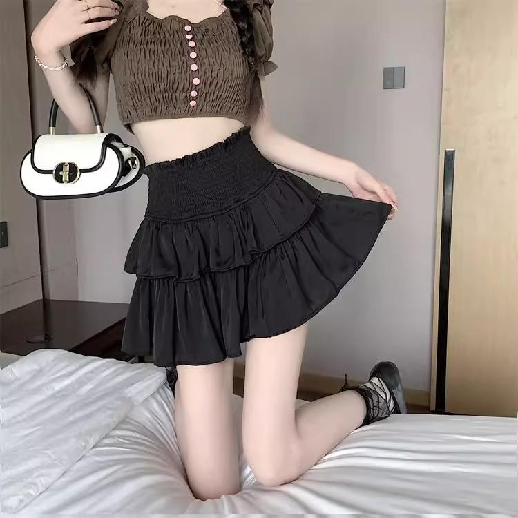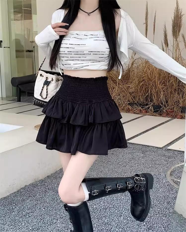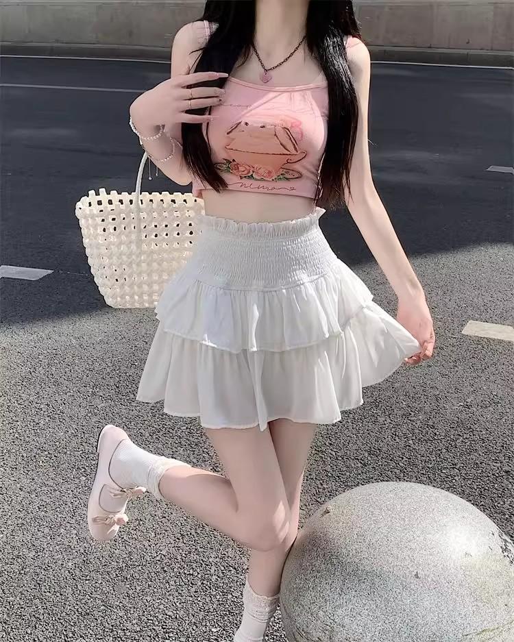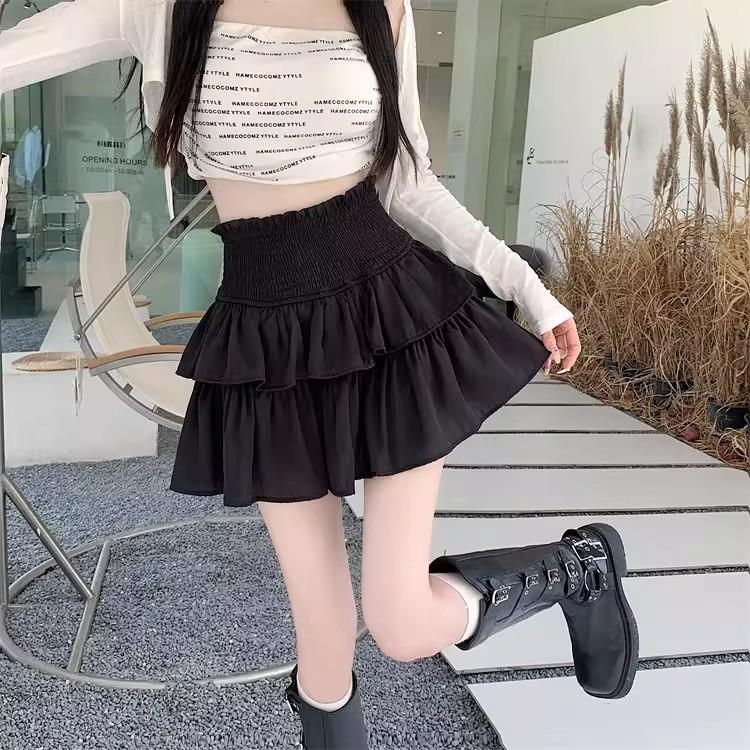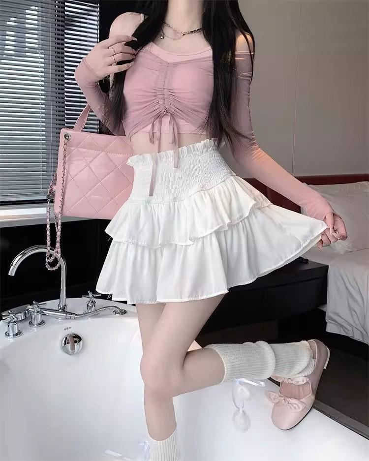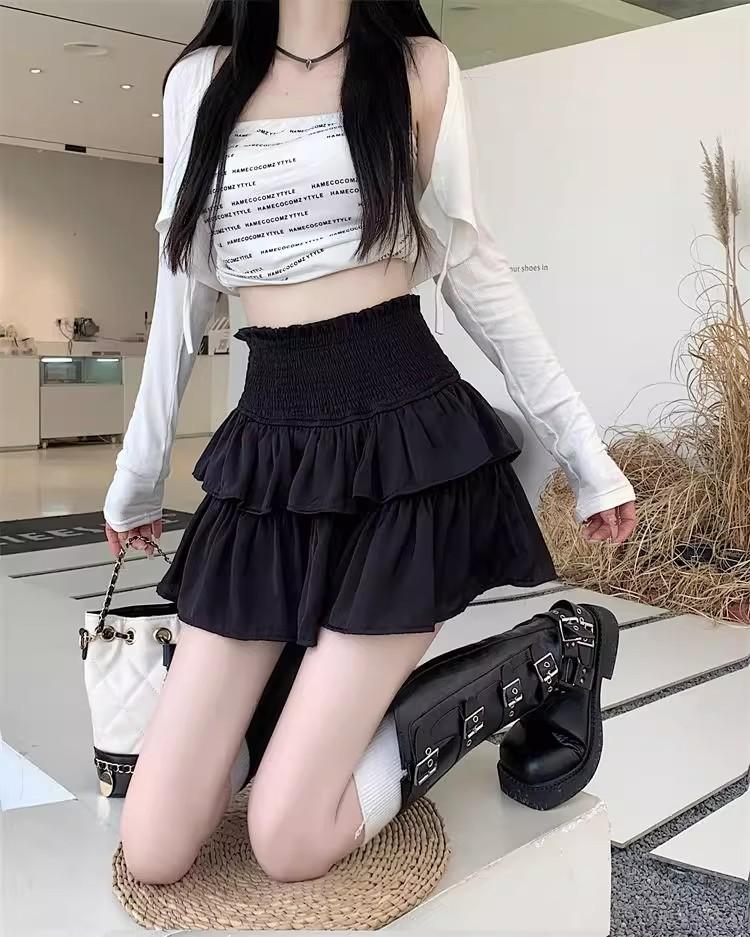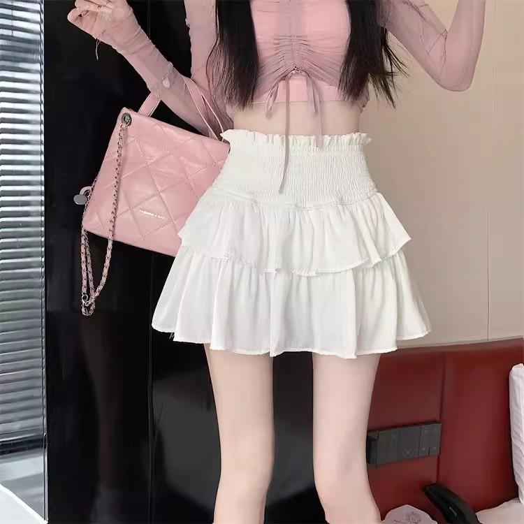 Falda Blanca de Gasa por Capas para Mujer, Verano Petite Cintura Alta Adelgazante con Volantes A-Line Esponjosa Falda Corta