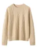 2025 Otoño/Invierno Nuevo Suéter de Cachemira de Cuello Redondo Grueso para Mujer, Suéter Holgado de Punto Trenzado, Suéter Tejido Perezoso