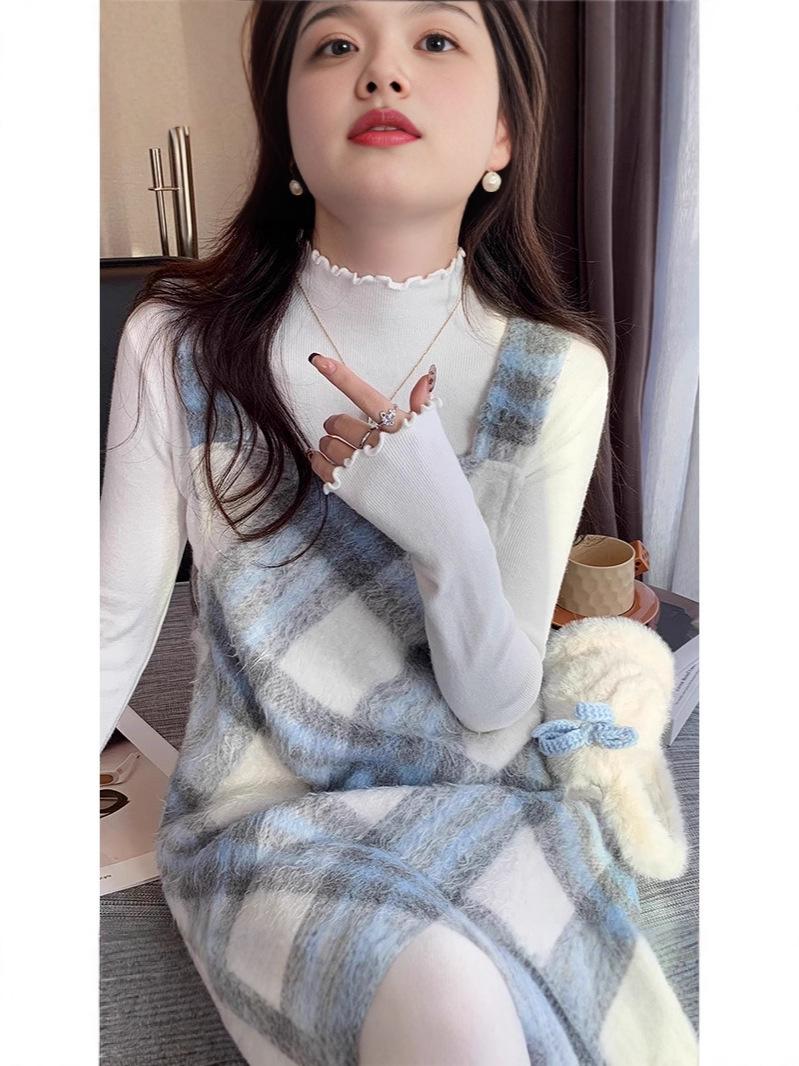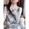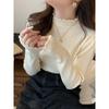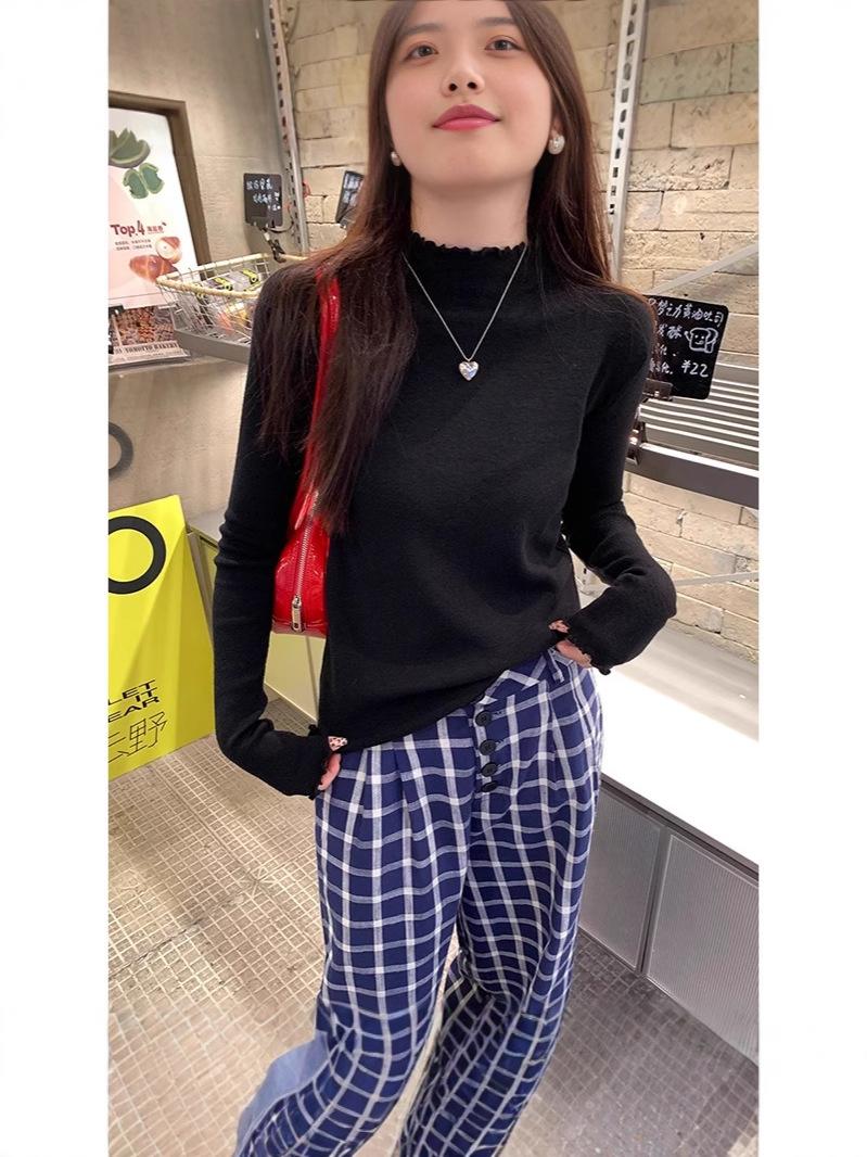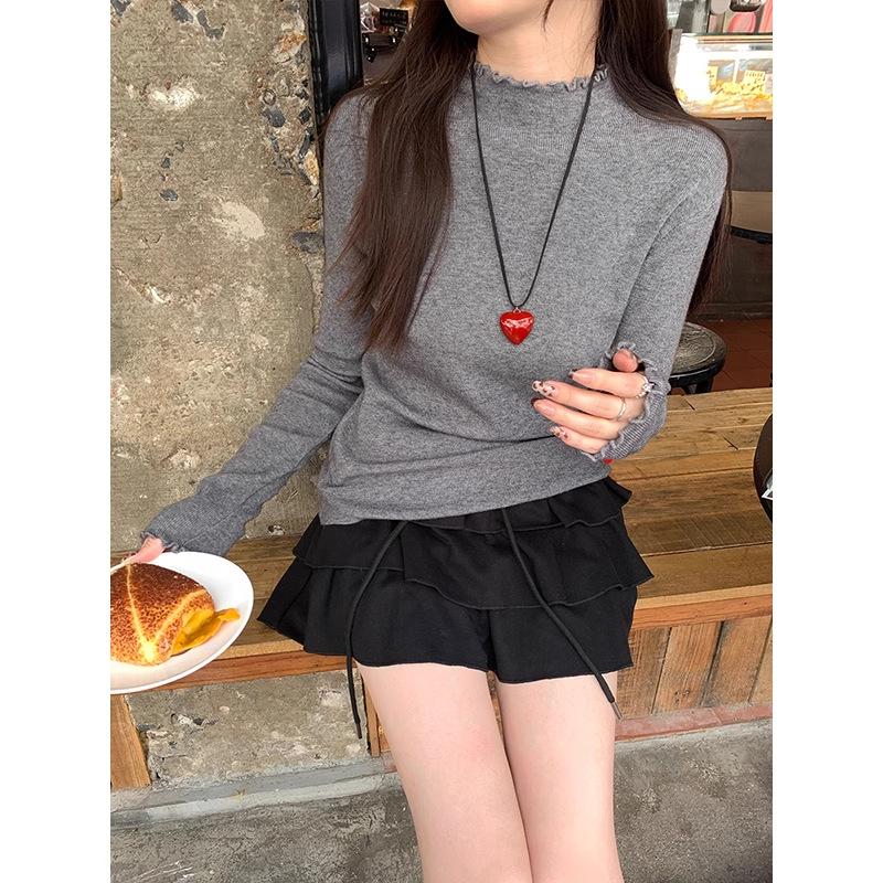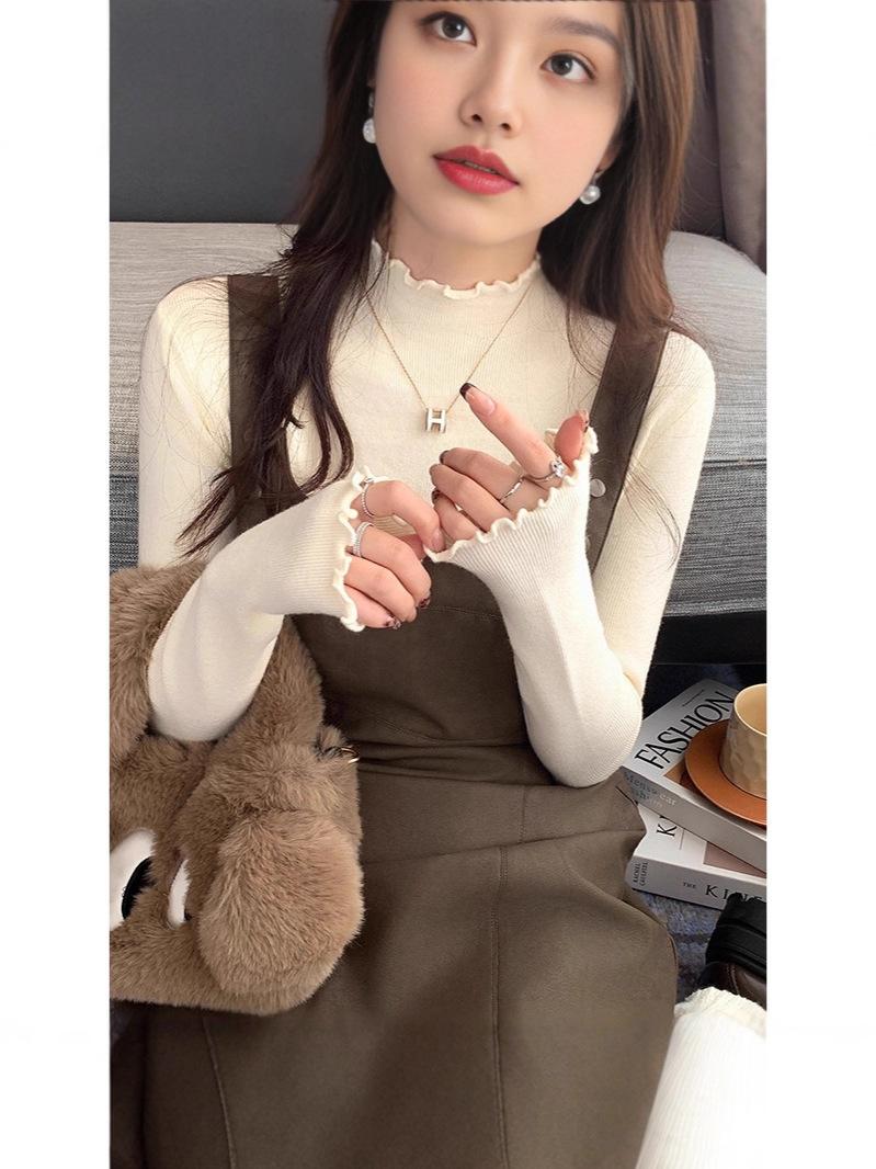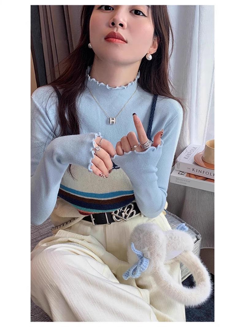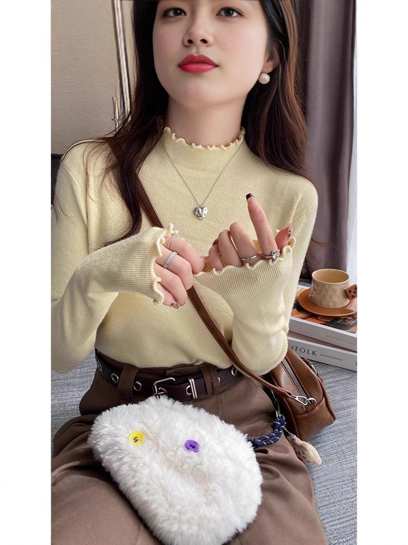 Top de Capa Base de Punto de Cuello Medio Alto para Mujer Otoño Invierno 2024 Nuevo Suéter Amarillo Leche Ropa Interior de Alta Gama Top con Adorno de Volante