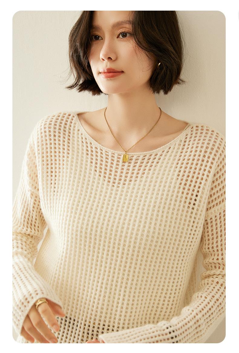 25 Otoño/Invierno Nuevo Color Sólido Cachemira Tejido Capa Base para Mujer Cómodo Versátil Jersey Calado Cubre Hombros Top de Malla