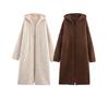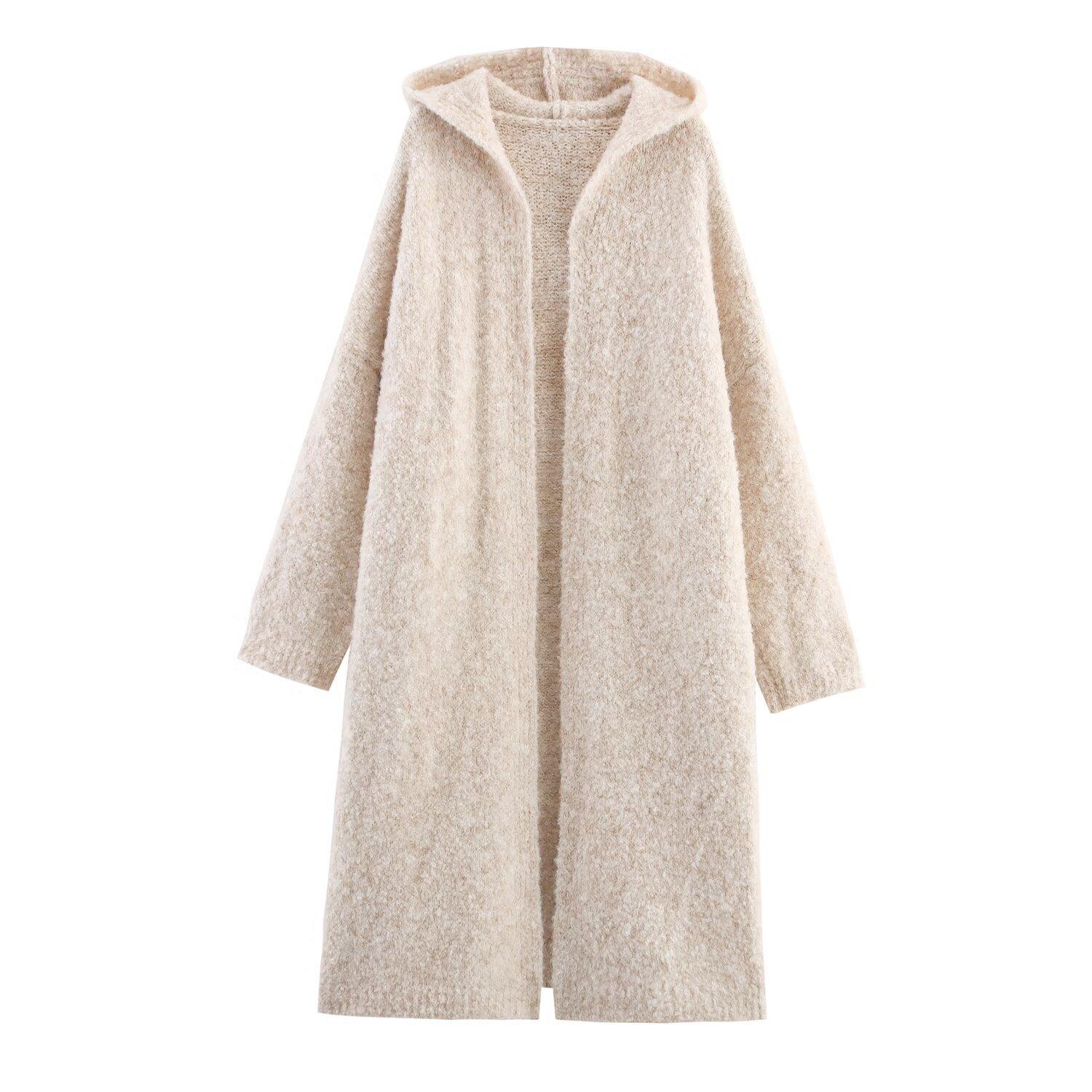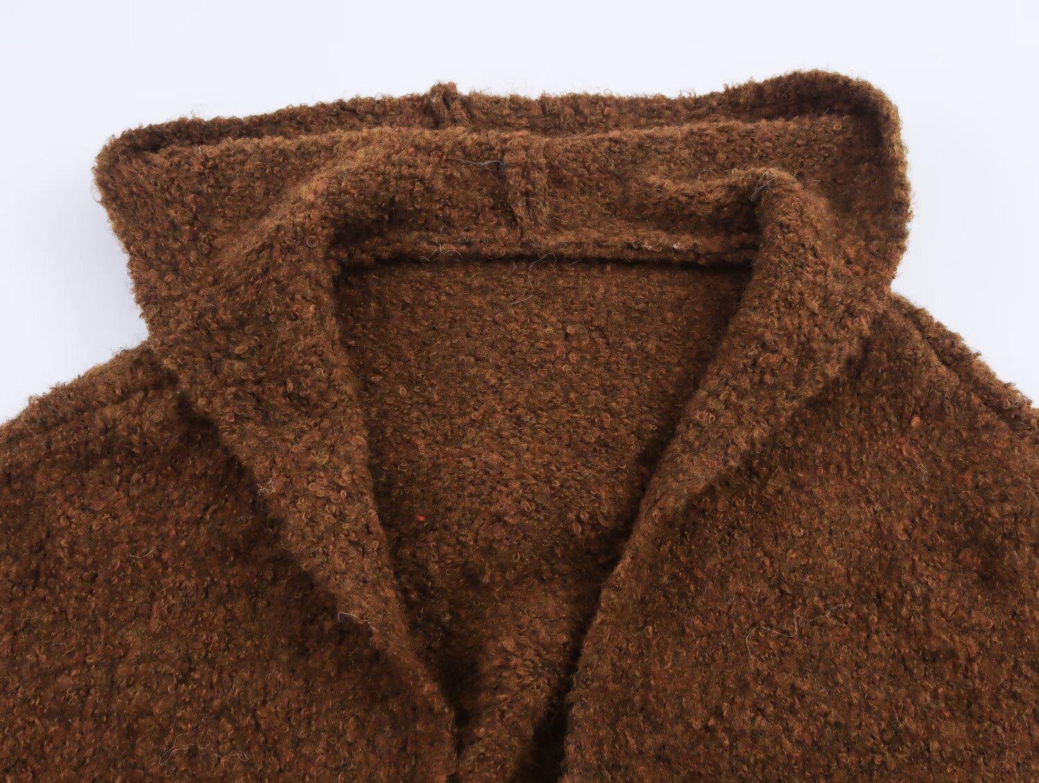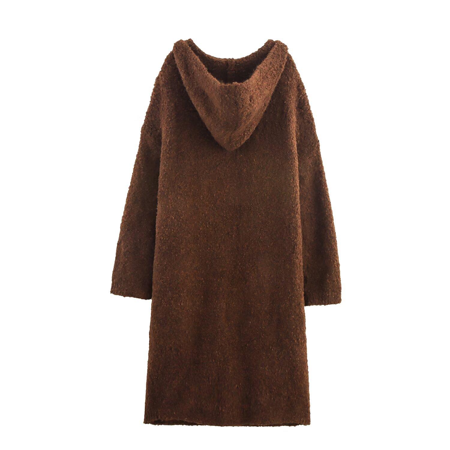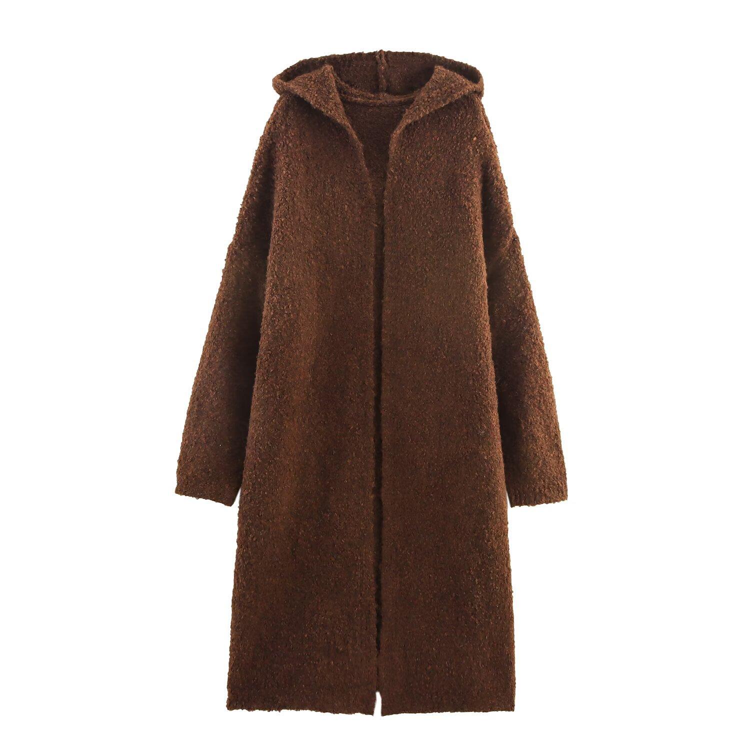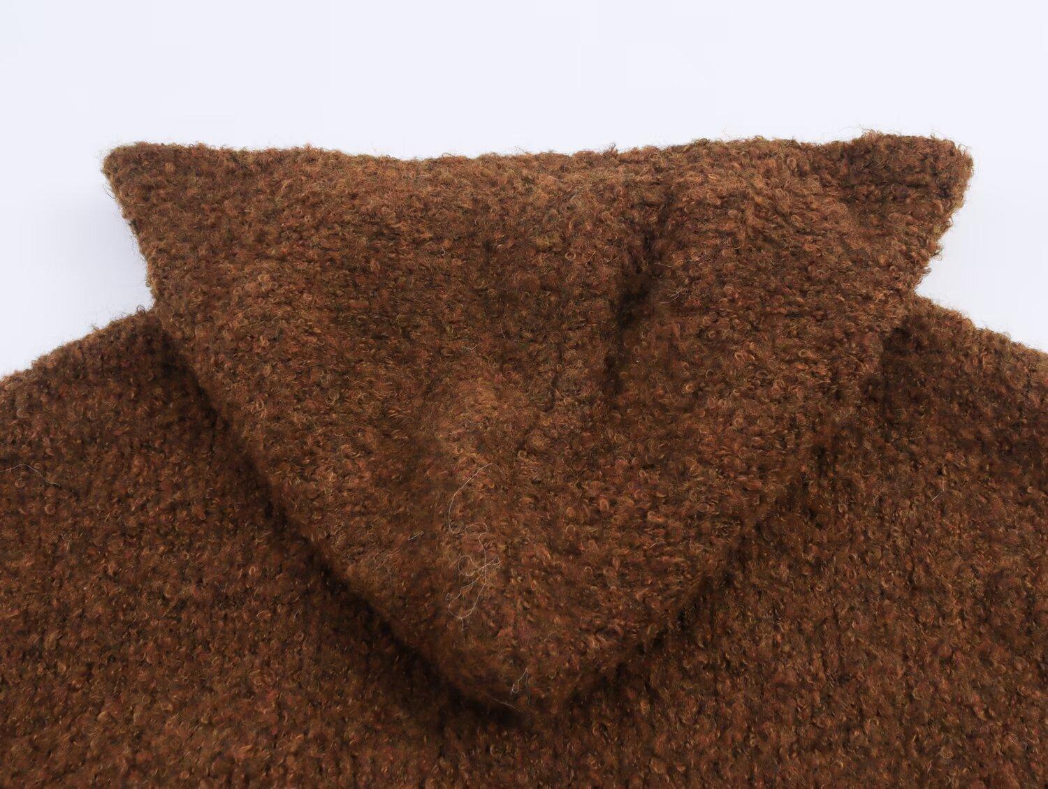 Otoño 2025 Ropa Nueva para Mujer Estilo Europeo y Americano Tejido de Lana con Capucha Manga Larga Suelto Abrigo Cárdigan Largo