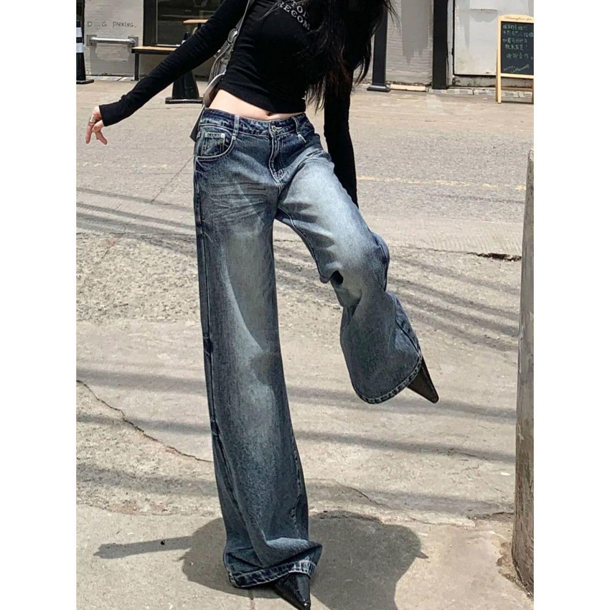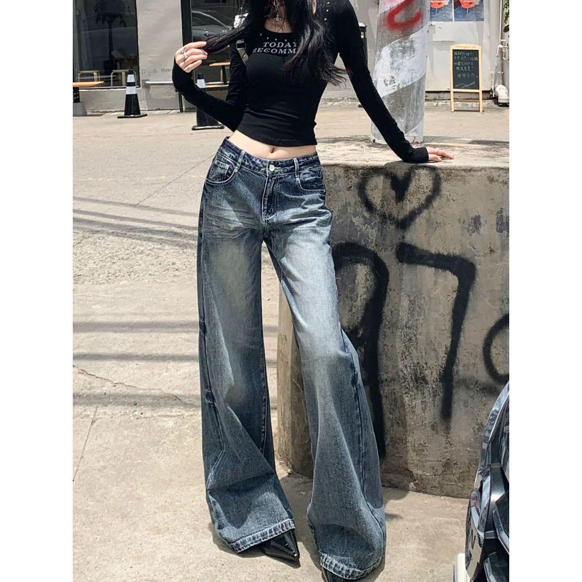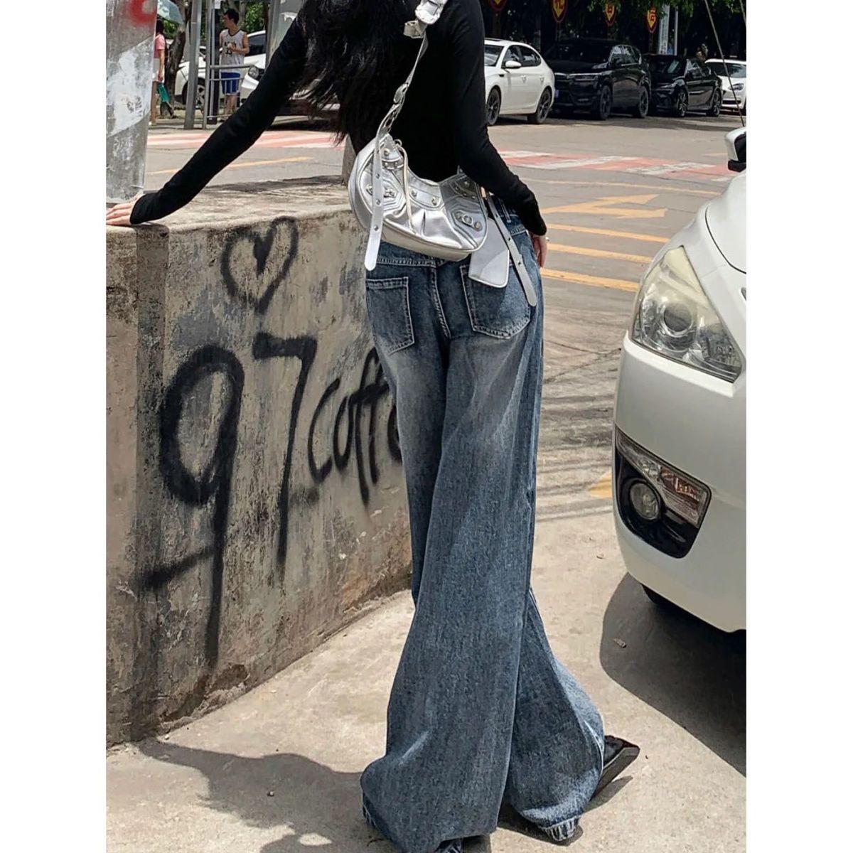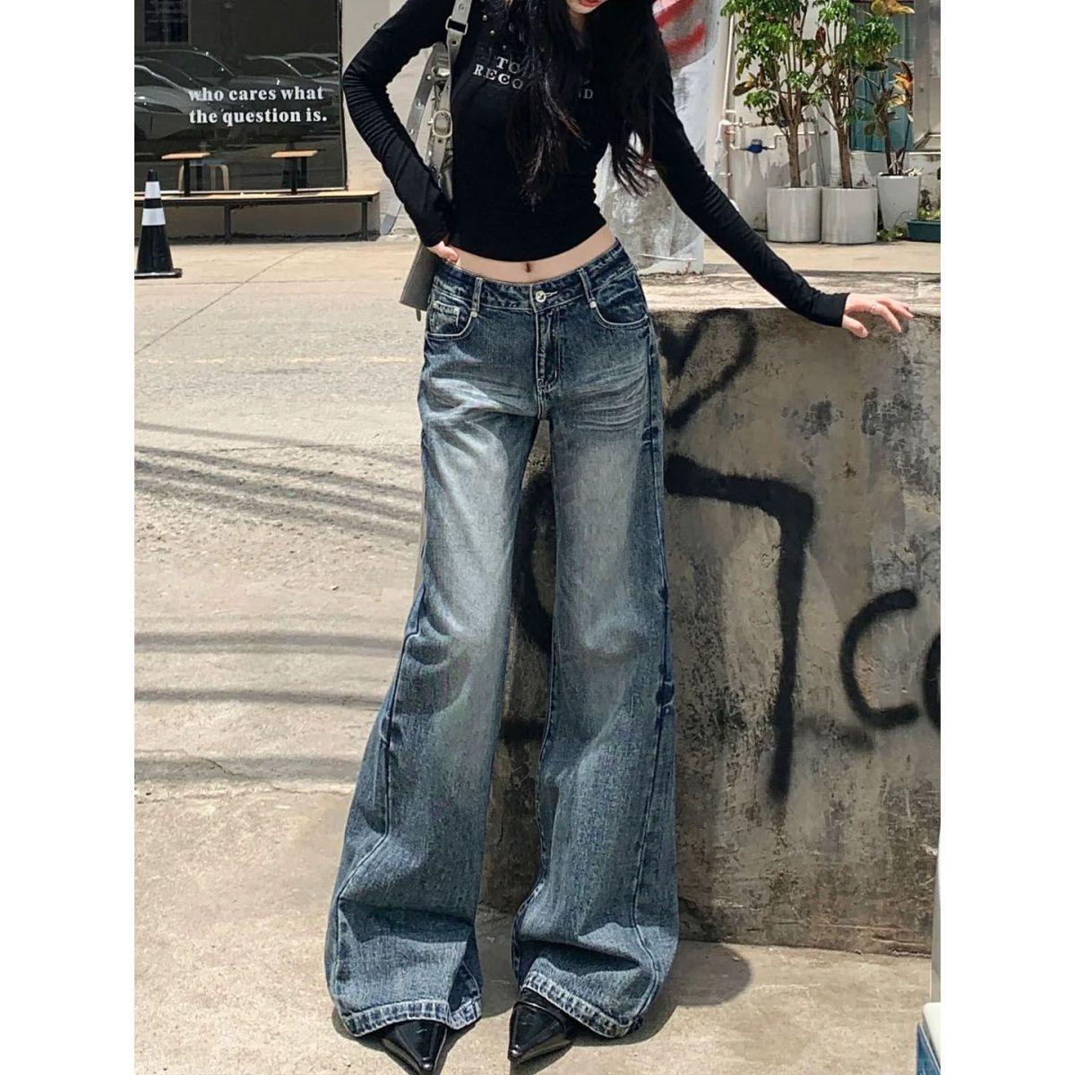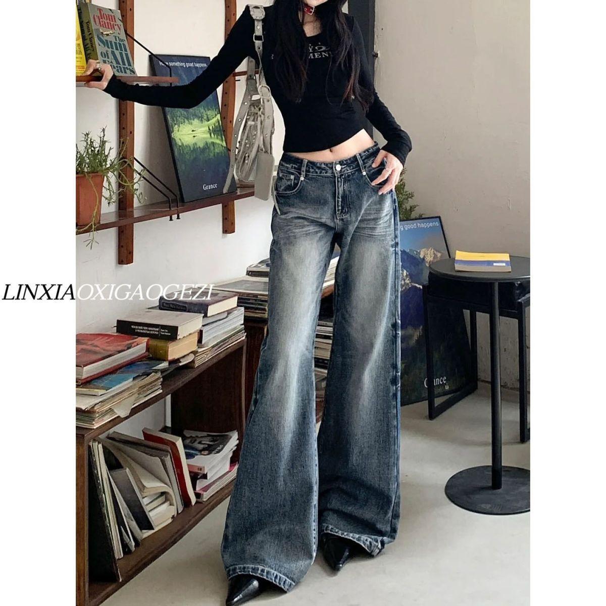 Jeans Versátiles de Cintura Alta para Mujer 2025 Petite Vintage Pierna Ancha Sueltos Pantalones Largos hasta el Piso