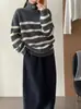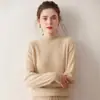 Suéter de Cachemira para Mujer Otoño/Invierno Cuello Medio Alto Manga Larga Top Holgado de Punto Color Sólido Versátil Adelgazante Suéter Básico de Lana