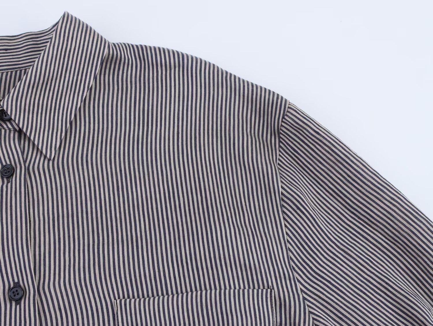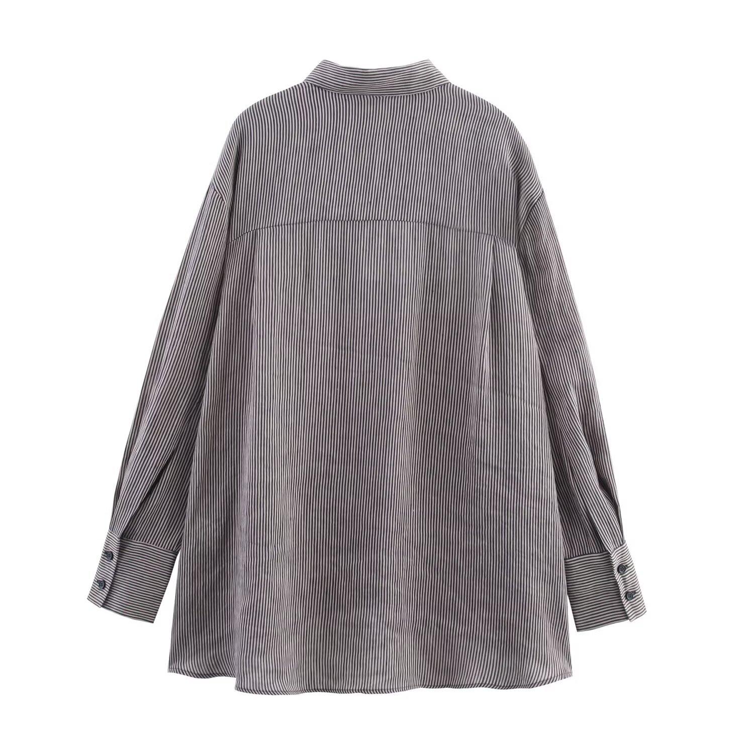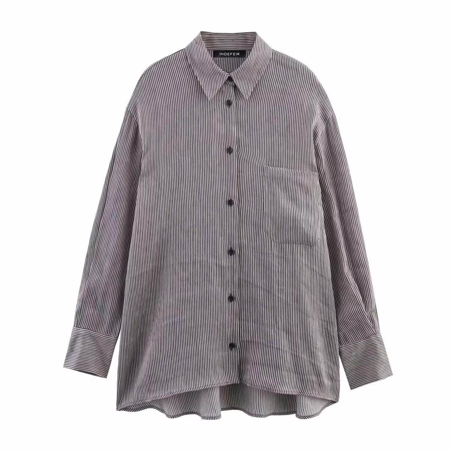 Estilo europeo y americano Amazon AliExpress más vendido moda moderna versátil mezcla camisa a rayas gris manga larga cuello vuelto