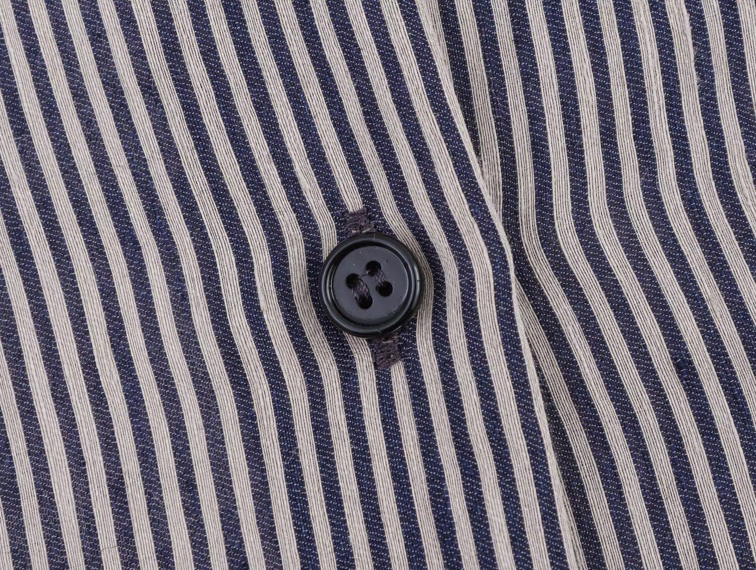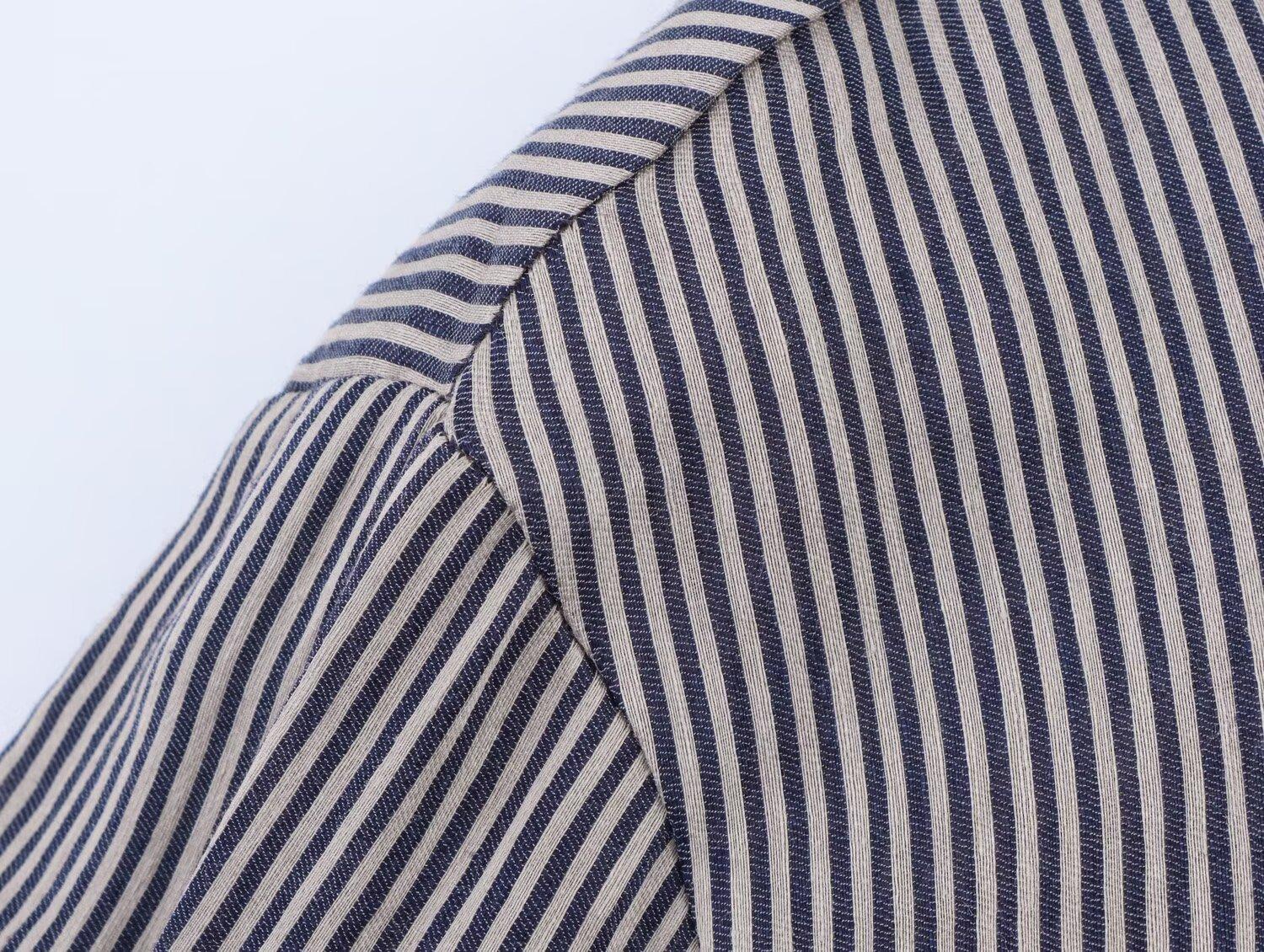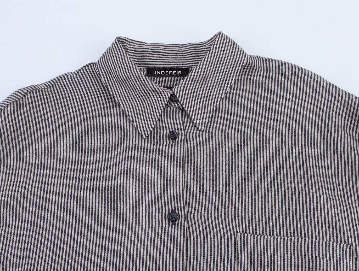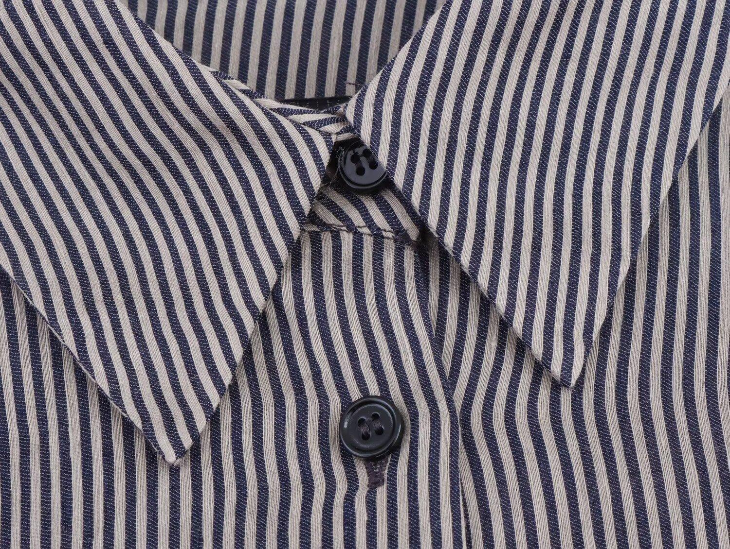 Estilo europeo y americano Amazon AliExpress más vendido moda moderna versátil mezcla camisa a rayas gris manga larga cuello vuelto