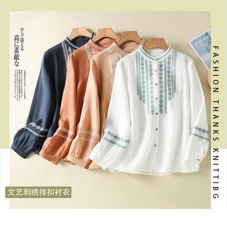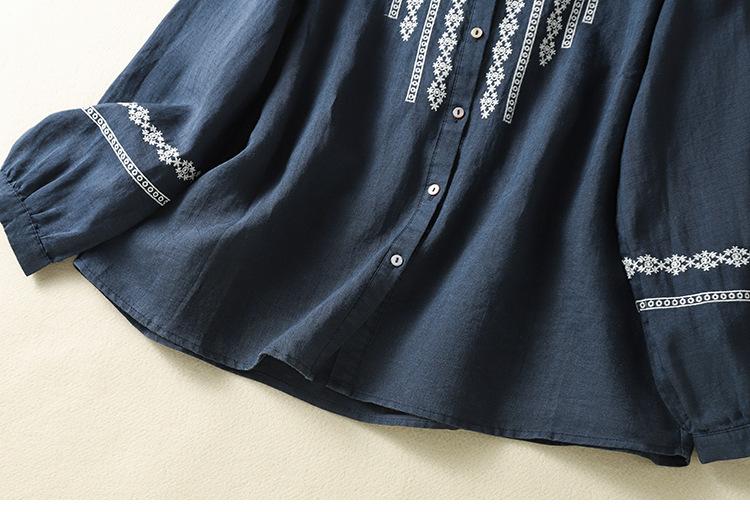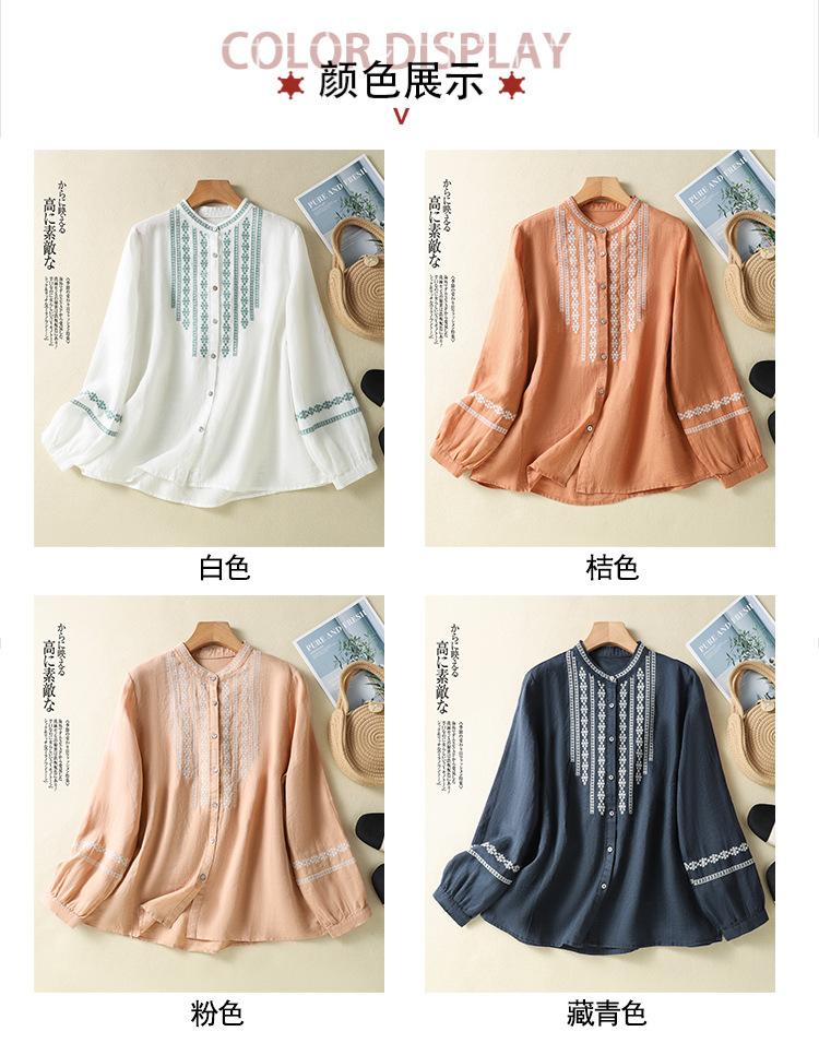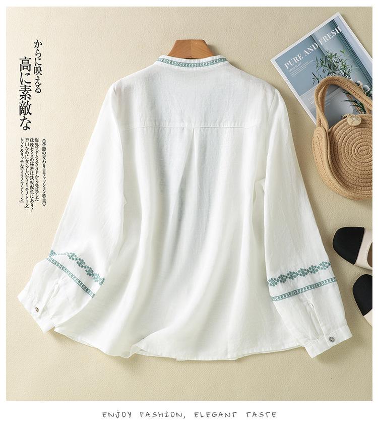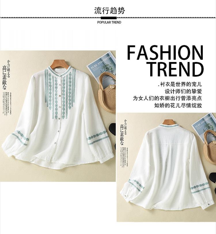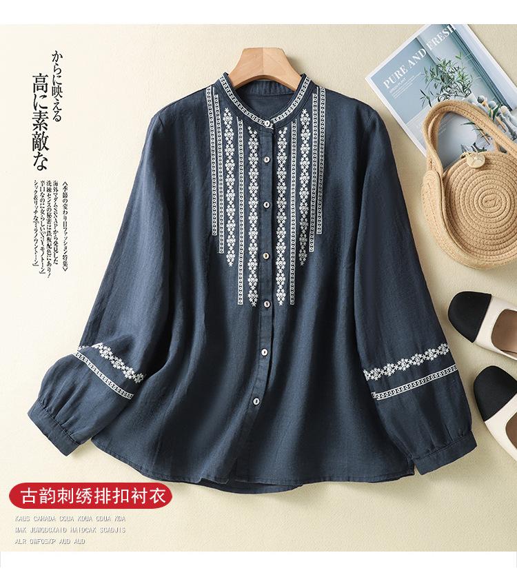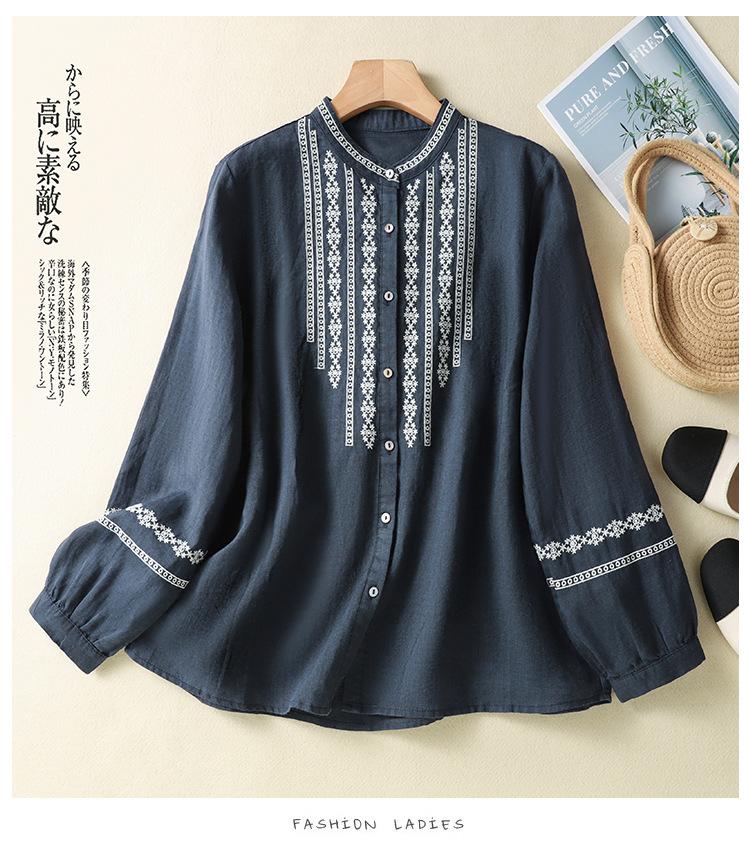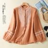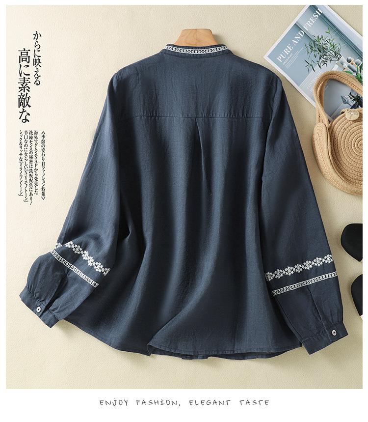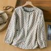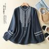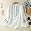 Foto Real Primavera y Otoño 2025 Nueva Bordado Simple Camisa de Manga Larga Mujer Literaria Retro Top Mujer Versátil