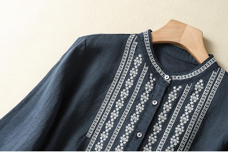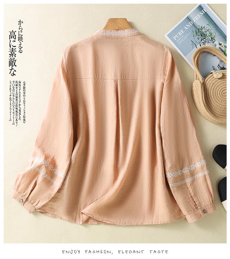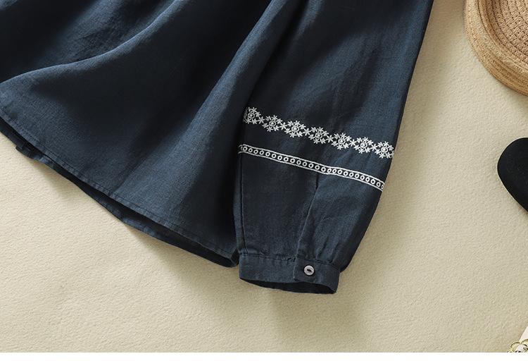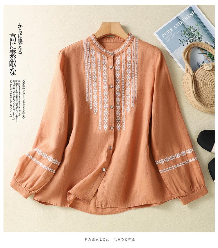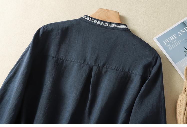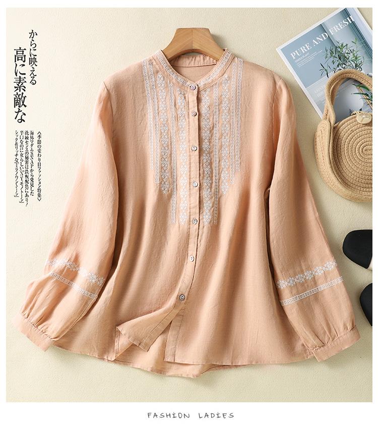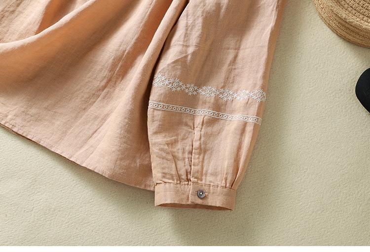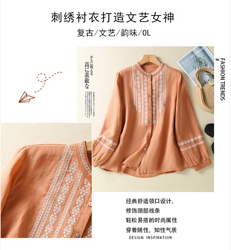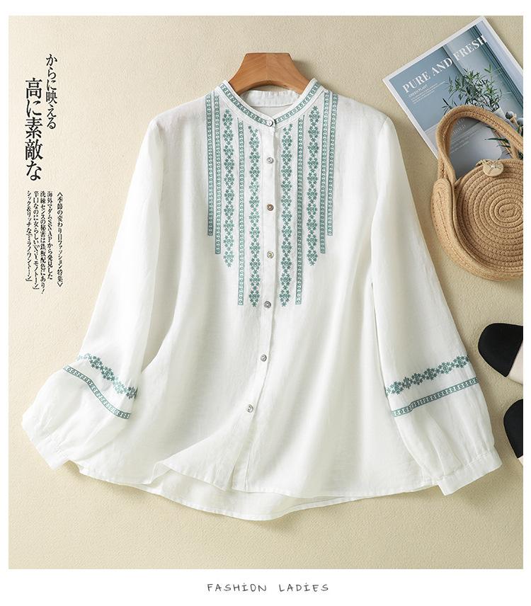 Foto Real Primavera y Otoño 2025 Nueva Bordado Simple Camisa de Manga Larga Mujer Literaria Retro Top Mujer Versátil